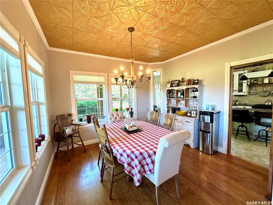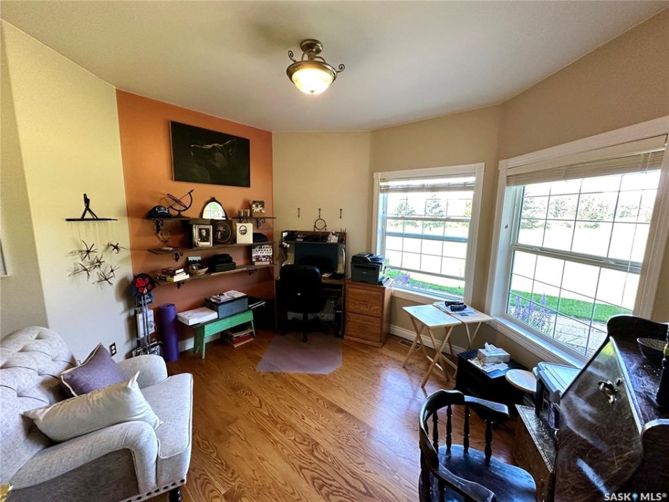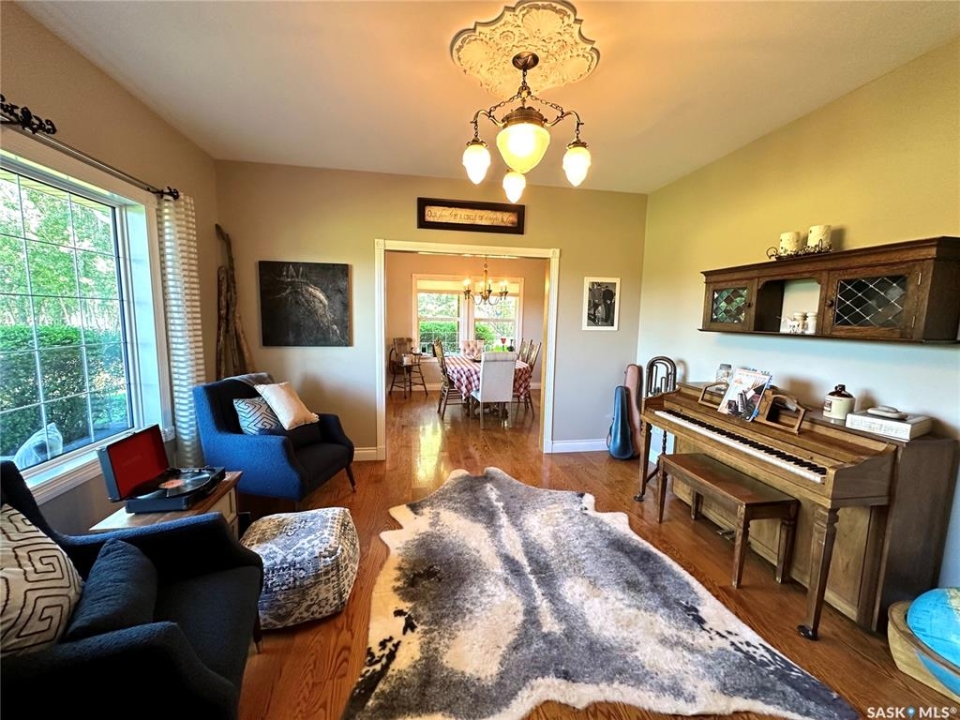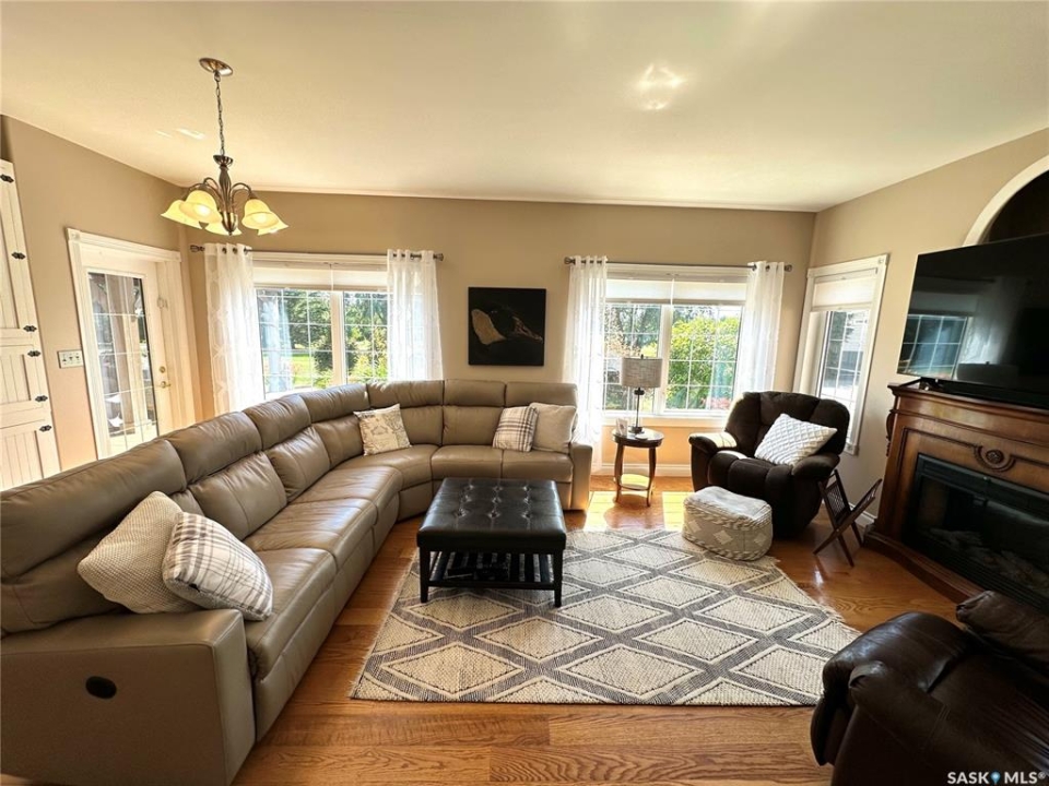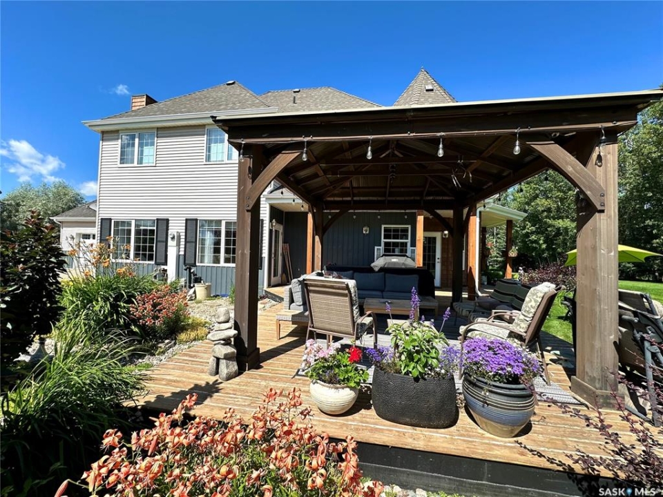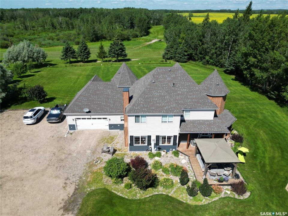 Exclusive home located on 4 acres of prime property overlooking the 10th hole of the Spiritwood golf course. Home features 5 BD, the master BD 5pc en-suite with a soaker tub, double sinks, separate shower/toilet, and walk-in closet. Each level offers a sitting/lounging area ideal for reading, socializing and entertainment. The upper-level lounge and master bedroom offer an exquisite view of the front courtyard, sunset, and 10th tee-off. A custom-built oak staircase canopied by an elegant chandelier an impressive feature of the main entrance, and an antique reclaimed tin ceiling in the dining room proves to be a show stopper. A large country style kitchen and living room share an open living space on the main floor. This dream kitchen hosts an east facing windowed turret, great for morning coffee, natural gas stove, convection oven, walk-in pantry, island with storage, garden doors leading to a south facing deck, and gazebo. The living room floods with the natural light of large south facing windows as well as garden door leads to the south deck. Additional home features include an ultraviolet water purification system, central A/C, in-floor heat in the basement, hot water on demand with separate lines to each tap providing constant pressure, and hot water. Some more recent upgrades include new shingles, siding, soffits, and facia, as well as a Viesmann Combi boiler system. Attached 24X23 garage with in floor heat, 24X30 detached heated garage, garden shed, as well as several other storage sheds. Spiritwood is in the heart of the Northern Lakes, which allows you an opportunity to have many lakes, recreational activities surrounding you, and is the epitome of serenity with its stunning views, ample wildlife, walking and cross-country skiing right out your front door. This property was once used as a B&B, so whether you are looking for a family home, or wanting to re-open the B&B the opportunities. Some furnishings are negotiable. Call for more information.