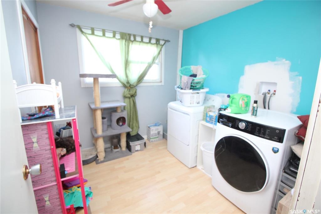 Rare opportunity in this current market to purchase a solid family home with the potential to add some equity. 4 Bedroom/2 Bathroom property, located on a corner lot close to both Elementary School & High School as well as the golf course. Main floor offers kitchen/diner, living room, 3 bedrooms (3rd bedroom currently used as laundry room) and 4-piece bathroom. Basement has large rec room, 4th bedroom (window may not meet egress), 2-piece bathroom and large storage area. Outside, there is a single detached garage, large fully fenced yard, car port with alley access and 2 storage sheds. So much potential with this property for the right buyer.