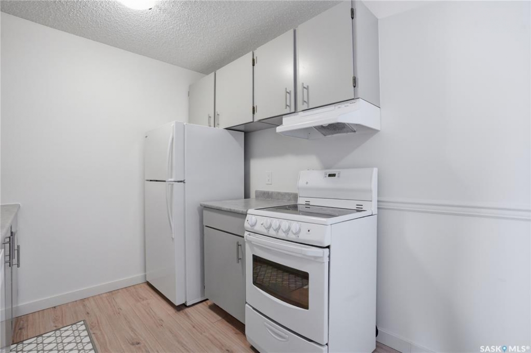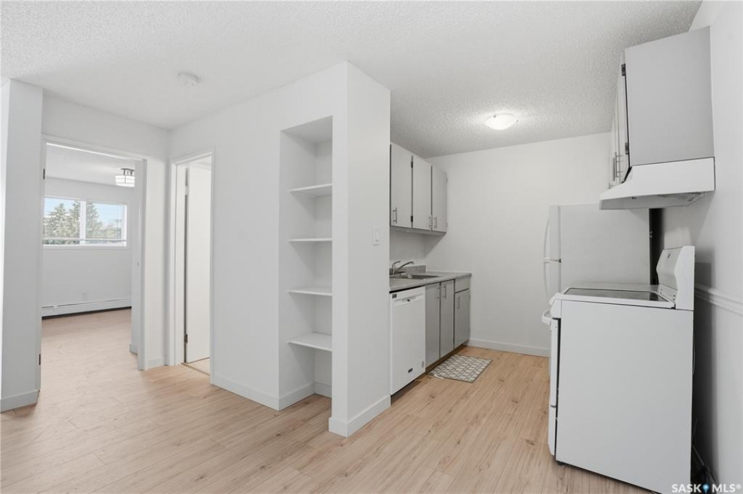 Welcome to an excellent opportunity for first-time buyers, students, or investors seeking a move-in ready property in a convenient Saskatoon location. This 1-bedroom, 1-bathroom apartment has been thoughtfully updated and is completely turnkey. Inside, you'll find brand new flooring, fresh paint, updated light fixtures, new countertops, hood fan, and refinished kitchen cabinets—creating a clean, modern space that's ready to enjoy from day one. The functional layout offers comfortable living with everything you need, whether you're looking for a place to call home or a low-maintenance rental property. Located just minutes from parks, bus stops, and with easy transit access to the University of Saskatchewan, this is a prime spot for students and professionals alike. You'll also appreciate the close proximity to grocery stores, medical services, and other everyday amenities. Affordable, updated, and ideally located—this is a smart investment and a fantastic place to call home.