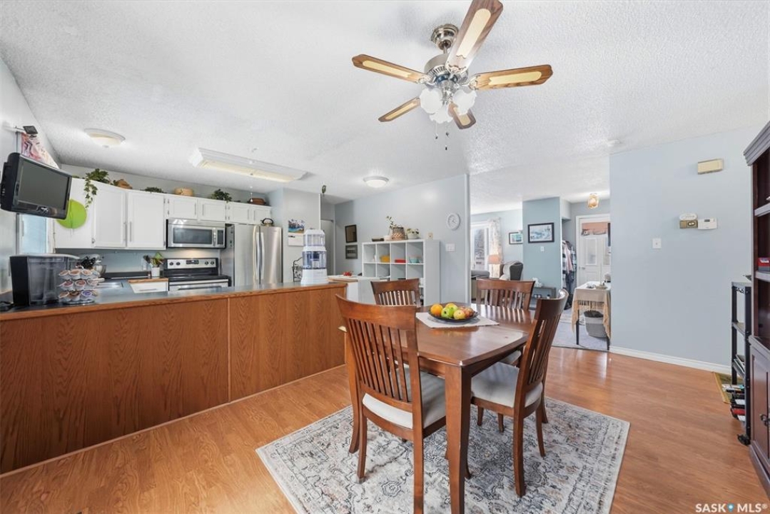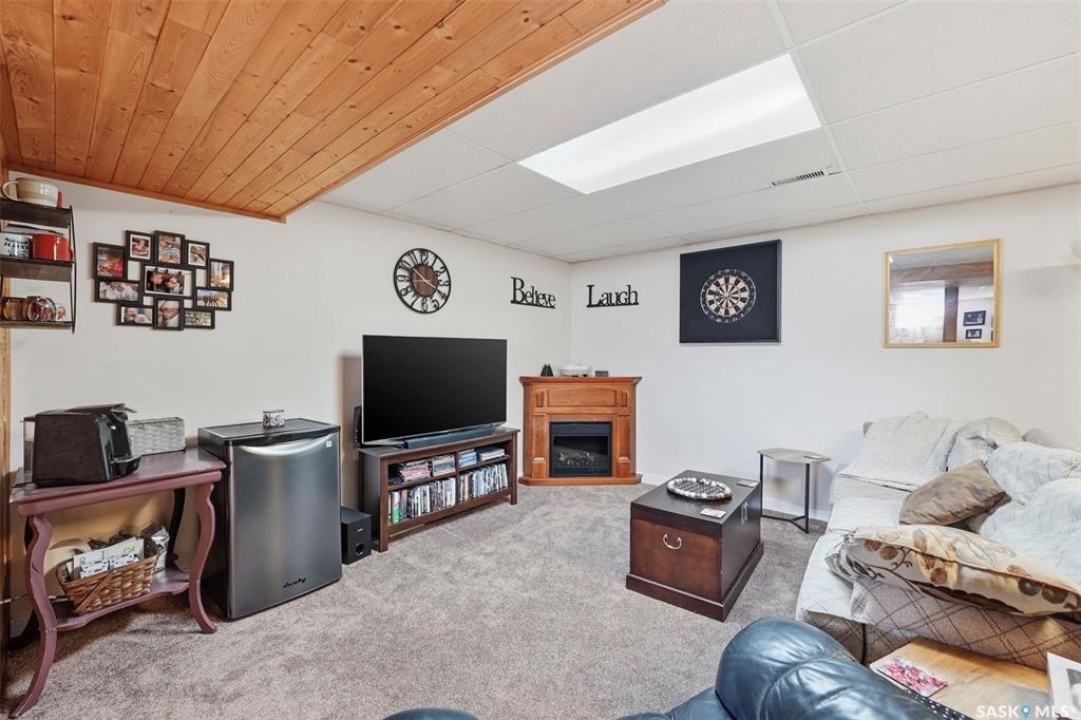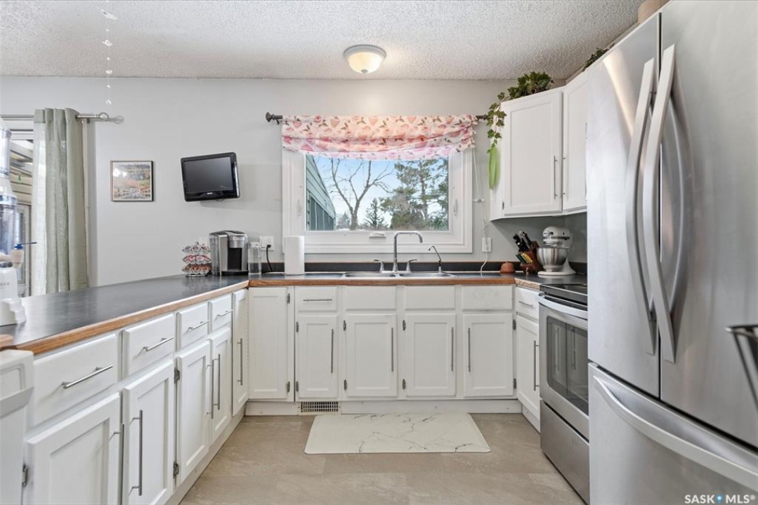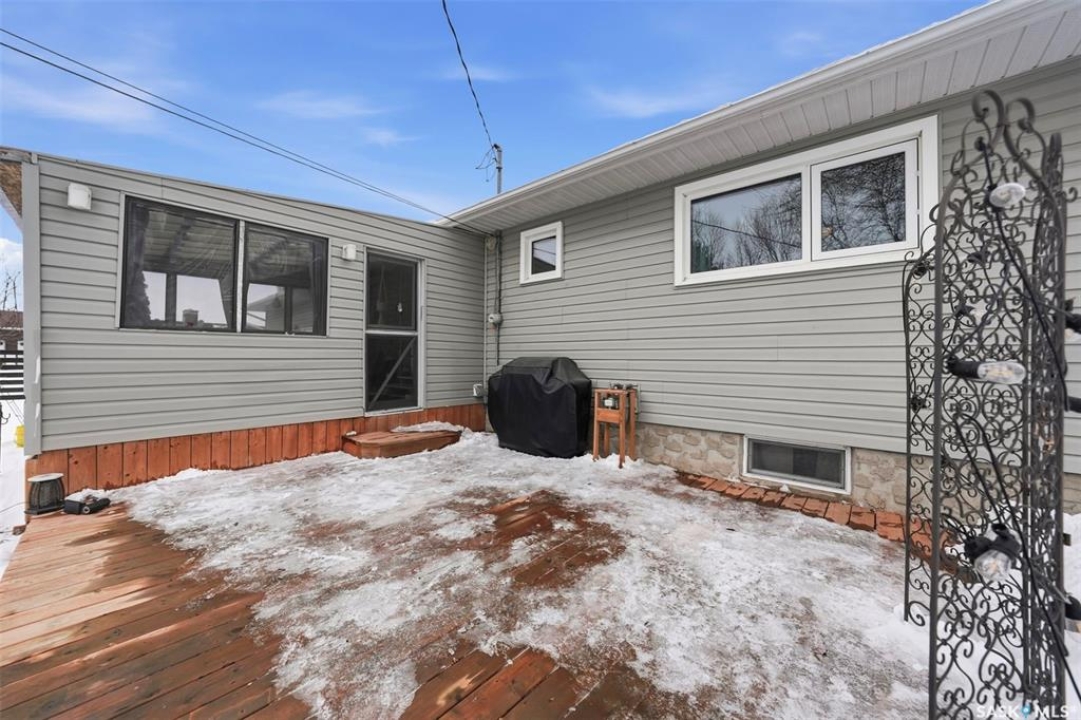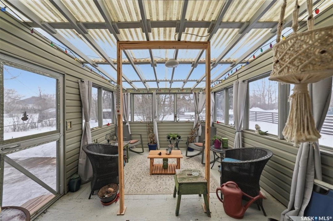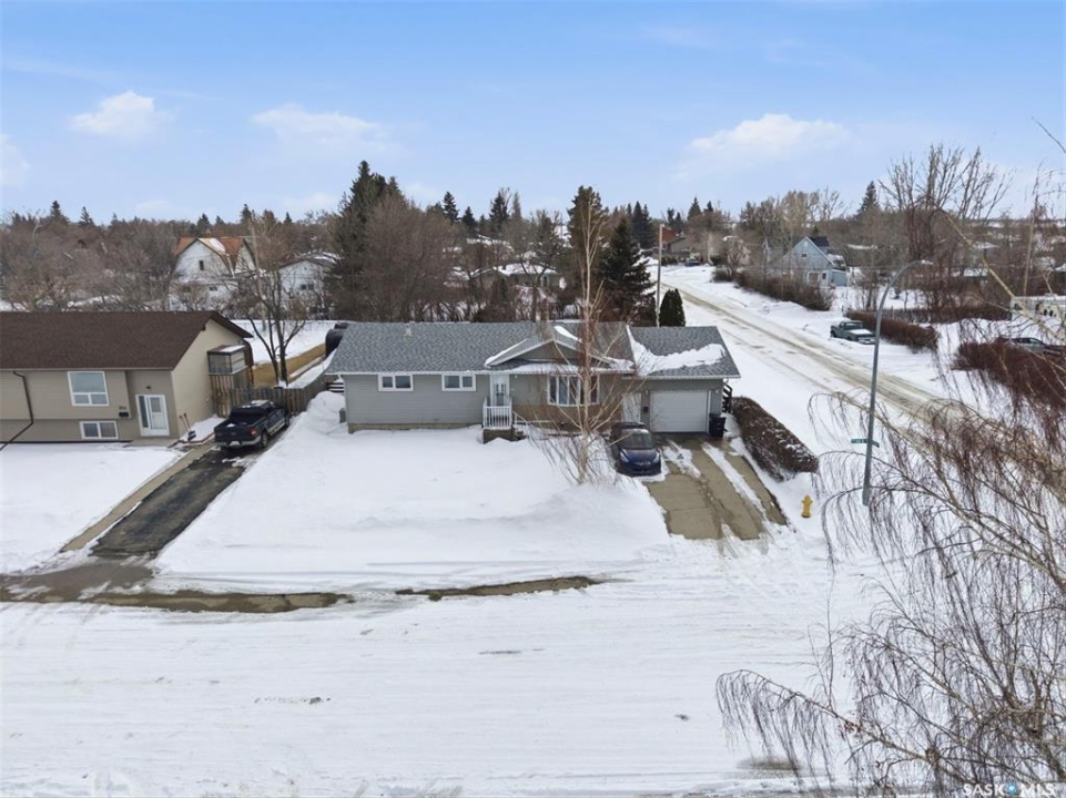 Pride of ownership! This 1232 sq ft bungalow sits on a 75 x140 ft corner lot in the busy town of Watrous, just 5 minutes from the Resort Village of Manitou Beach and within 30 minutes of 3 potash mines. Main floor is bright and open. Kitchen/dining area has tons of workspace and updated stainless appliances. Huge living room with bay window allows tons of natural light. 3 bedrooms with a 4 piece main bath and a 2pc bath off the primary bedroom. Off the dining room, enjoy a 12'-0" by 14'-0" screened sunroom over looking the well maintained yard and garden, which accesses the newer deck, perfect for the bbq. The basement boasts a family room, 4th bedroom with access to 3 pc bath with updated shower, a den, utility/storage room and a laundry room. The over sized single attached garage provides mud room access to the home. Fenced yard has mature landscaping, with RV/extra parking at the alley with power to plug in the RV. There's plenty of room for another garage or workshop. Updates in the home include upstairs windows (2008), HE furnace (2008), water heater (2017), vinyl siding (2012), Air Conditioner (2025),brand new shingles July 2023. Watrous has all services and is just over 1 hr from Saskatoon. Call your REALTOR � to view this immaculate home today!