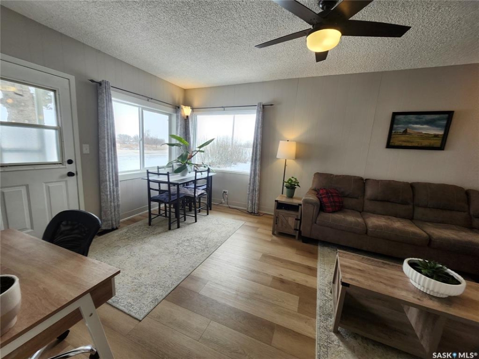 Turn-key and ready for new owners, this beautifully renovated 1 � story home offers functional living space with stylish modern updates throughout. Situated on the edge of the village of Tramping Lake this property offers wide open prairies, great area for fishing, hunting, and recreational life. The entire main floor has been freshly painted and features durable vinyl plank flooring, along with updated fixtures, new outlets, baseboards, and trim—creating a clean and cohesive feel. The bright kitchen showcases brand new appliances, complemented by warm butcher block countertops and subway tile backsplash. The head-to-toe renovated bathroom adds a fresh, contemporary touch. Convenience is key with laundry and a primary bedroom located on the main level. Basement is dry and great for storage with laundry hook ups for buyers wanting to move machines down stairs. Secondary level offers two additional bedrooms. Significant upgrades and features include exterior doors, with the majority of main floor windows replaced within the last two years—adding both efficiency and peace of mind. Newly built deck at the rear or the property, shingles completed 2023. This home truly blends comfort, functionality, and modern appeal—perfect for buyers looking for a move-in ready property. Ask your agent for a full list of renovations completed.
