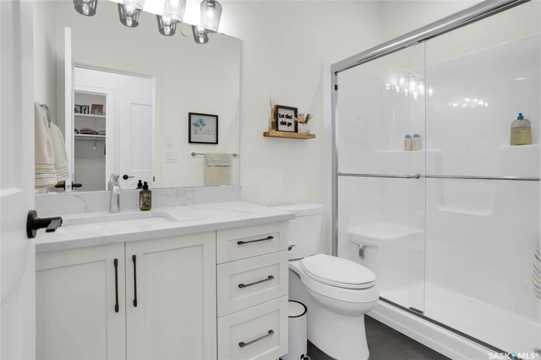 Welcome to the vibrant community of Warman, a city that offers all essential amenities and more. This immaculate end-unit townhome, bungalow style, built by a reputable Northridge builder, is ideally situated in a highly sought-after neighborhood adjacent to the golf course, offering lovely views of surrounding green space. Well maintained by its original owner, the home features thoughtful upgrades throughout, including enhanced lighting, custom living room shelving, and premium Electrolux appliances—a fridge, stove, washer, dryer, built-in microwave/hood fan—as well as a high-end Miele built-in dishwasher. The open-concept floor plan creates an inviting and functional living space. The modern kitchen is bright and stylish, complete with a walk-in pantry, island with breakfast bar, and quartz countertops. The comfortable living room offers a beautiful electric fireplace as its focal point. The primary bedroom includes a private three-piece ensuite. Step outside through the garden door to enjoy the south-facing deck, equipped with a custom motorized awning for shade and comfort when desired. The full basement features four large windows, is fully insulated, and is open for your future development. Additional highlights include custom blinds, central air conditioning and a fully insulated, drywalled double attached garage with direct entry. Located just steps from Corney Klassen Park, you'll have access to excellent walking paths and a wonderful sense of small-community serenity—all while enjoying the convenience of big-city services. With quick access to Saskatoon via a well-maintained double-lane highway, this home offers outstanding livability. Experience condo-townhome living at its finest, offering effortless comfort and low-maintenance convenience. Truly move-in ready and a pleasure to view.