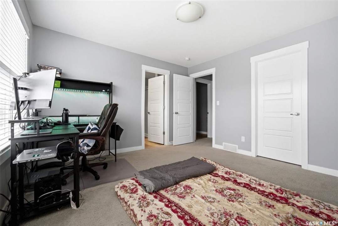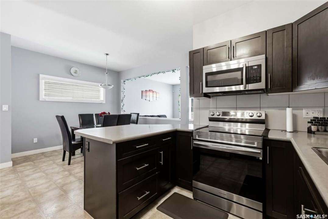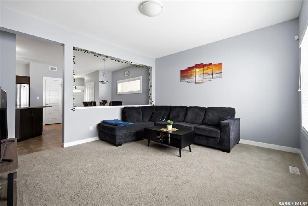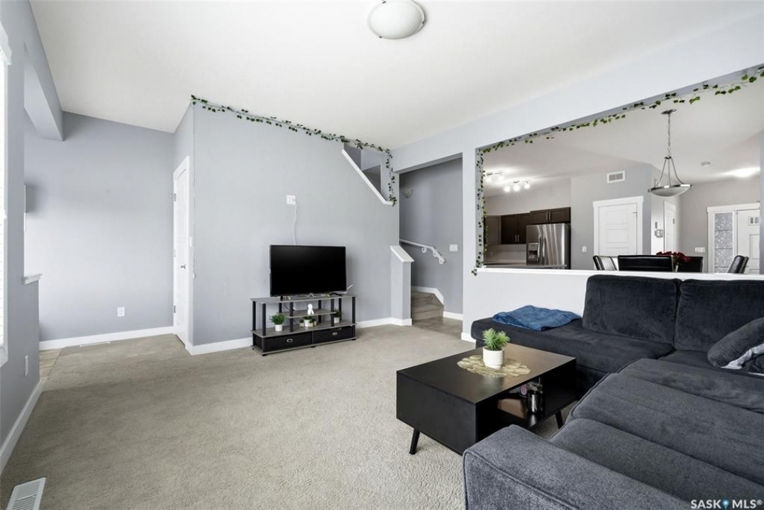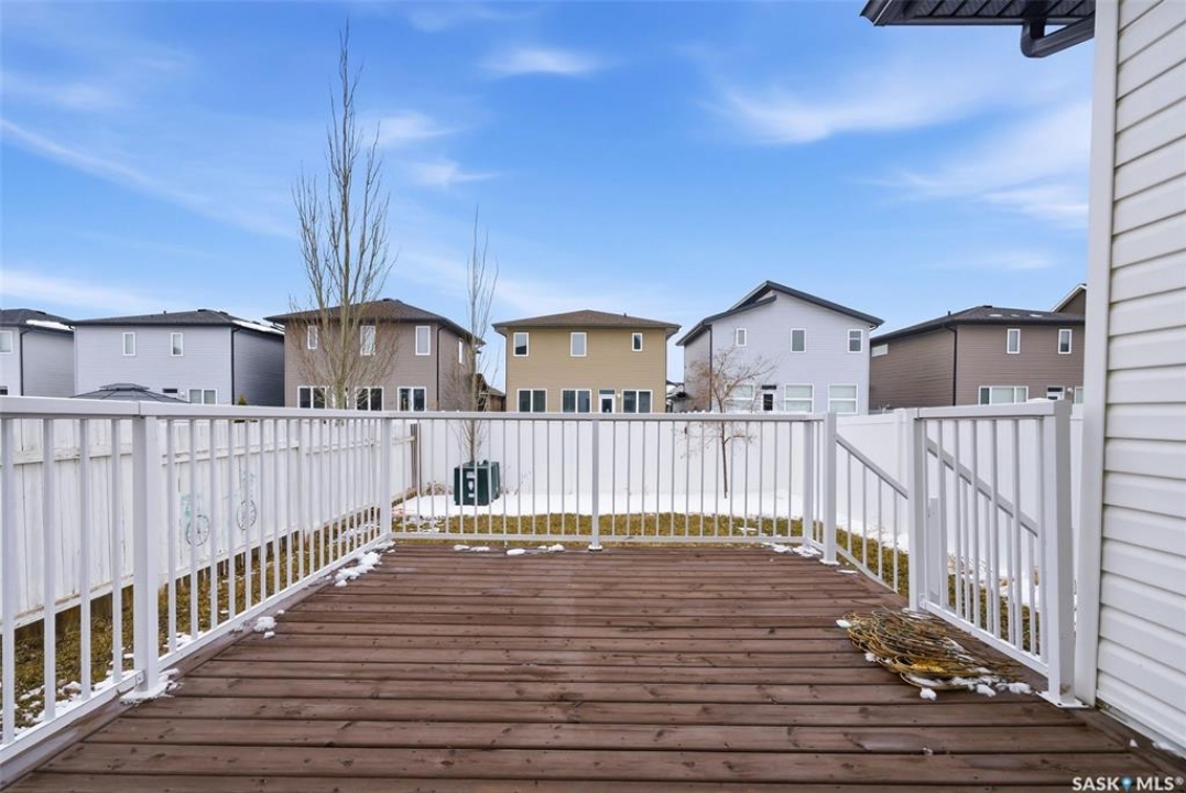Welcome to this well-maintained 2-storey semi-detached home located in the desirable Greens on Gardiner neighbourhood! Built in 2014, this property offers 1,513 sq ft of thoughtfully designed living space and is perfect for families, first-time buyers, or investors. The main floor features a bright and open-concept layout with a spacious living room, functional dining area, and a modern kitchen complete with dark cabinetry, ample counter space, and stainless steel appliances. A convenient 2-piece bathroom completes the main level. Upstairs, you'll find three comfortable bedrooms, including a generous primary bedroom with a 3-piece ensuite, an additional 4-piece bathroom, and the added convenience of second-floor laundry. The basement is currently unfinished, providing an excellent opportunity to develop additional living space to suit your needs. Outside, enjoy a fully fenced yard with a large deck—perfect for entertaining or relaxing. The property also features an attached garage and concrete driveway with off-street parking. Situated in a family-friendly area close to parks, schools, and all east-end amenities, this home offers great value in a growing community.