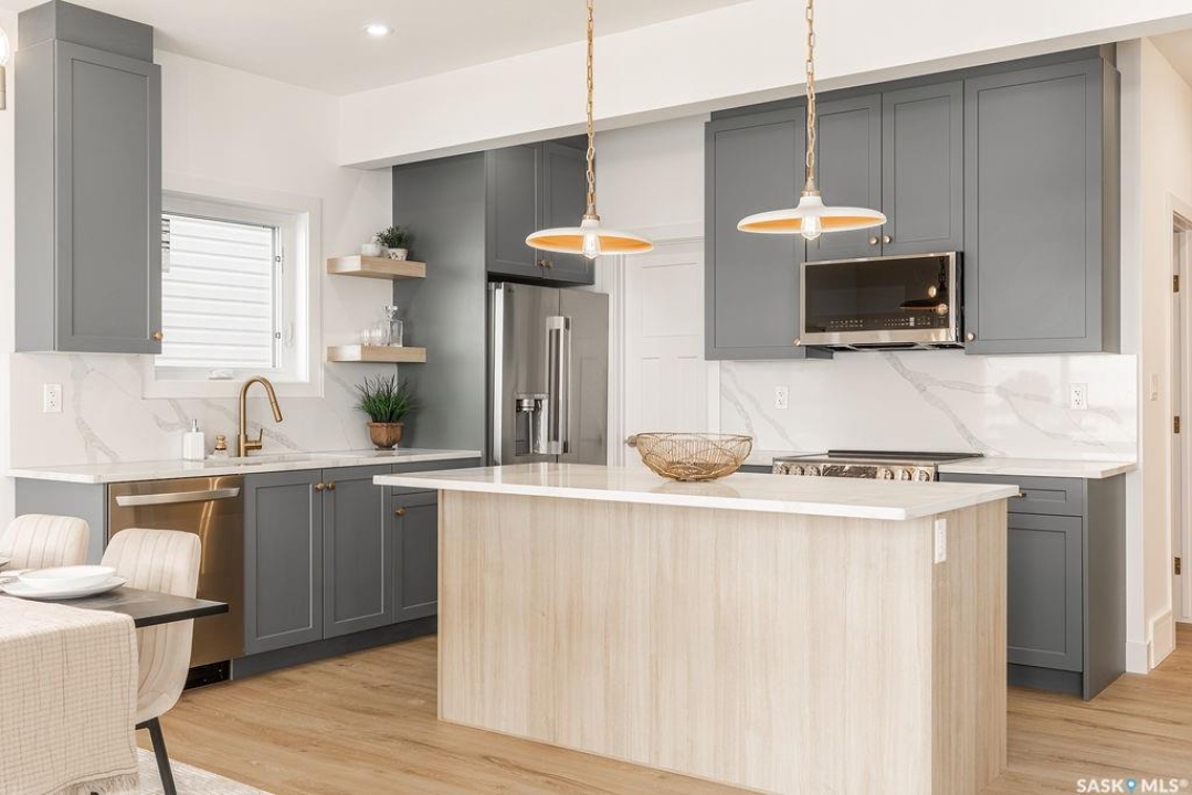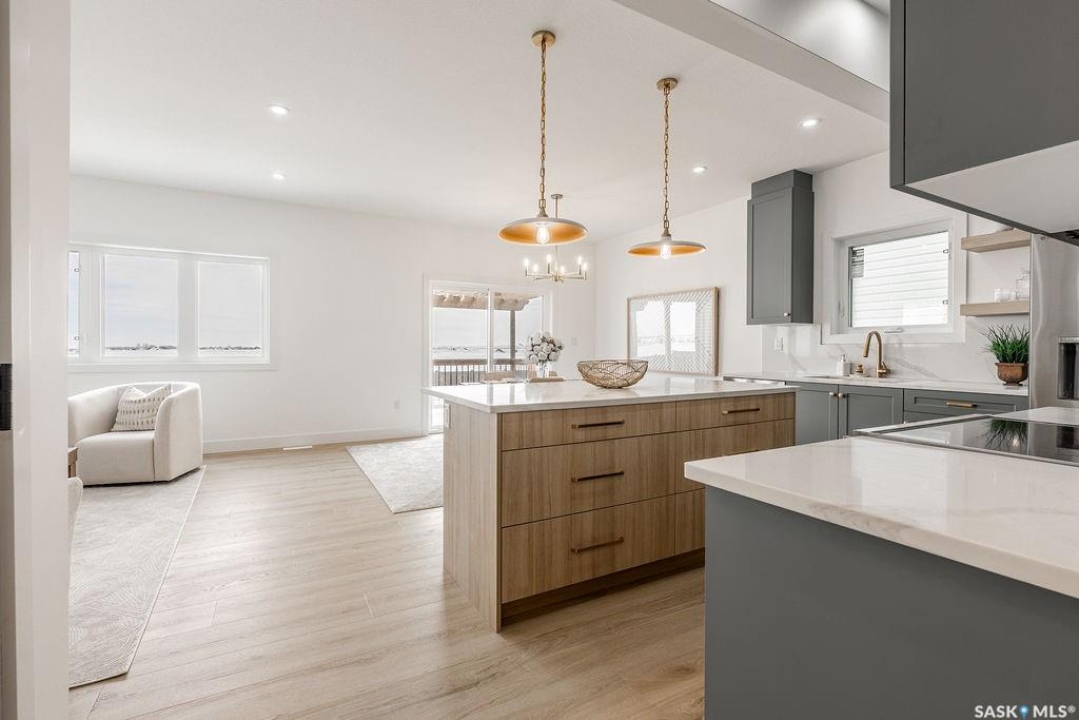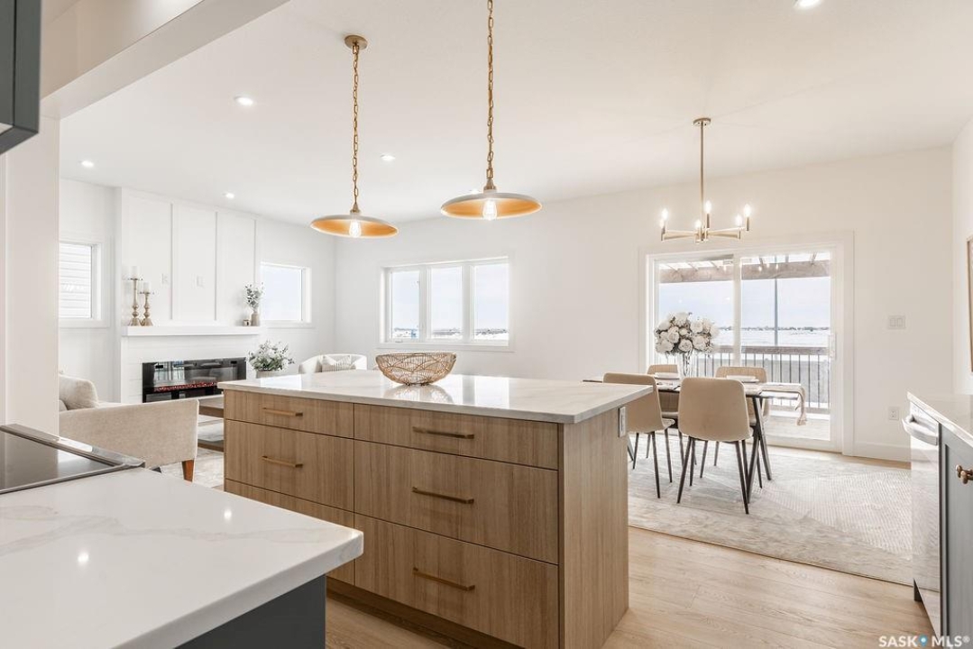Welcome to 307 Sharma Crescent — a luxury high-end build in Aspen Ridge featuring a legal two-bedroom suite and upgrades you won't typically find in new construction. Step inside and immediately notice the attention to detail throughout. The main floor offers convenient access to the attached, insulated, and heated oversized double garage, a bright front office, and a 2-piece bathroom. The stunning high-end kitchen features stainless steel appliances, quartz countertops, an eat-up island, walk-in pantry, and a stylish range hood. The kitchen flows seamlessly into the dining area with garden doors leading to a finished deck, perfect for outdoor entertaining. The spacious living room is filled with natural light from large windows and is anchored by a modern electric fireplace, all within a beautiful open-concept layout. Upstairs you'll find a huge bonus room, convenient second-floor laundry, and a total of four bedrooms. There is a 4-piece main bathroom, and the luxurious primary suite is truly a retreat, featuring a vaulted ceiling, electric fireplace, space for a sitting area, a large walk-in closet with a built-in makeup desk, and a stunning 4-piece ensuite with double sinks and a large walk-in tiled shower. The basement features a legal two-bedroom suite with a separate entrance, modern kitchen, living room, its own laundry, and a 3-piece bathroom with a large walk-in tiled shower — perfect for extended family or rental income. Additional features include central air conditioning, luxury vinyl plank flooring, upgraded millwork and lighting, and a finished driveway. This home is packed with upgrades and offers luxury, space, and income potential all in one of Saskatoon's most desirable neighbourhoods.