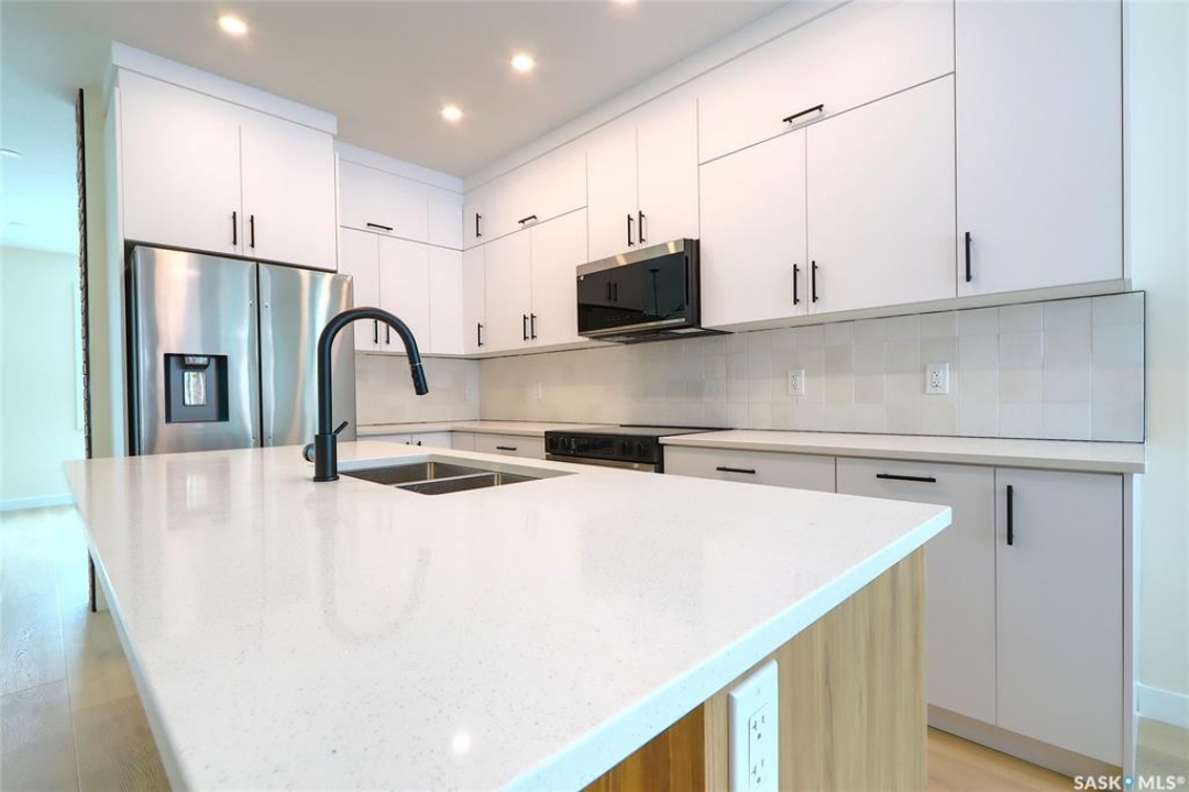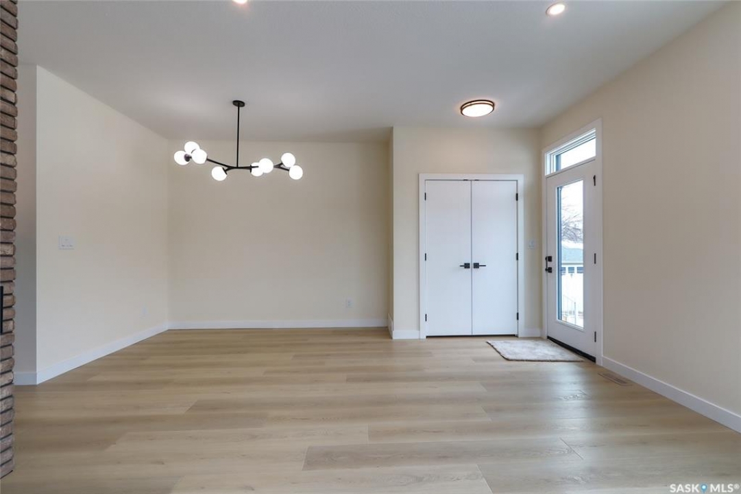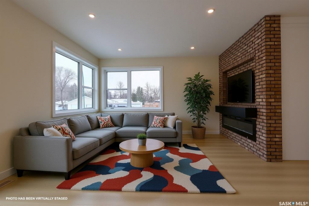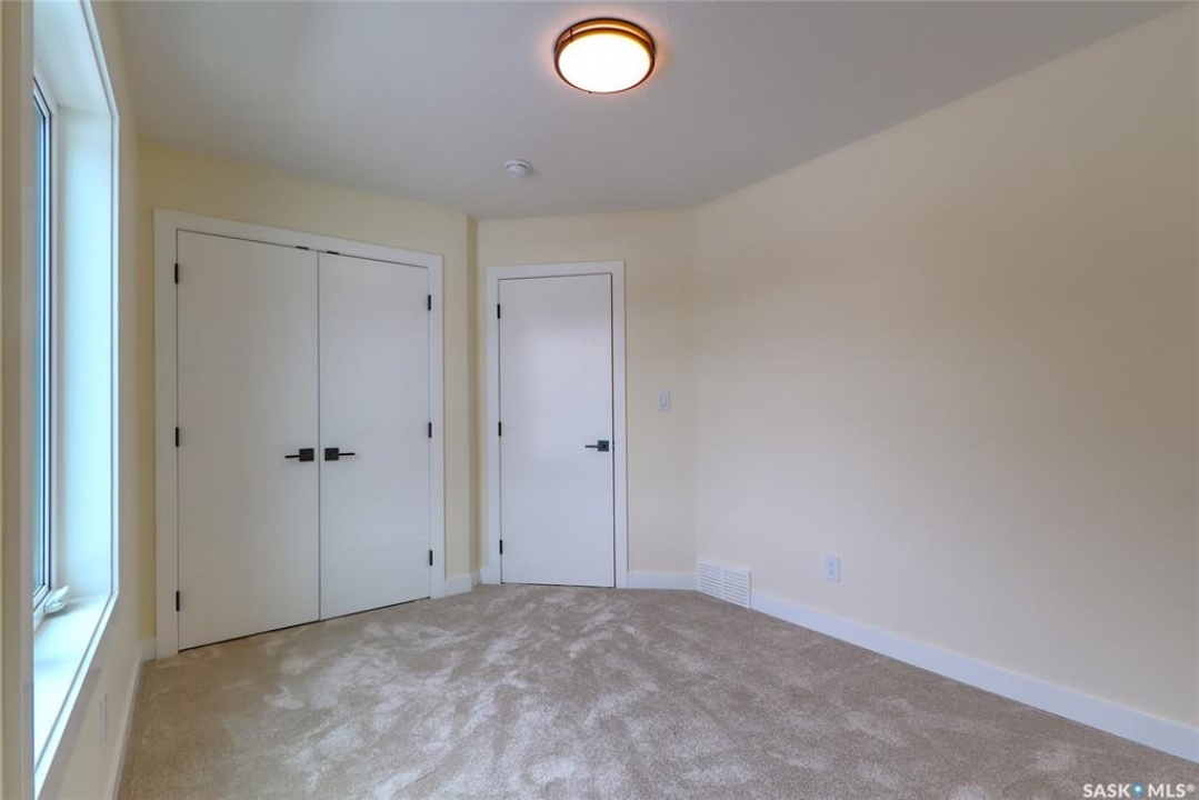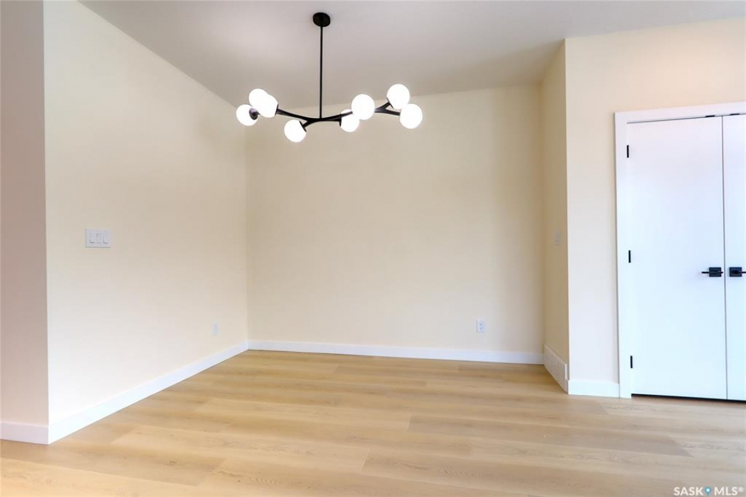Welcome to this beautifully constructed 2-storey home offering 1,576 sqft of thoughtfully designed and highly customized living space. From the moment you enter, you're greeted by a warm and inviting foyer that sets the tone for the rest of the home. The main floor features a stunning, oversized kitchen complete with tall white cabinetry, ample counter space, and a layout perfect for both everyday living and entertaining. The open-concept design flows seamlessly between the dining area and spacious living room, highlighted by a striking brown brick feature wall with a sleek electric fireplace. A convenient 2-piece bathroom completes the main level. Upstairs, you'll find three well-appointed bedrooms and two full bathrooms. The primary suite offers a private retreat with a walk-in closet and its own 3-piece ensuite. The additional bedrooms are generously sized and ideal for family, guests, or a home office. The basement is unfinished and ready for your personal touch, featuring a separate side entry—an excellent opportunity for future basement suite development or added income potential. Outside, the rear of the property includes a parking pad with space for two vehicles, with the option to develop a full two-car garage. Located in the Arnhem Place neighbourhood of Regina, this home offers convenient access to downtown, schools, parks, and public transit. Nearby amenities, shopping, and services make daily living easy, while the proximity to University of Regina and Saskatchewan Polytechnic adds to the property's appeal for families, professionals, and investors alike. This home is protected by the Saskatchewan New Home Warranty Program, providing 1-year comprehensive coverage, 2-year mechanical systems coverage, and 10-year structural coverage — giving buyers complete peace of mind with their investment. A fantastic opportunity to own a modern, move-in-ready home in a mature neighbourhood with excellent potential.