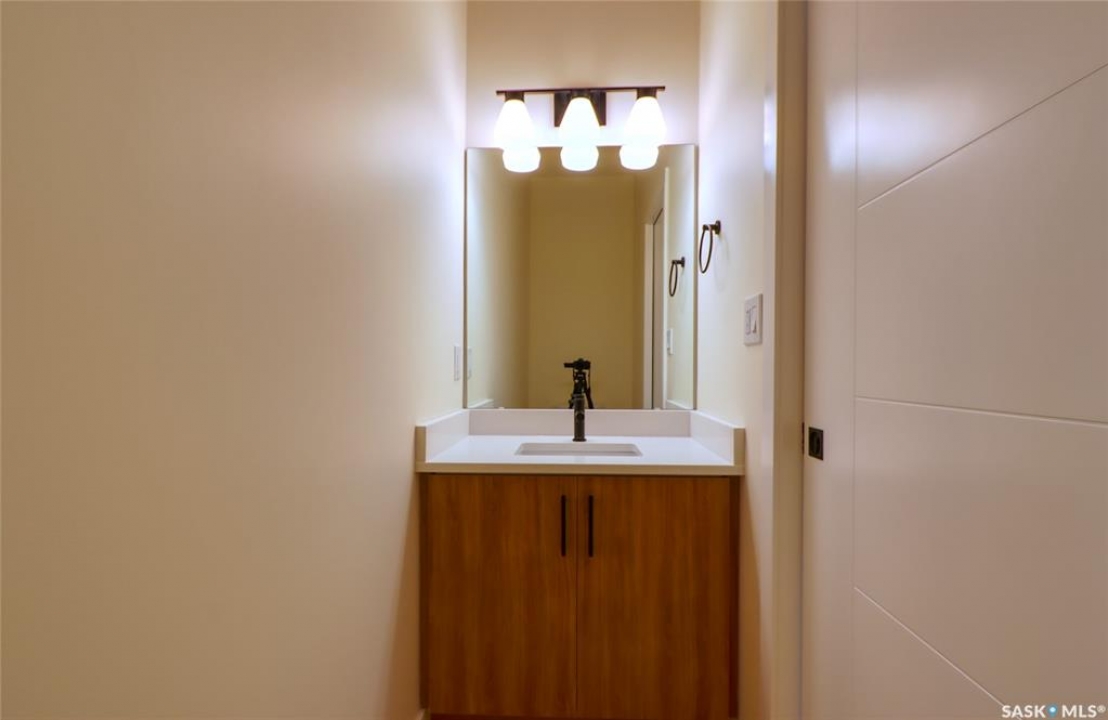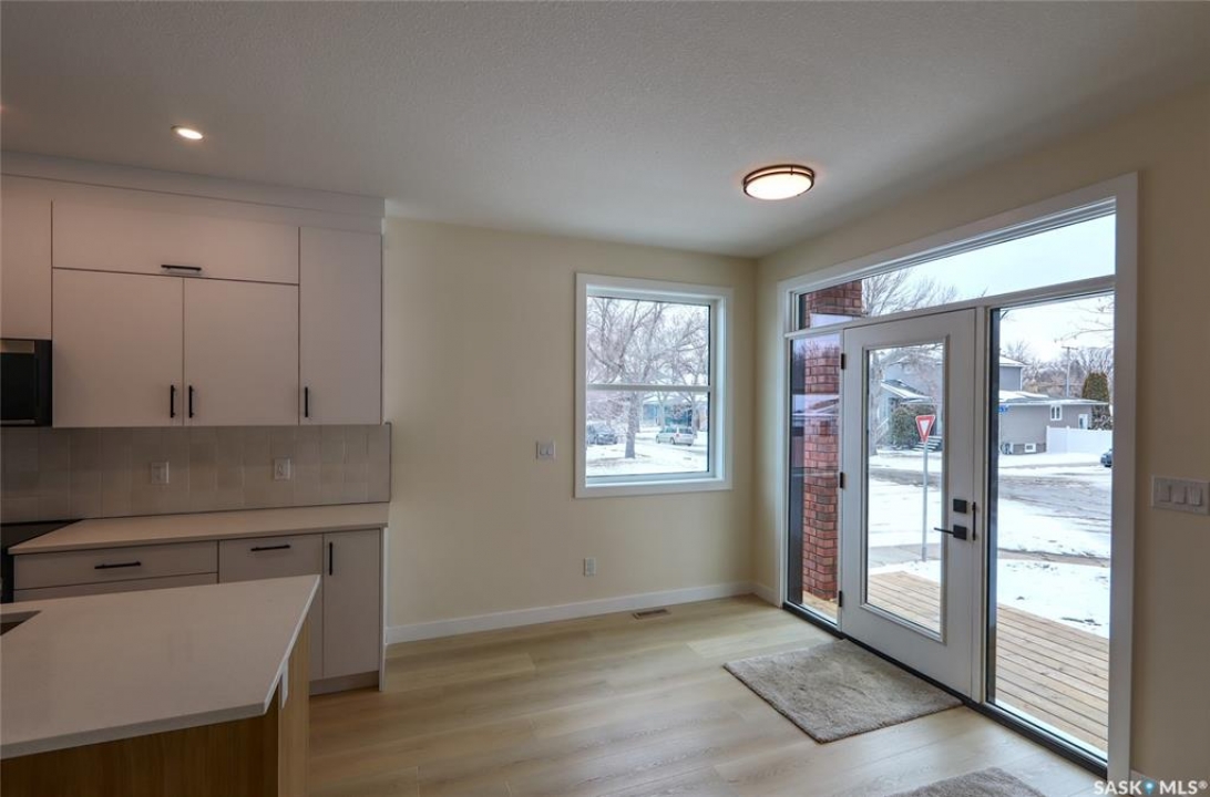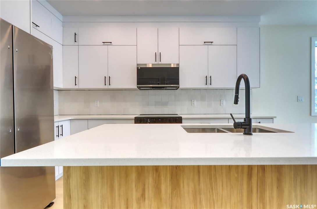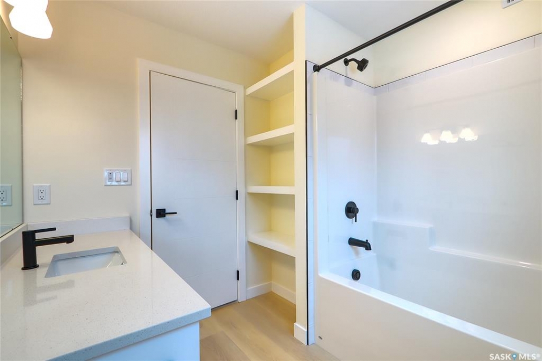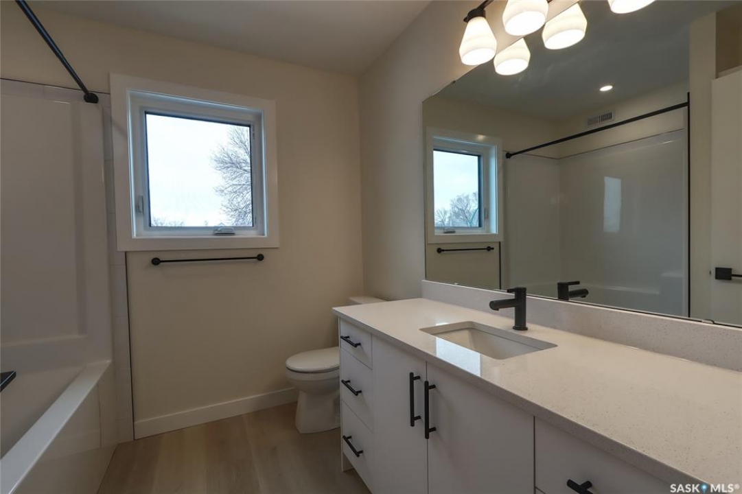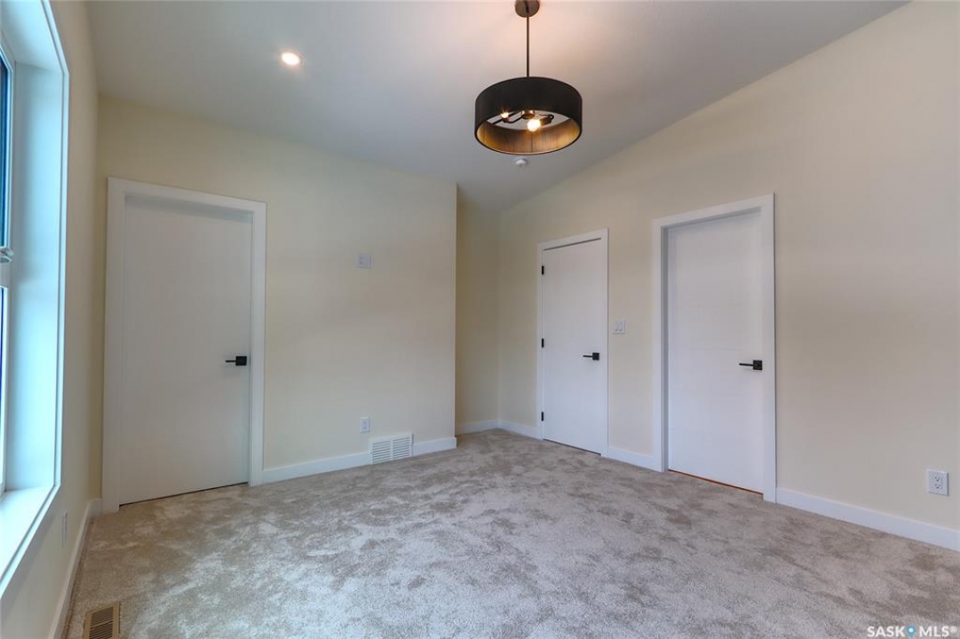 Welcome to this beautifully constructed 2-storey home offering 1,576 sqft of thoughtfully designed and highly customized living space. From the moment you enter, you're greeted by a warm and inviting foyer that sets the tone for the rest of the home. The main floor features a stunning, oversized kitchen complete with tall white cabinetry, ample counter space, and a layout perfect for both everyday living and entertaining. The open-concept design flows seamlessly between the dining area and spacious living room, highlighted by a striking brown brick feature wall with a sleek electric fireplace. A convenient 2-piece bathroom completes the main level. Upstairs, you'll find three well-appointed bedrooms and two full bathrooms. The primary suite offers a private retreat with a walk-in closet and its own 3-piece ensuite. The additional bedrooms are generously sized and ideal for family, guests, or a home office. The basement is unfinished and ready for your personal touch, featuring a separate side entry—an excellent opportunity for future basement suite development or added income potential. Outside, the rear of the property includes a parking pad with space for two vehicles, with the option to develop a full two-car garage. Located in the Arnhem Place neighbourhood of Regina, this home offers convenient access to downtown, schools, parks, and public transit. Nearby amenities, shopping, and services make daily living easy, while the proximity to University of Regina and Saskatchewan Polytechnic adds to the property's appeal for families, professionals, and investors alike. This home is protected by the Saskatchewan New Home Warranty Program, providing 1-year comprehensive coverage, 2-year mechanical systems coverage, and 10-year structural coverage — giving buyers complete peace of mind with their investment. A fantastic opportunity to own a modern, move-in-ready home in a mature neighbourhood with excellent potential.