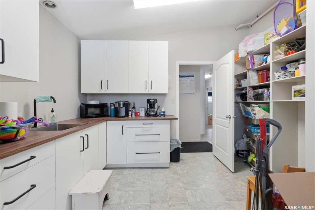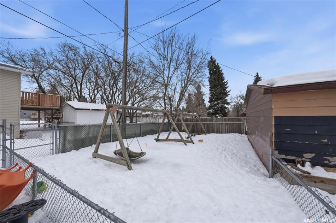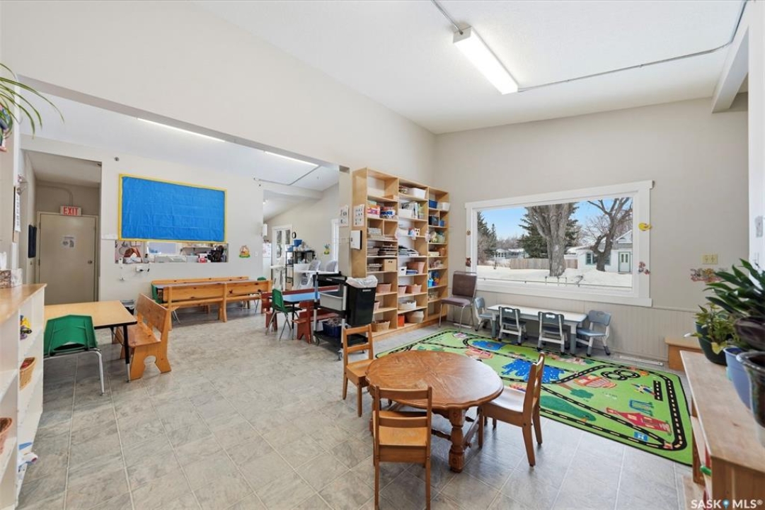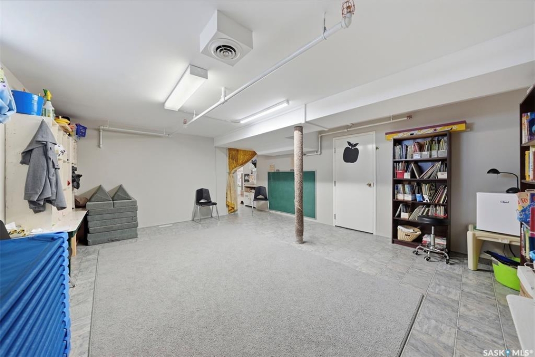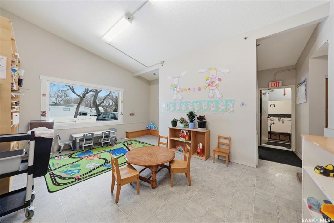 This former duplex has been in use as the local daycare, and has been continuously updated. Located on a 75ft lot on a quiet street, this property would make an excellent single family home, group home, or could be converted back to a duplex. There is a large mudroom on the north side that also accesses the back yard. Step into the main space, and your notice the vaulted ceilings and huge windows, which create an open, bright space. There is one full kitchen and one partial (ikea cabinetry, no stove) kitchen. 2 - 2 pc baths previously had bath tubs, there is room to re-install. Bedrooms have been opened up to create larger spaces. Basement is open with a play room, games room, locker/storage room, utility, laundry in utility, tv room, and another 2 pc bath. Backyard is xeriscaped and fenced, and there is a fenced area in the front yard. There has been continuous updating on this building including siding, windows and furnaces in 2025, shingles 2021. and more. Must be seen to be appreciated! Call your agent today to book your private viewing!