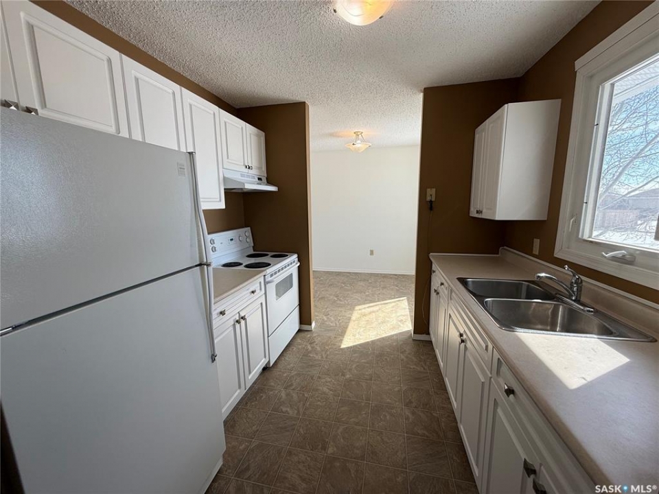 970 Larson Crescent, Eston. Welcome to this move in ready 960 sq. ft. bungalow, built in 1981 and situated on a desirable corner lot. The home features a bright, front-facing living room filled with natural light, along with a dedicated dining area—perfect for everyday living and entertaining. The kitchen offers good cupboard space and includes a convenient pantry closet, with fridge and stove included. Down the hall, you'll find three comfortable bedrooms and a full 4-piece bathroom. A rear entrance provides easy access to both the main level and the full, unfinished basement—offering excellent potential for future development to suit your needs. Additional highlights include a durable metal roof for long-term peace of mind. This property is a great opportunity for first-time buyers, downsizers, or investors alike. Call today to book a viewing!