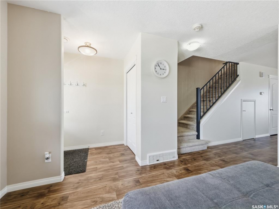 Welcome to 209-3818 Dewdney Ave E, a well-maintained two-storey townhouse style condo located in the East Pointe Estates community in Regina's east end. This unit offers 3 bedrooms and 2 bathrooms with a functional layout that makes great use of the space. The main floor features a bright living area and a kitchen complete with granite countertops, ample storage, and plenty of counter space. Thoughtful features such as under-stair storage, and Ring doorbell add everyday convenience. Upstairs you'll find three bedrooms and a full bathroom, offering flexibility for families, guests, or home office space. A West-facing balcony provides a great outdoor area to relax along with a heated storage room that is ideal for additional storage. Conveniently located with walking paths, restaurants, and everyday amenities nearby, along with quick access to Victoria Avenue for groceries, gas, and shopping.