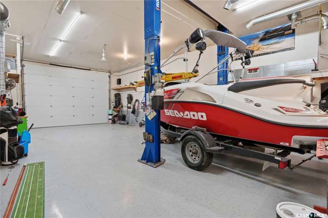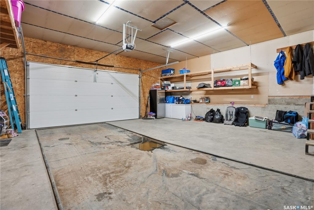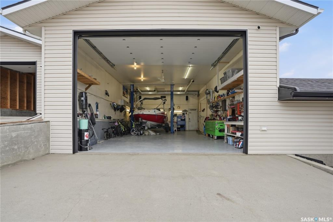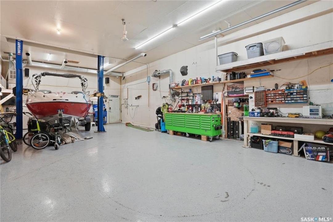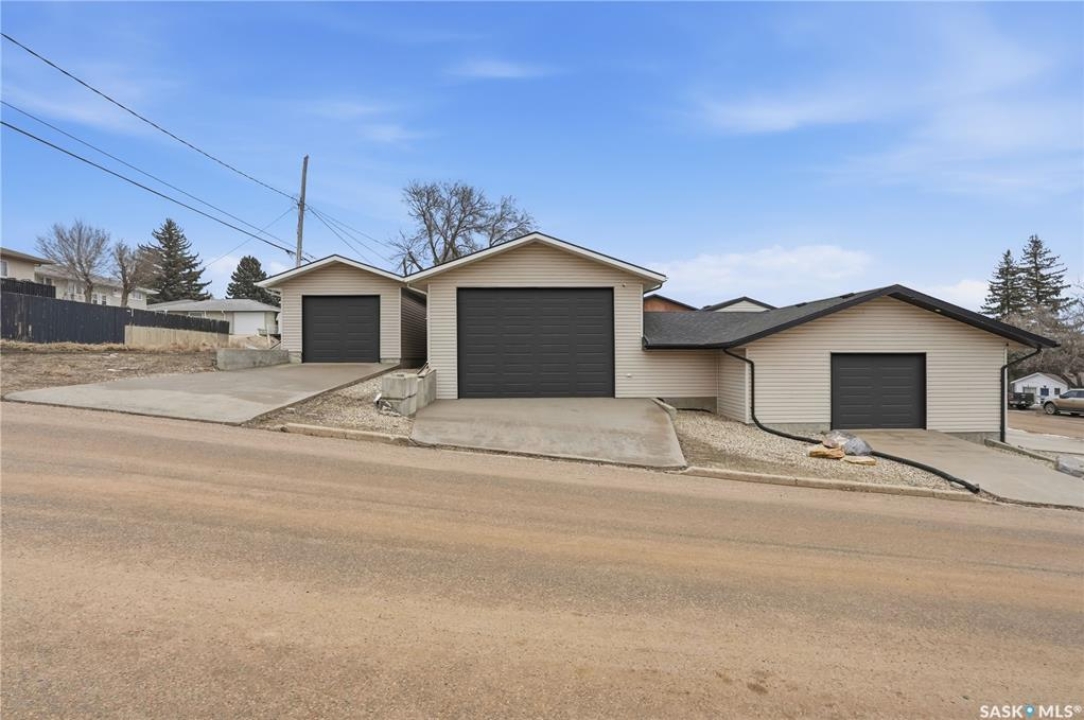 Dream garage alert! This bi-level home boasts over 1,200 sq.ft. with 4 beds and 3 baths as well as over 2,700 sq.ft. of garage space. Excellent curb appeal as you arrive at this corner lot with a custom concrete driveway! Heading inside we find a large foyer that leads up to a mudroom with main floor laundry. Next we find a spacious kitchen with a large eat-up chefs island, lots of cabinets and a stainless steel appliance package. Your kitchen provides access to your private backyard with a deck to a hottub. Next we find a spacious living room with a bay window. Down the hall we find a large primary suite with dual closets and a huge 4 piece ensuite boasting a jet tub. Heading downstairs we find a huge family room - the perfect space for the kids to play. We also find a 3 piece bath and 2 more bedrooms on this level. Off the mudroom we find our first double attached and heated garage (26'x26'). Off of this one we find an unheated storage space and an office / passthrough space. Next we find the dream mancave shop (22'x40' with 12' ceilings), complete with epoxy floor and a 2 post lift that is available for additional price. And finally we find a detached garage that is 16'x 52". Your very private backyard is like your own private oasis here with deck, hottub nook, stamped concrete patio, UGS and a dog run. Lots of updates in the last few years - new shingles on all buildings, new fascia, soffit and eaves on the house, new lighting under eaves, 4 new garage doors, new hot water tank, new carpet throughout the home, all new appliances in the home and so much more. You are sure to be impressed by this home! Reach out today to book your showing!