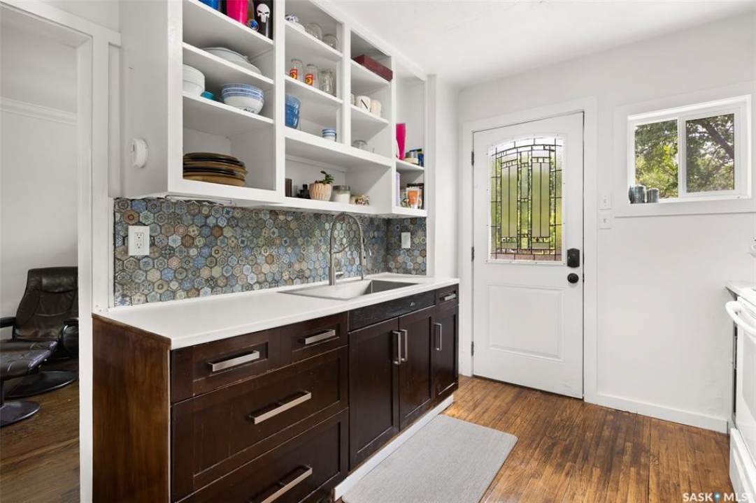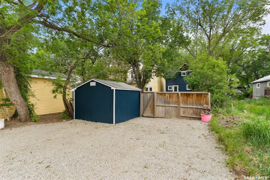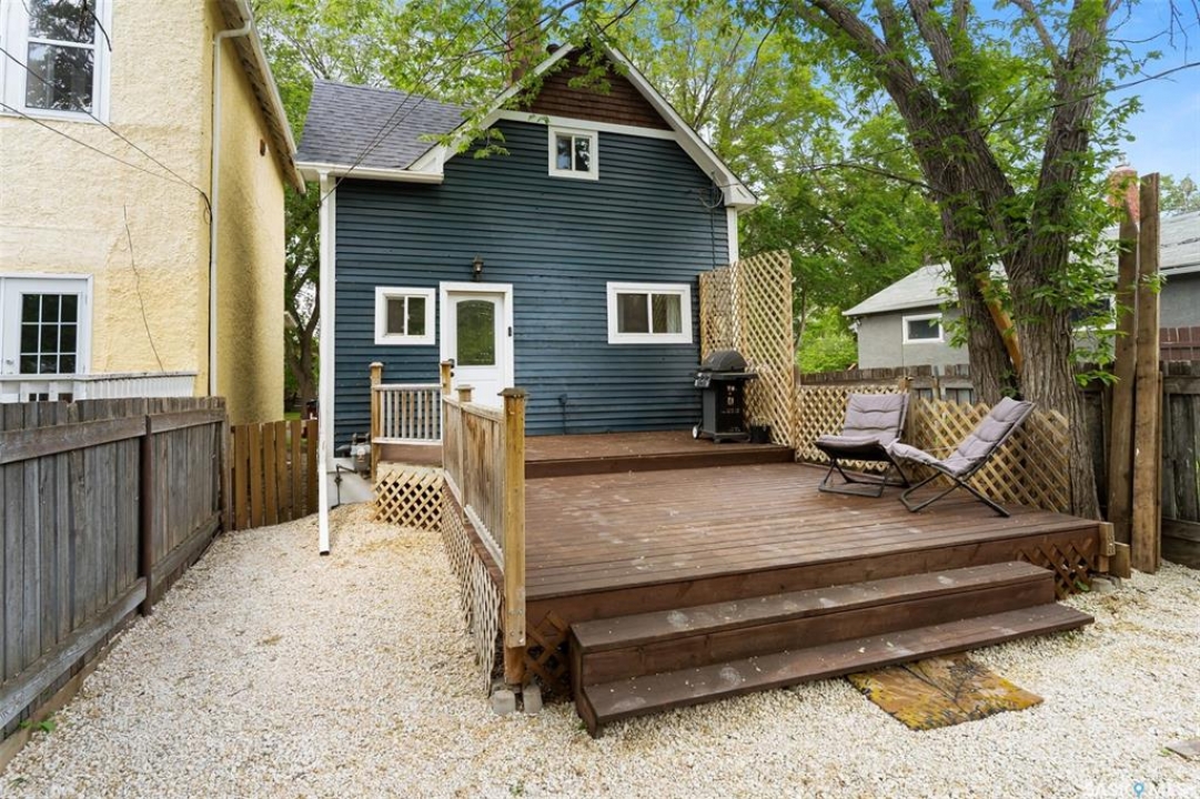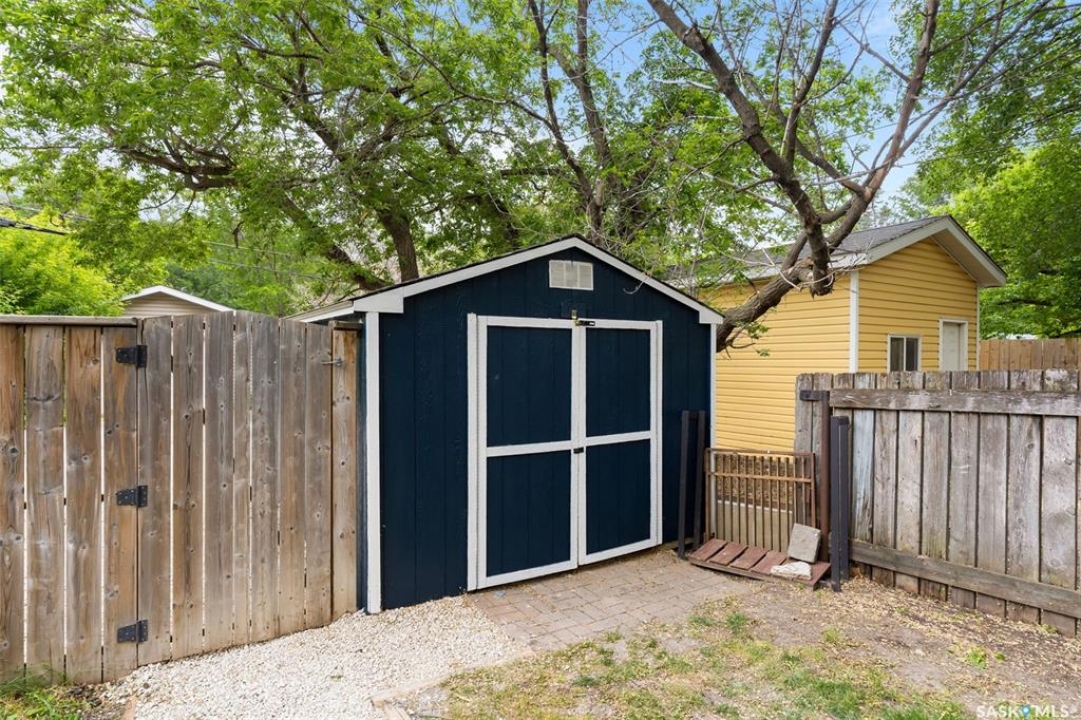 Welcome to 1941 Montague Street in the charming neighbourhood of Cathedral. This one and a half storey, 867 sqft character home has been well maintained and cared for. Entering this home through the welcoming 3-season front porch where you can hang your coat and store your shoes, take that sigh and say, “I'm home!”. An ideat home for first time home buyers, or for someone wanting to leave behind apartment style living, this home suits many genres. As you enter the main floor there is a staircase to the second level with an alcove next to it that is perfect for a small table to set down your keys. To the left you enter the living room and dining area. Hardwood flooring and high ceilings open this space up. Enjoy entertaining friends or unwinding in the living room. Off the dining area is the kitchen. There are open front upper cabinets and more storage than you would think. There is an attractive tile backsplash and a large stainless steel sink. Appliances are included. From the kitchen you have direct access to the 2-tiered deck and backyard. Enjoy summer nights BBQ'ing with friends and family. The backyard is fully fenced and has a cute garden shed. A future garage would easily fit in this backyard. The exterior of the home was recently repainted; it has updated windows and new shingles were installed 2025. Going back to the home, we will go to the second floor where there are two good sized bedrooms on opposite sides of the hallway and a 4-pce bathroom. The basement is an undeveloped space and is currently used for storage and is home to the laundry area. There is a High Efficiency Furnace, updated electrical panel, sump pump, and plenty of room for storage. Just unpack your bags and come home! Pictures are from when previous tenant lived in the property. Living room and dining room photos have been photo shopped to remove tenant furniture.