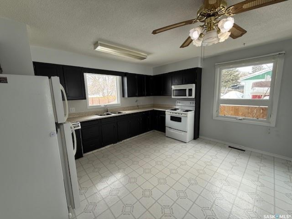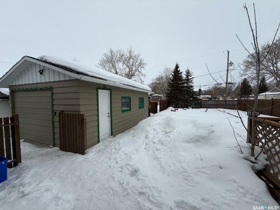 This cute, clean, and updated 968 SF bungalow is the perfect starter home, downsizer, or rental property, offering 2 good-sized bedrooms and a full 4-piece bathroom as well as a large eat-in kitchen with freshly painted cupboards inside and out, and a dedicated living room all on the main level—all complemented by brand-new interior and exterior paint. The full basement adds exceptional versatility with a spacious laundry/utility room, oversized office, a cozy rec room, a separate den area for workout space or office, an additional 3-piece bathroom, and multiple storage/cold rooms. Outside, you will enjoy a freshly stained and fenced backyard featuring a 10' x 15' deck with a fire pit area perfect for entertaining, a detached single-car garage with remote and garden shed. With all appliances included and priced to sell, this move-in-ready home delivers outstanding value and charm and will not last long on the market.