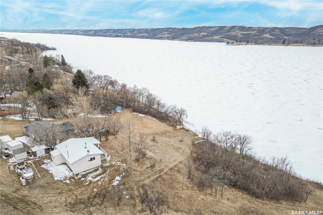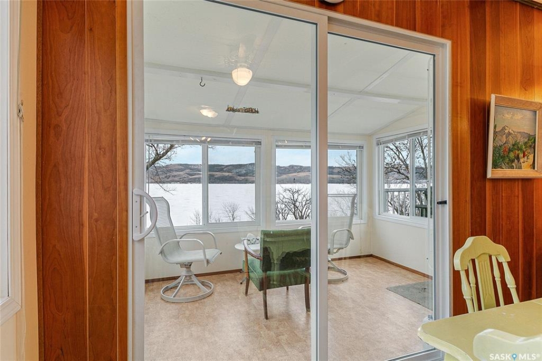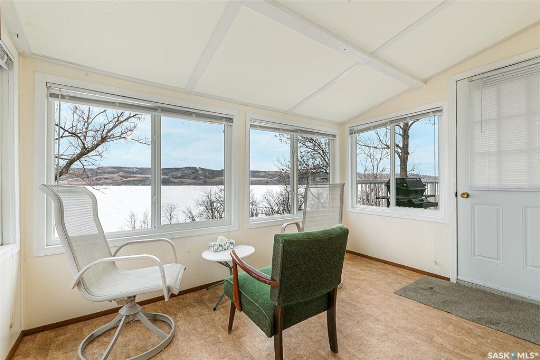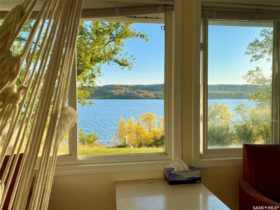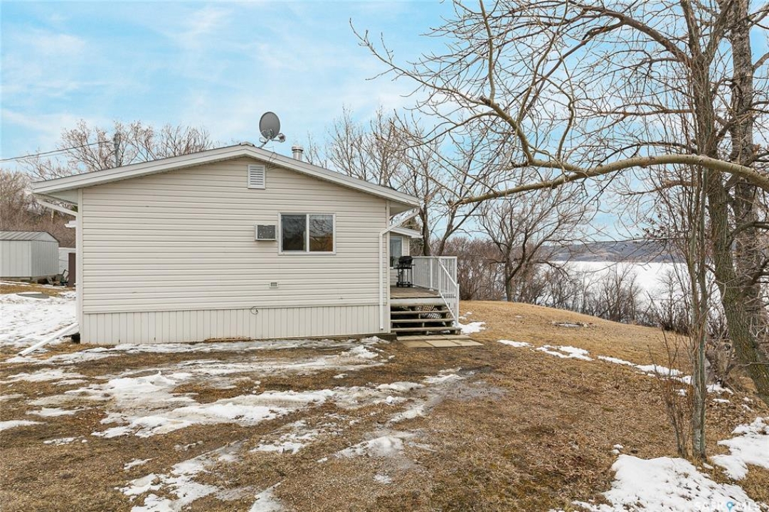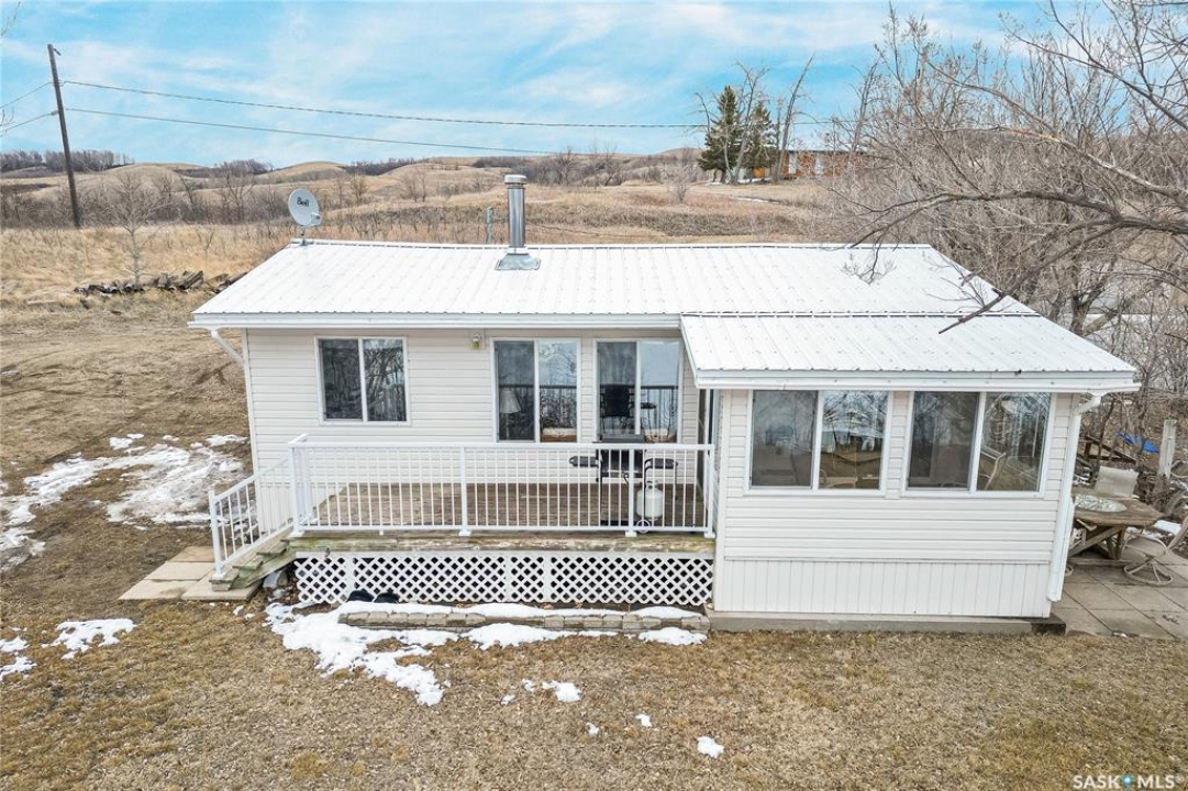 Welcome to this charming four-season waterfront cabin at Buffalo Pound Lake in the peaceful community of Valley View Resort. Located just 45 minutes from Regina, with less than 14 KM of gravel and the remainder on comfortable asphalt, this property offers the perfect balance of accessibility and quiet lakeside living. Valley View is well known for its privacy, tranquillity, and convenient boat launch. This well-maintained 704 sq. ft. cabin features 3 bedrooms and 1 bathroom, offering a functional and inviting layout. The bathroom features a functional design with separate rooms for the shower and toilet. The kitchen features warm wooden cabinetry, tile backsplash, and impeccably clean appliances, while the living room, primary bedroom, and sunroom offer stunning views of the lake. Natural light and scenic surroundings make this home feel like a true retreat in every season. Step outside to a large front deck, perfect for relaxing and enjoying the waterfront setting. The generous 65' x 160' lot also includes two large sheds, providing plenty of storage for lake life essentials. Built for year-round comfort, the cabin features a durable metal roof, vinyl siding, and newer PVC windows throughout. A wood stove adds both charm and efficiency, keeping the space cozy during the winter months while helping reduce heating costs. An added bonus is that the property comes with most furnishings, minus the kitchen table & chairs, and some personal items. Just move in and start enjoying! 32' plastic dock with 2'x4' wood legs, track, and dolly are at the property and are included in the sale. This is a fantastic opportunity to own a quiet waterfront escape with everything you need to enjoy lake living year-round. Call today!