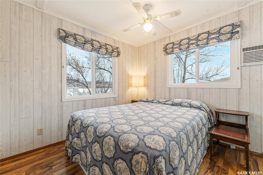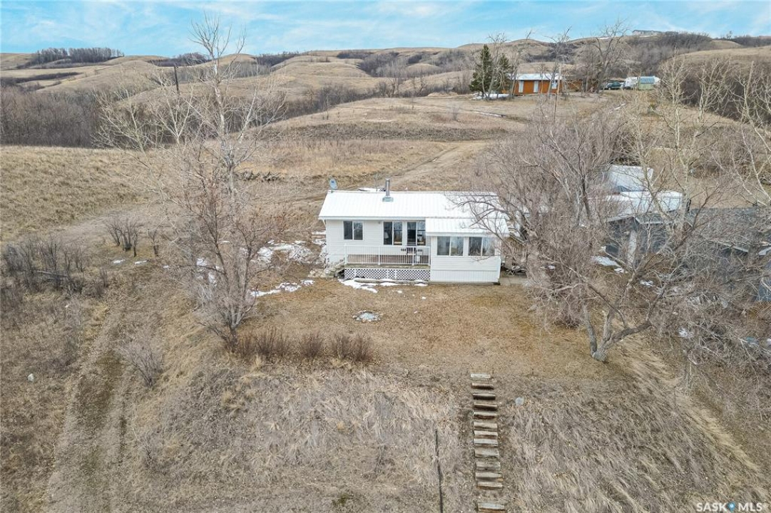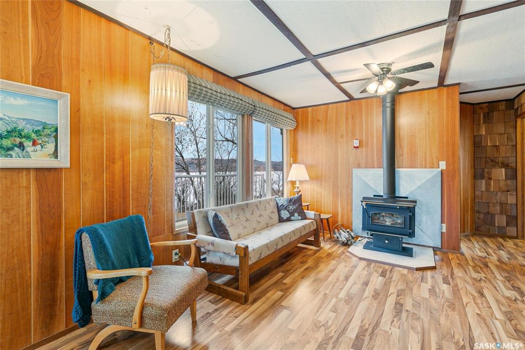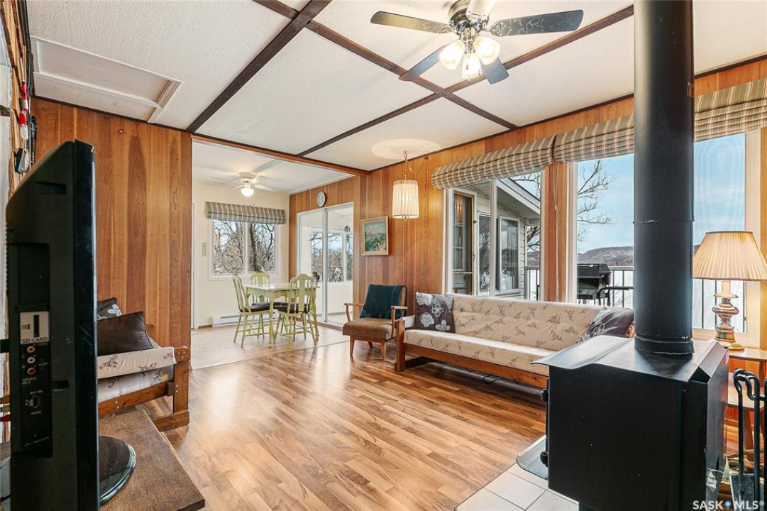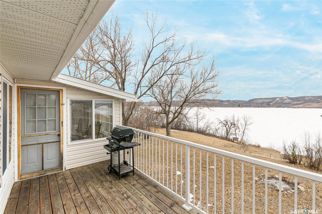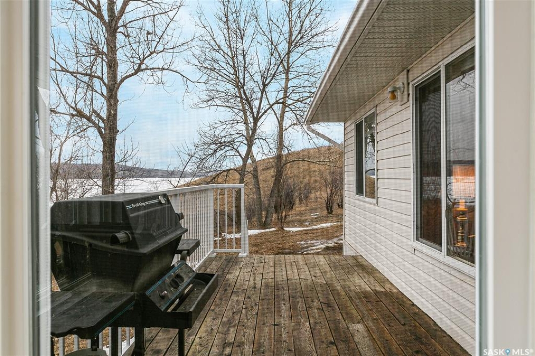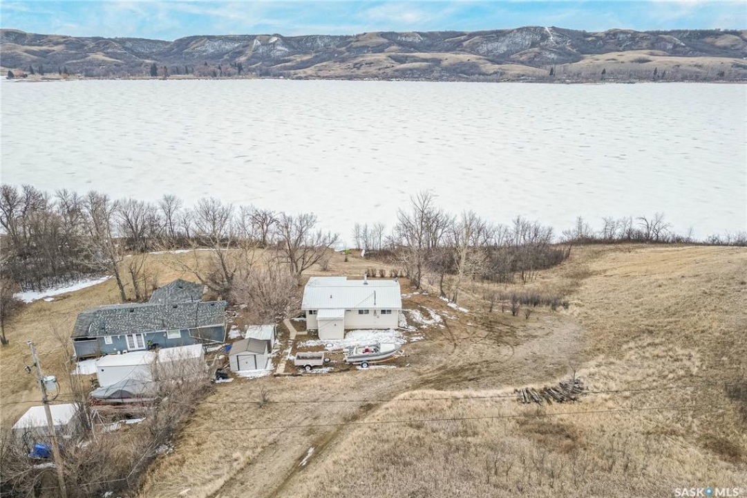 Welcome to this charming four-season waterfront cabin at Buffalo Pound Lake in the peaceful community of Valley View Resort. Located just 45 minutes from Regina, with less than 14 KM of gravel and the remainder on comfortable asphalt, this property offers the perfect balance of accessibility and quiet lakeside living. Valley View is well known for its privacy, tranquillity, and convenient boat launch. This well-maintained 704 sq. ft. cabin features 3 bedrooms and 1 bathroom, offering a functional and inviting layout. The bathroom features a functional design with separate rooms for the shower and toilet. The kitchen features warm wooden cabinetry, tile backsplash, and impeccably clean appliances, while the living room, primary bedroom, and sunroom offer stunning views of the lake. Natural light and scenic surroundings make this home feel like a true retreat in every season. Step outside to a large front deck, perfect for relaxing and enjoying the waterfront setting. The generous 65' x 160' lot also includes two large sheds, providing plenty of storage for lake life essentials. Built for year-round comfort, the cabin features a durable metal roof, vinyl siding, and newer PVC windows throughout. A wood stove adds both charm and efficiency, keeping the space cozy during the winter months while helping reduce heating costs. An added bonus is that the property comes with most furnishings, minus the kitchen table & chairs, and some personal items. Just move in and start enjoying! 32' plastic dock with 2'x4' wood legs, track, and dolly are at the property and are included in the sale. This is a fantastic opportunity to own a quiet waterfront escape with everything you need to enjoy lake living year-round. Call today!