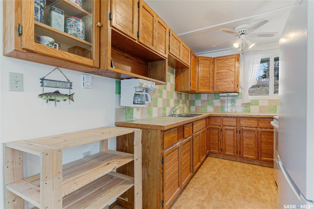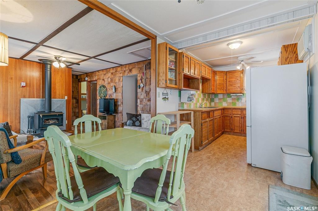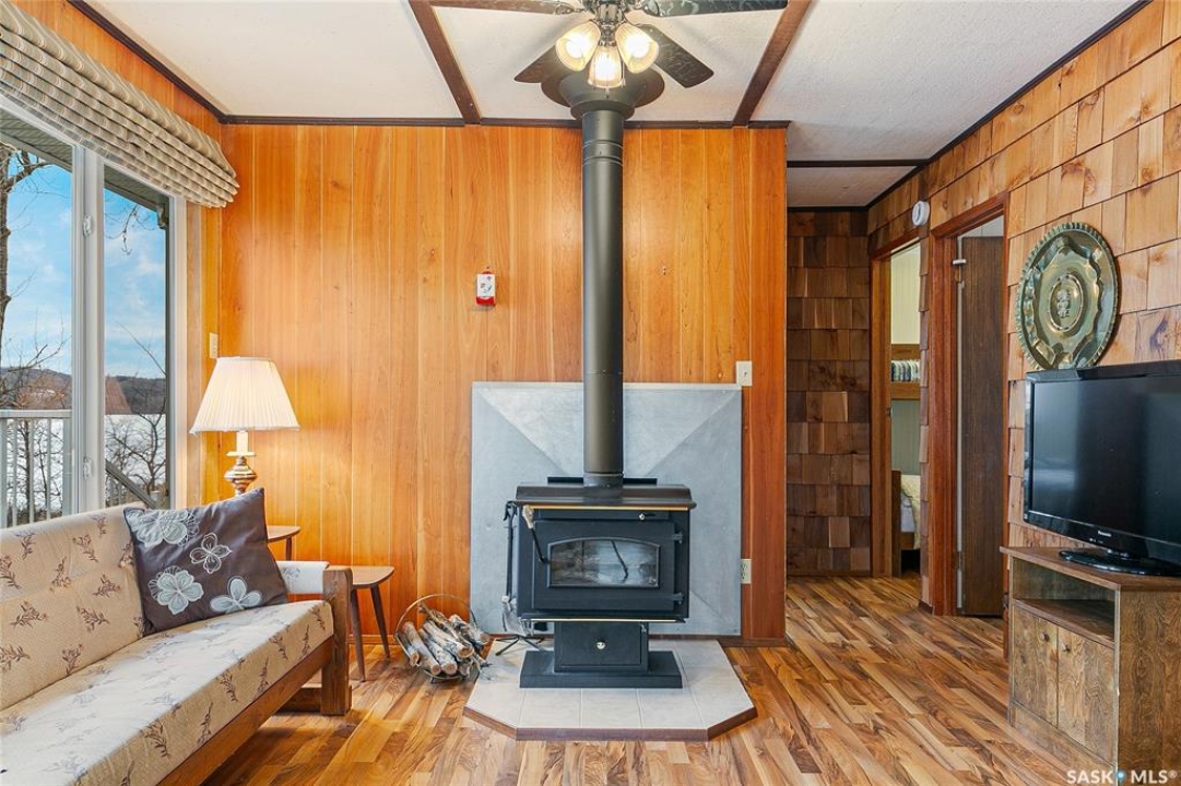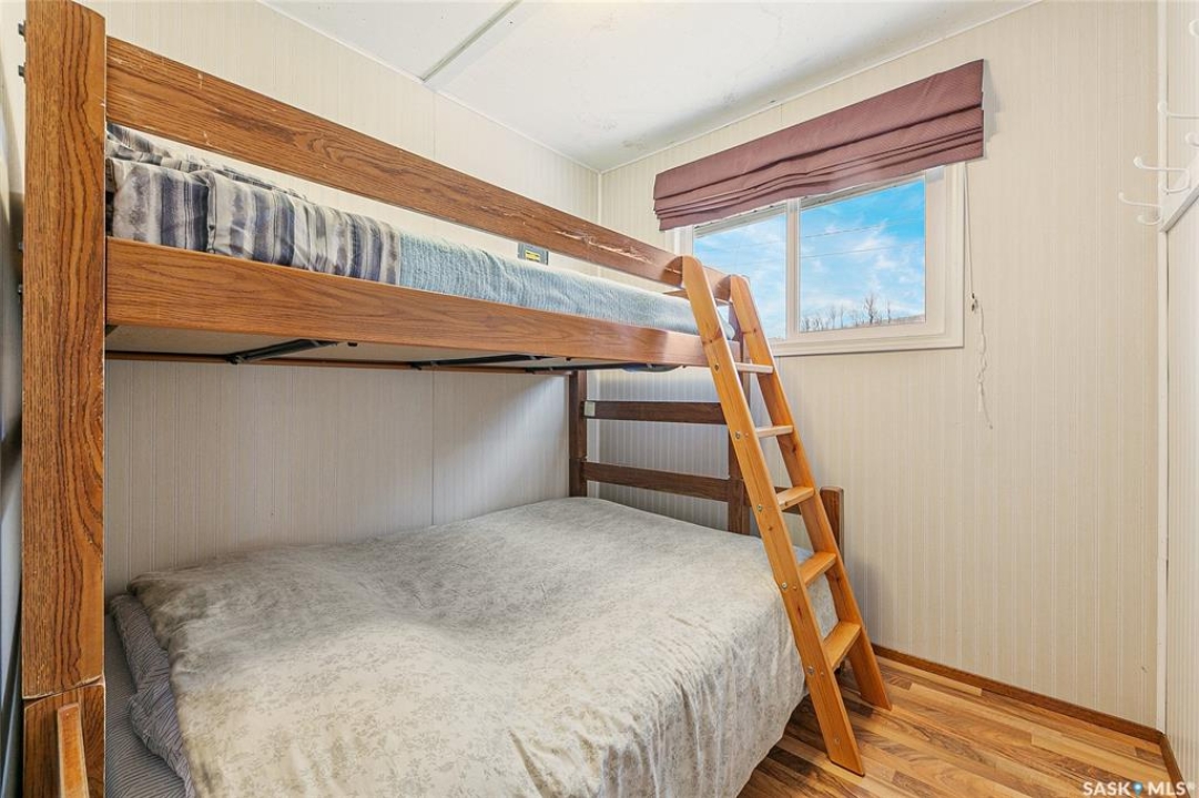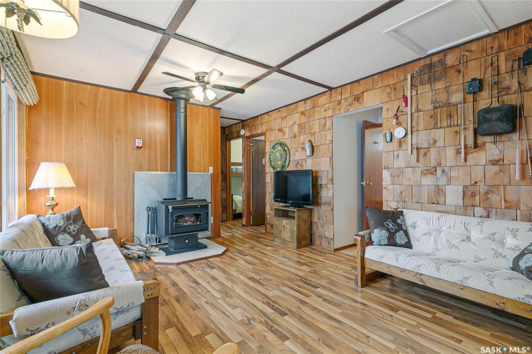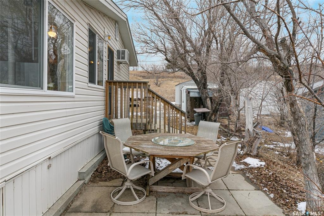 Welcome to this charming four-season waterfront cabin at Buffalo Pound Lake in the peaceful community of Valley View Resort. Located just 45 minutes from Regina, with less than 14 KM of gravel and the remainder on comfortable asphalt, this property offers the perfect balance of accessibility and quiet lakeside living. Valley View is well known for its privacy, tranquillity, and convenient boat launch. This well-maintained 704 sq. ft. cabin features 3 bedrooms and 1 bathroom, offering a functional and inviting layout. The bathroom features a functional design with separate rooms for the shower and toilet. The kitchen features warm wooden cabinetry, tile backsplash, and impeccably clean appliances, while the living room, primary bedroom, and sunroom offer stunning views of the lake. Natural light and scenic surroundings make this home feel like a true retreat in every season. Step outside to a large front deck, perfect for relaxing and enjoying the waterfront setting. The generous 65' x 160' lot also includes two large sheds, providing plenty of storage for lake life essentials. Built for year-round comfort, the cabin features a durable metal roof, vinyl siding, and newer PVC windows throughout. A wood stove adds both charm and efficiency, keeping the space cozy during the winter months while helping reduce heating costs. An added bonus is that the property comes with most furnishings, minus the kitchen table & chairs, and some personal items. Just move in and start enjoying! 32' plastic dock with 2'x4' wood legs, track, and dolly are at the property and are included in the sale. This is a fantastic opportunity to own a quiet waterfront escape with everything you need to enjoy lake living year-round. Call today!