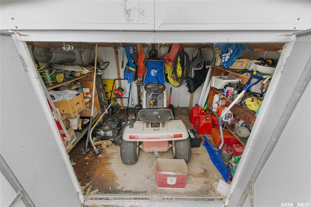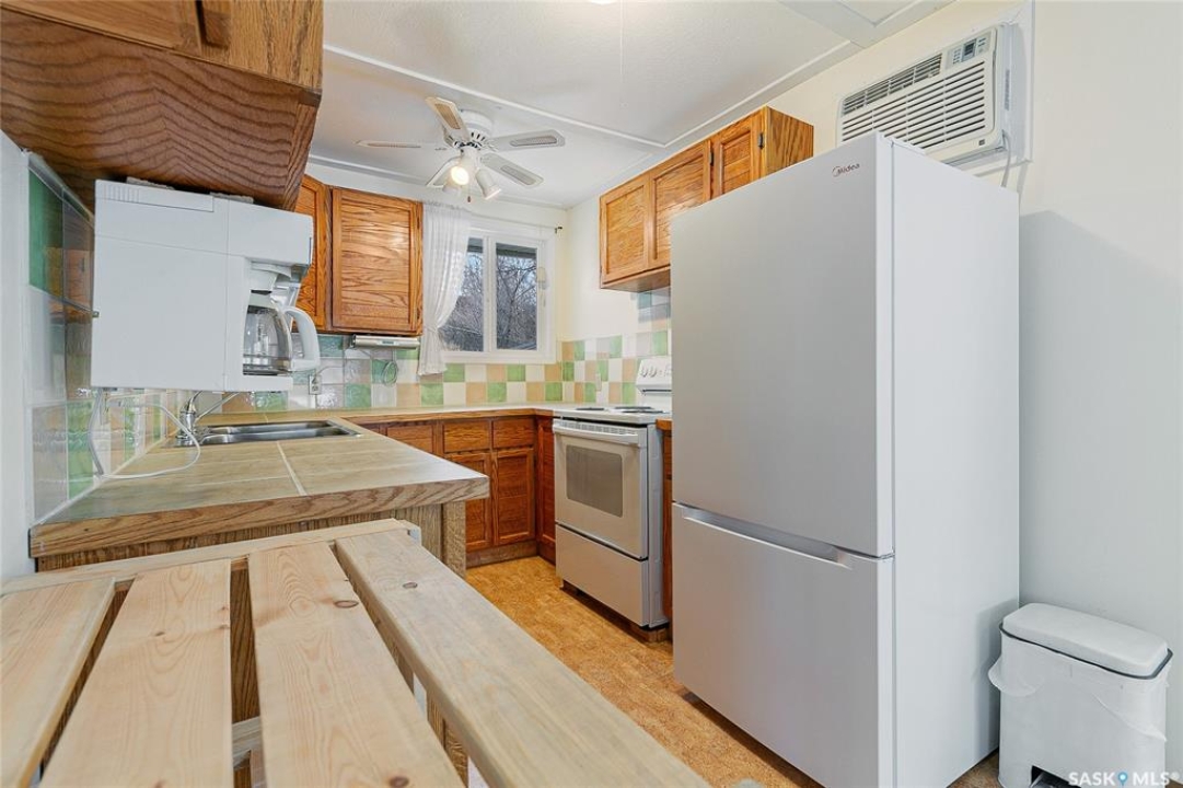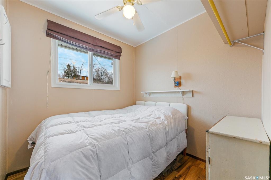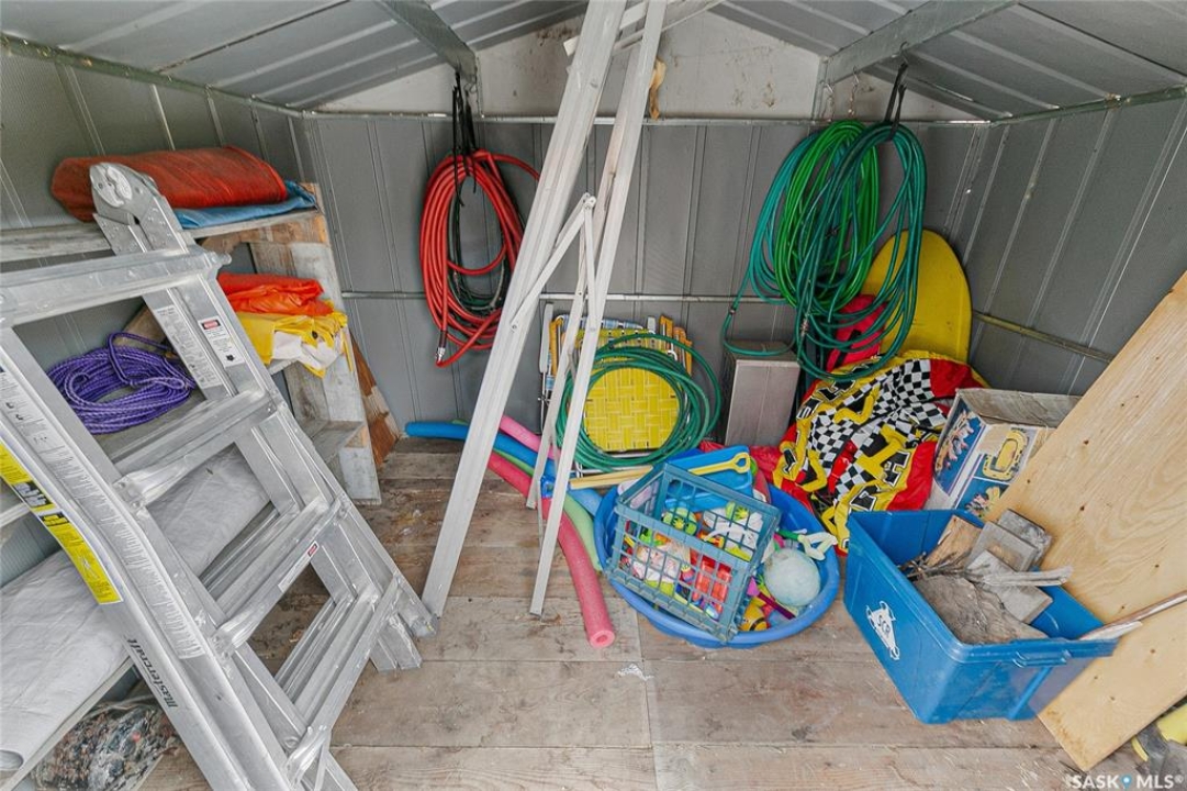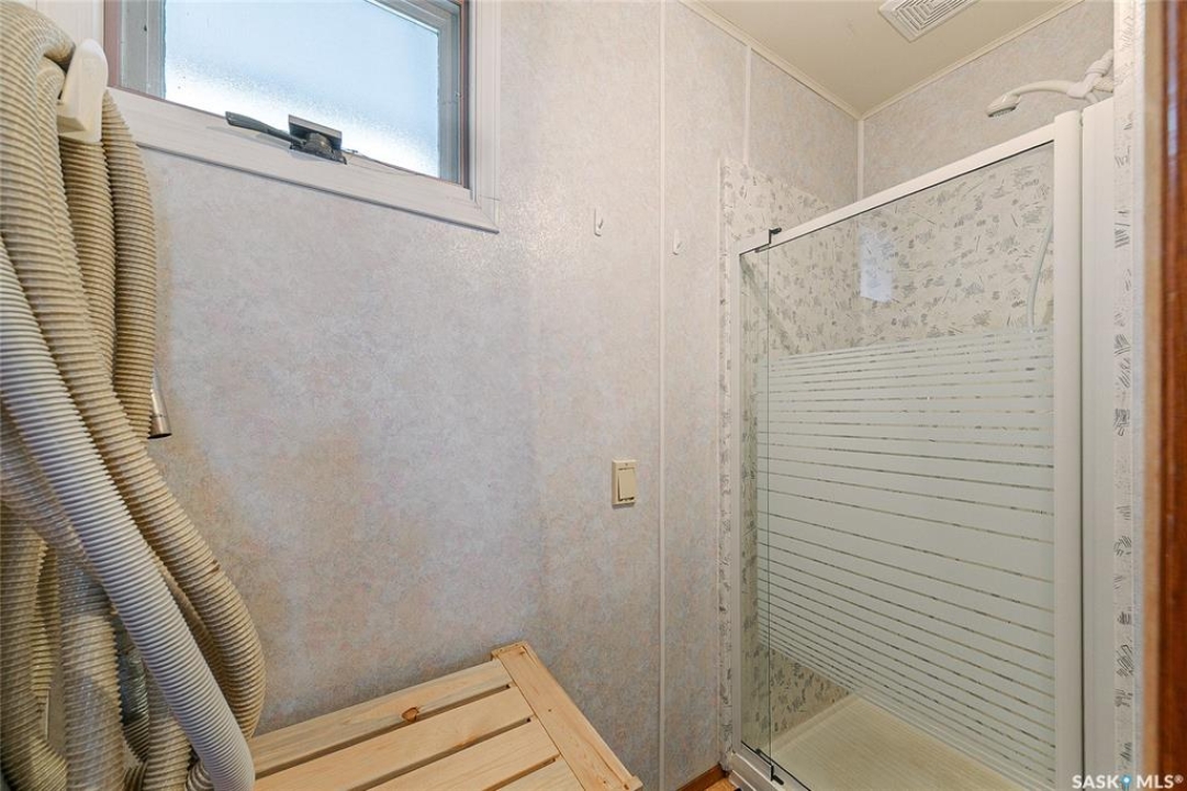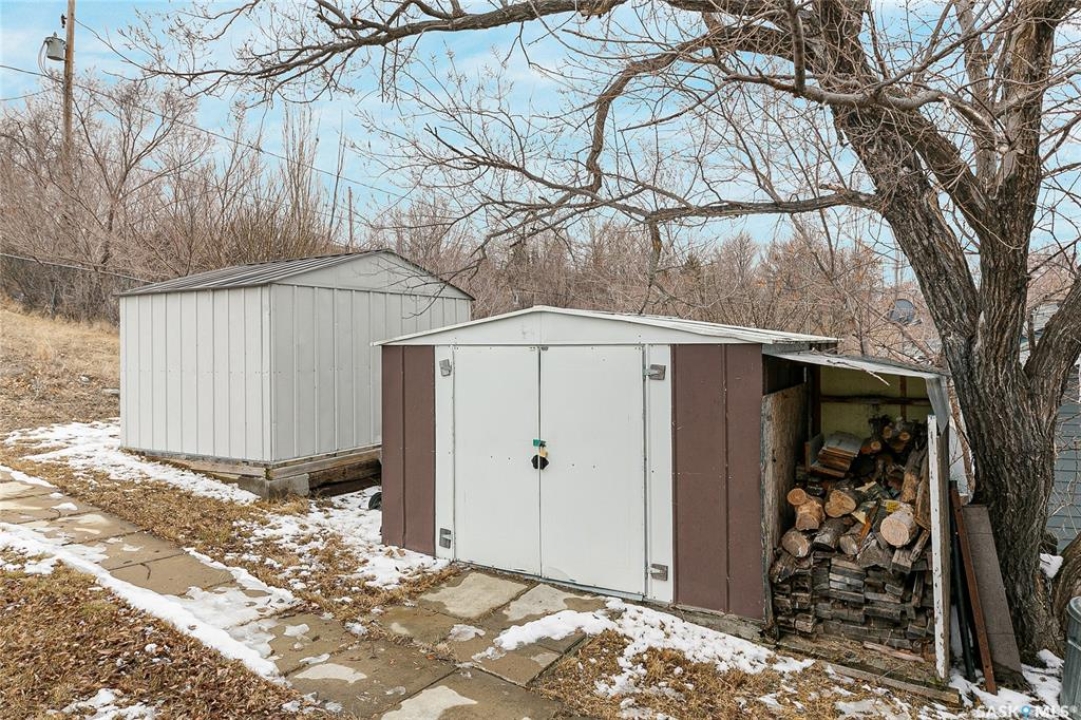 Welcome to this charming four-season waterfront cabin at Buffalo Pound Lake in the peaceful community of Valley View Resort. Located just 45 minutes from Regina, with less than 14 KM of gravel and the remainder on comfortable asphalt, this property offers the perfect balance of accessibility and quiet lakeside living. Valley View is well known for its privacy, tranquillity, and convenient boat launch. This well-maintained 704 sq. ft. cabin features 3 bedrooms and 1 bathroom, offering a functional and inviting layout. The bathroom features a functional design with separate rooms for the shower and toilet. The kitchen features warm wooden cabinetry, tile backsplash, and impeccably clean appliances, while the living room, primary bedroom, and sunroom offer stunning views of the lake. Natural light and scenic surroundings make this home feel like a true retreat in every season. Step outside to a large front deck, perfect for relaxing and enjoying the waterfront setting. The generous 65' x 160' lot also includes two large sheds, providing plenty of storage for lake life essentials. Built for year-round comfort, the cabin features a durable metal roof, vinyl siding, and newer PVC windows throughout. A wood stove adds both charm and efficiency, keeping the space cozy during the winter months while helping reduce heating costs. An added bonus is that the property comes with most furnishings, minus the kitchen table & chairs, and some personal items. Just move in and start enjoying! 32' plastic dock with 2'x4' wood legs, track, and dolly are at the property and are included in the sale. This is a fantastic opportunity to own a quiet waterfront escape with everything you need to enjoy lake living year-round. Call today!