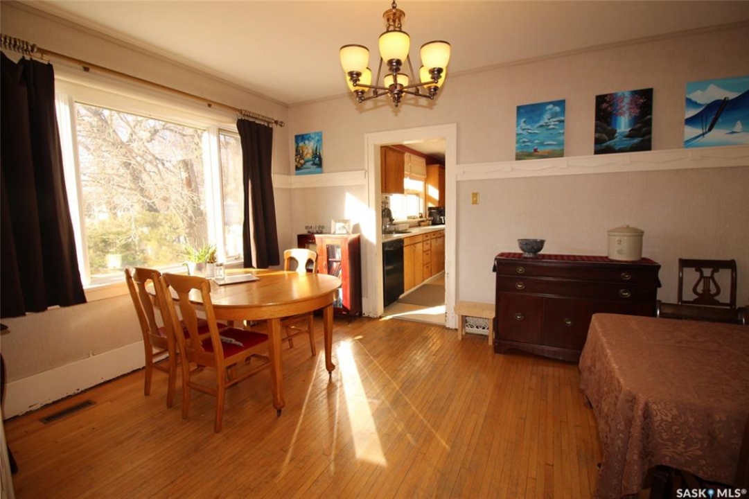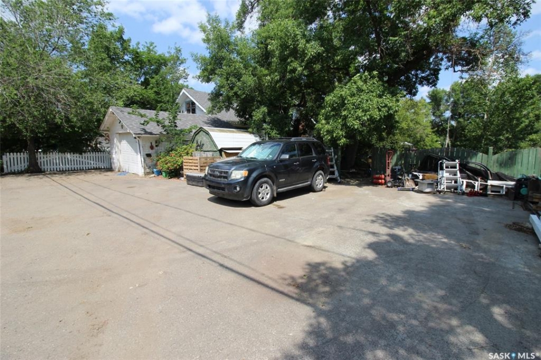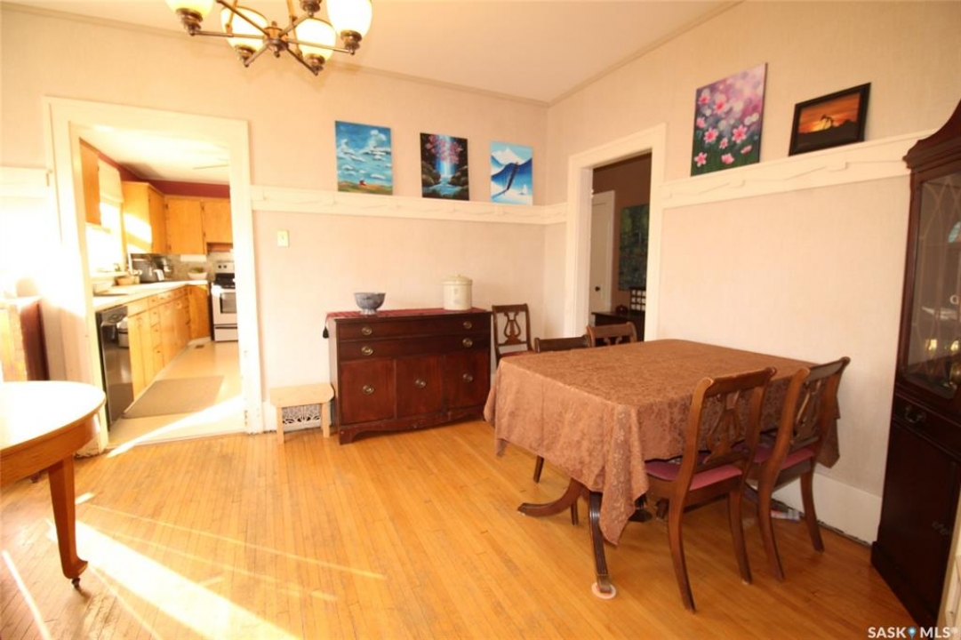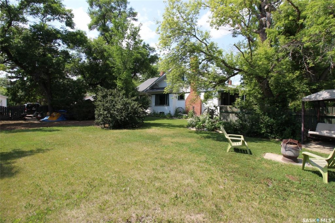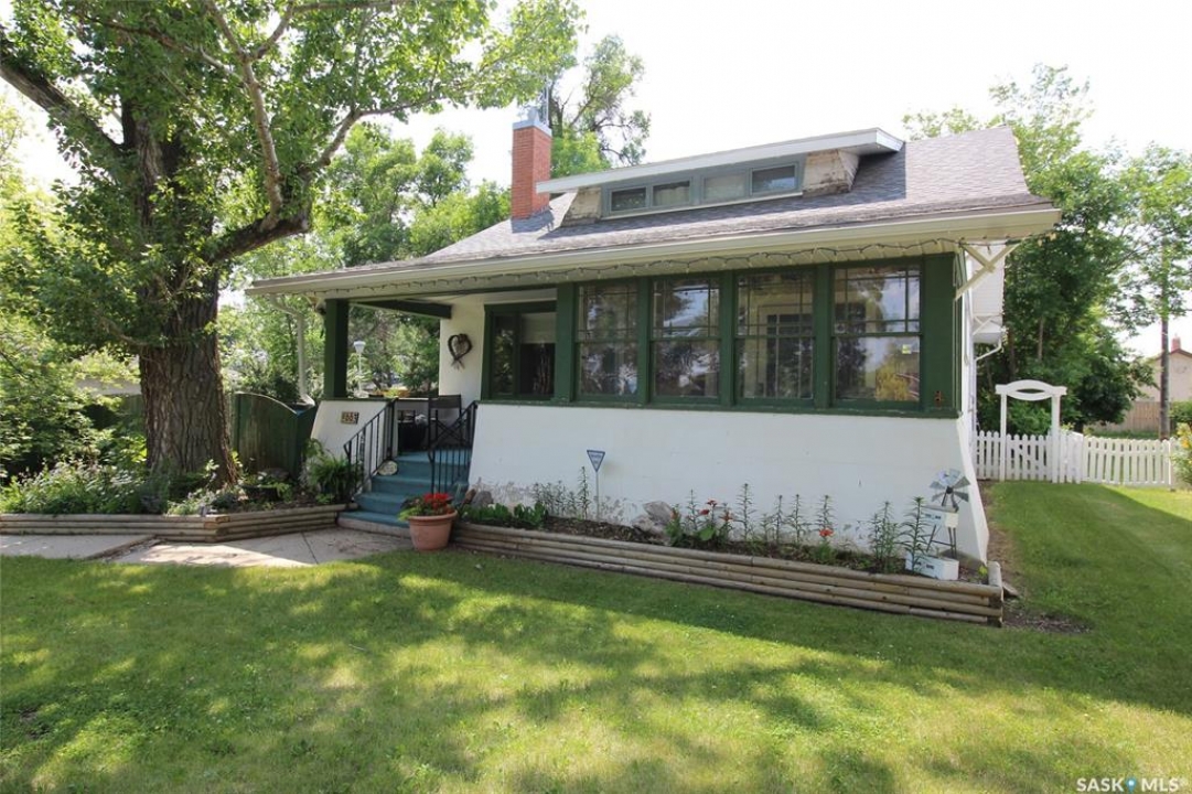 Historic Homes in this condition are so hard to find! On a gorgeous tree lined street in Shaunavon, this classic home sits shoulder to shoulder with its peers. This massive family home has simply become too large for these empty nesters and they have preserved the character and classic features to a tee! The front has the curb appeal you do not find any more with an open veranda with room for two rockers and a tree just right for a tire swing. Through the front door you have a large porch full of sunny windows. The main door into the home is the original unit complete with beveled glass side lights. The front foyer is large and welcoming and open to the living room dominated by the fireplace (updated with a gas insert) The dining room is accessed through French doors and all of these rooms have hardwood floor. The kitchen is at the back of the home with a large bank of cabinets and modern appliances. There are two bedrooms on the main with a full 4pc bath that showcases the original bathtub. The second floor has two other bedrooms and a massive loft space. Updating has happened here with added insulation, updated wiring and drywall. The lower level features a 5th bedroom, full bath, family room and large utility room. An amazing feature of this property is the size of the yard, 94' of frontage provides all kinds of options. The entire side yard is fully fenced, with a firepit seating area, mature grass and trees. There is a raised garden bed directly behind the home and a single garage provides shelter for a vehicle. Additional paved parking space allows for at least 4 vehicles to park off-street. Built with the quality of yesteryear, this home has it all.