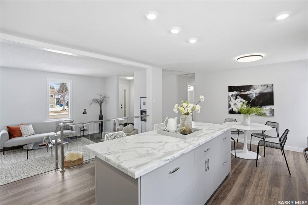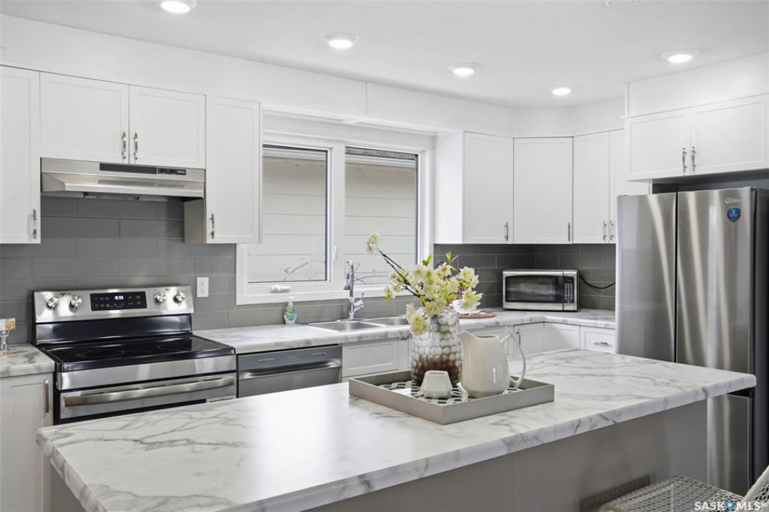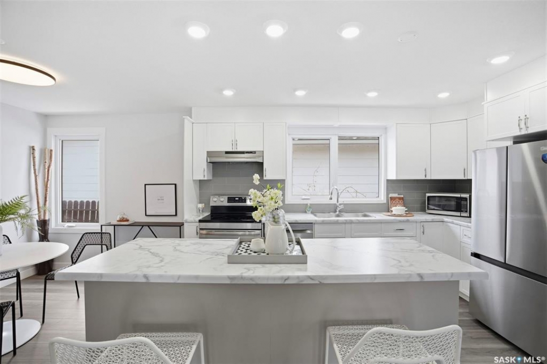 Welcome to 102 Dore Crescent in Lawson Heights, a spacious 1,500 square foot bungalow with a functional layout and a long list of recent updates. The main floor offers an open concept living, dining, and kitchen space that feels connected and easy to live in. The fully renovated kitchen features new cabinetry, new countertops, a stylish backsplash, and new appliances, along with pot lights that brighten the space. It flows naturally into the main living area where a new railing adds a clean, modern touch. Throughout the home you'll find new flooring, fresh paint, updated trim and baseboards, and new light fixtures. All of the bathrooms feature new vanities, and the ensuite has been upgraded with new tile in the shower. The main floor is completed with three bedrooms and 2.5 bathrooms, providing a layout that works well for families. The basement adds even more versatility, featuring a large family room with a wet bar, an additional bedroom, and a full bathroom. Four separate flex spaces offer endless options for home offices, playrooms, workout areas, or the potential for additional bedrooms. A separate entrance to the basement creates added flexibility depending on your needs. Additional updates include a new HRV system, along with window wells added to the basement windows and new eavestroughs completed approximately two years ago. Outside, the property includes a single attached garage and a large driveway with plenty of additional parking. Located within walking distance to Lawson Heights School, St. George School, and Marion Graham Collegiate, and just steps from the river, this home offers an unbeatable location. With close proximity to all amenities and quick access to Circle Drive, getting around the city is simple and convenient. If you're looking for a well-maintained, updated home in a mature neighbourhood with space to grow, 102 Dore Crescent is one to see.