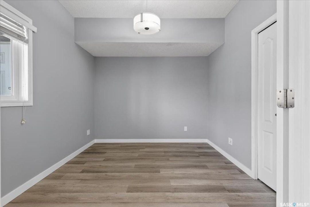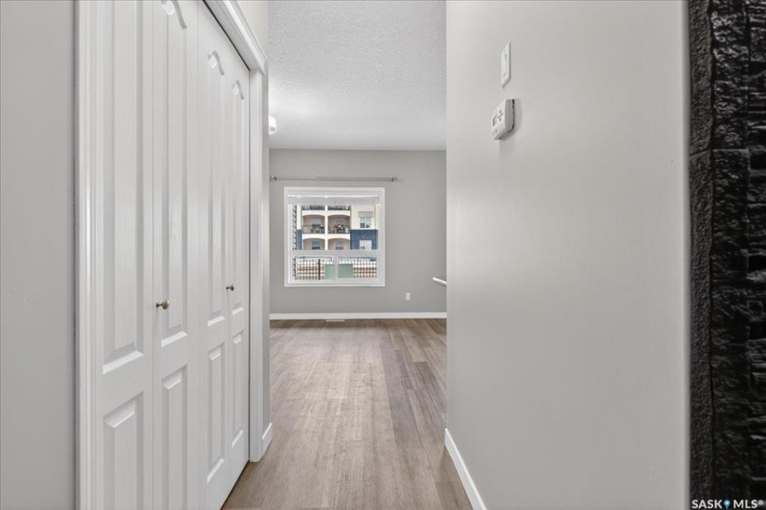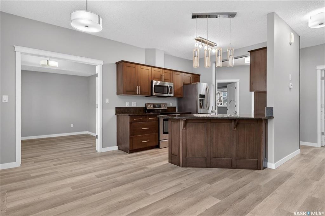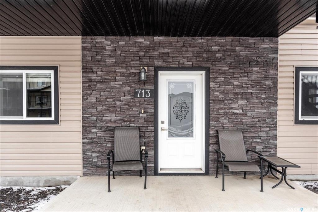 Welcome to this well-maintained, thoughtfully updated main floor condo offering 1,066 sq ft of functional, easy living space. Brand new vinyl flooring and fresh paint throughout, complemented by stylish light fixtures, granite countertops with island, plenty of cabinetry in the kitchen, stainless steel appliances and a reverse osmosis system with separate tap. The open-concept layout connects the kitchen, dining, and living areas, creating a comfortable space for both everyday living and entertaining. A feature wall at the entry adds warmth and character, setting the tone as you step inside. Storage is a standout feature, with generous closet space throughout, additional storage off the patio, and a spacious crawl space ideal for larger or seasonal items. The primary suite can accommodate a king size bed, offers plenty of closet space and a full 4-piece ensuite. A second bedroom is thoughtfully positioned, while the third bedroom or den—accessed through French doors—provides flexibility for a home office, guest space, or additional bedroom. A second full bathroom adds everyday convenience. Step outside to a south-facing patio, perfect for enjoying natural light throughout the day. Additional street parking is conveniently located just behind, with direct access to the patio and back entrance to unit — making everyday living, moving, and bringing in groceries simple and efficient. The unit includes one electrified parking stall conveniently situated at the front entrance of the unit. Ideally situated in Regina's east end, you're minutes from amenities, restaurants, shopping and more, with nearby bus routes and close proximity to Henry Braun, St. Theresa, and Judge Bryant schools. A clean, move-in ready condo offering flexibility, comfort, and a layout that truly works. New water heater installed July of 2025.