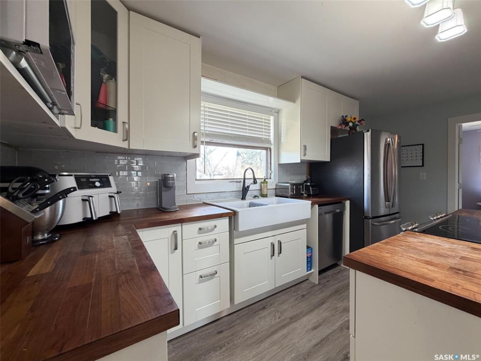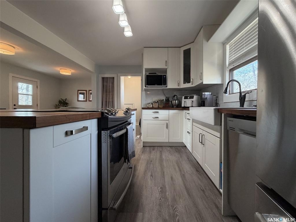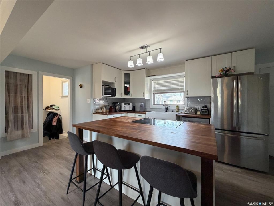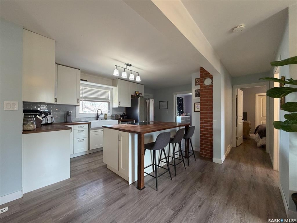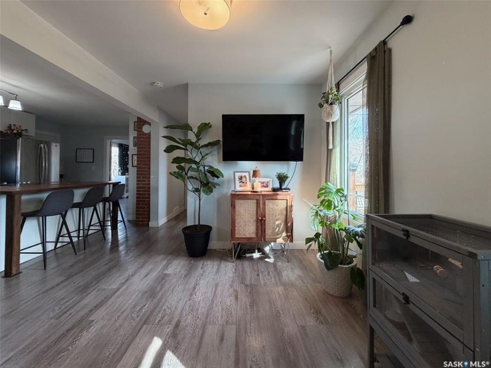 Welcome to 442 Front Street W in Eastend, SK — a thoughtfully updated 825 sq. ft. bungalow offering modern finishes, a functional layout, and great outdoor space. With 2 bedrooms and 1 bathroom, this home is ideal for first-time buyers, downsizers, or anyone looking for a move-in ready option in a scenic small-town setting. The main floor was fully renovated down to the studs around 2016, giving the home a fresh, open feel throughout. Step inside and you're welcomed directly into the open-concept living space, where the kitchen features an eat-up island and flows seamlessly into the living room. From here, you have direct access to the backyard deck, making it easy to enjoy indoor-outdoor living. To the left of the main entry is one of the spacious bedrooms, while just off the living area you'll find the second bedroom and a 5-piece bathroom, offering plenty of room and convenience for everyday living. Both bedrooms are a good size and filled with natural light. The basement has a separate entry at the side of the home and is accessible just off the kitchen living space. It is partially developed, featuring a rec room area, utility room, and two additional dens with windows that could potentially be opened up further to be used as bedrooms (buyer to verify egress). This space offers flexibility for future development, storage, or hobby use. Outside, the fully fenced backyard provides plenty of room to relax, entertain, or garden. Enjoy the large deck, a storage shed, and open space to make your own. Additional updates include central air (2024) and shingles done in approximately 2014. Located in the beautiful town of Eastend, you'll enjoy access to local shops, restaurants, walking trails, and the renowned T.rex Discovery Centre, all set within the stunning Frenchman River Valley. If you're looking for a modernized home with potential and outdoor space to enjoy, 442 Front Street W is ready to welcome you.