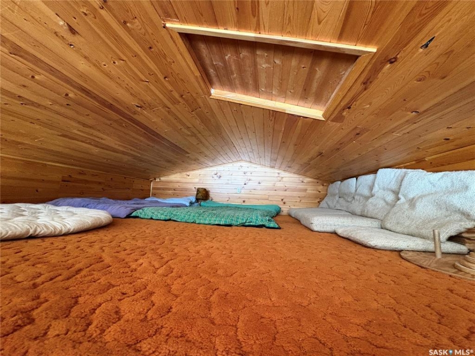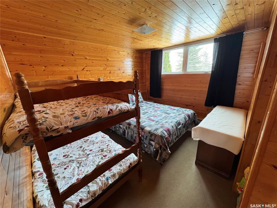 This charming 3-season lakefront cabin offers breathtaking sunset views on the lake. �The property overlooks peaceful open fields on the roadside for �the best of both worlds. The 3-bedroom bungalow features a warm, inviting cabin aesthetic with beautiful pine siding on the ceilings and walls. A spacious, open-concept layout connects the living room, dining area, and kitchen, all enhanced by vaulted ceilings and �lake views. A loft above the middle bedroom provides additional sleeping space or a fun �cozy retreat that's sure to become a favourite hangout. The bathroom includes a tub/shower, sink, toilet, and houses the water heater. Outside, the partially fenced yard is accented with lush vine greenery, creating privacy. The roadside features a pea gravel double driveway, tarp shed, additional storage shed, patio, and extra yard space. On the lakefront side, you'll find a deck nestled among mature trees �and a shed. A large deck over the berm is ideal for entertaining or soaking up the sun �with two stairways leading down to the pier �and water. The cabin also offers a 5-foot crawl space with treated walls providing additional storage. This cabin is an ideal place to relax, recharge, and create lifelong memories. Furniture, boat and trailer, pier on wheels, boat lift, ramp system, and other items are negotiable but not included in the listing price. North Shore Fishing Lake is known for its welcoming community and excellent recreational amenities. Recent upgrades include a ball diamond, beach volleyball court, pickleball and basketball courts, a social area with a stage, and a seasonal canteen. Fishing Lake offers endless outdoor activities, including water sports, excellent fishing, walking trails, cross-country skiing, nearby golf, and community halls. Conveniently located approximately 215 km from Regina and Saskatoon this is an accessible and desirable getaway destination.