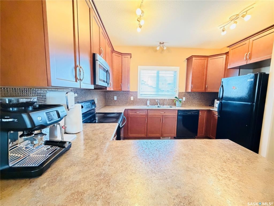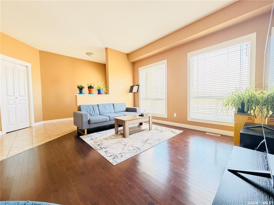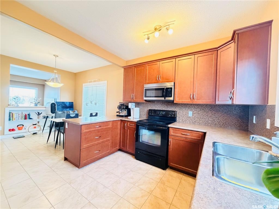 Beautifully maintained home, professionally finished from top to bottom, located in an unbeatable location! This pet-free, smoke-free property is in excellent condition—truly move-in ready. Ideally situated across from Green Meadow Park and just steps to the Arcola Express bus stop, offering quick and convenient access to downtown during peak commute hours. The open-concept main floor welcomes you with a spacious foyer, a bright south-facing living room, and a functional dine-in kitchen featuring maple cabinetry and a ceramic tile backsplash. A convenient 2-piece bathroom completes this level. Quality finishes throughout include ceramic tile and hardwood flooring. From the back landing, step out onto a generous deck overlooking the well-maintained, fully fenced and landscaped yard, complete with underground sprinklers and a double garage. The fully developed basement adds excellent additional living space, featuring a cozy living area, computer nook, large 3-piece bathroom, and ample storage. Upstairs, the primary bedroom offers his-and-hers closets and a private 4-piece ensuite. Two additional bedrooms and another full bathroom complete the upper level. Recent updates include grading (2025), a fully insulated garage (2025), and a brand new water softener (2025). A fantastic home in a prime location—ready for its next owner!