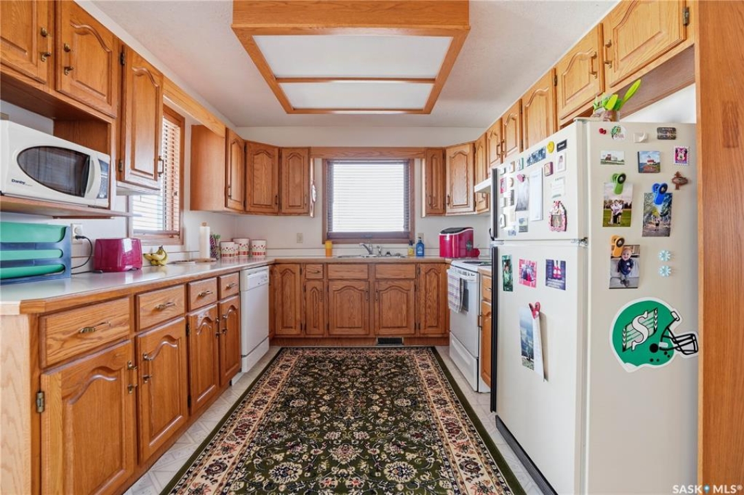 Are you looking for one of the nicest homes in Central Butte? This 4 bed / 3 bath home boasts over 1,600 sq.ft. of living space with a double attached garage! Situated on a large corner lot with almost no neighbors. Excellent curb appeal as you arrive. Heading inside you are greeted by a spacious foyer that opens up into a large living room with lots of natural light and a wood fireplace. Heading back we find a large U-shaped kitchen with lots of oak cabinets as well as a formal dining space. The patio doors off the back of the home lead to your covered deck - the perfect place for your morning coffee. Heading down the hall we first find your main floor laundry with access to your double attached garage (24'x24'). Down the hall we find a 4 piece bathroom and 2 good sized bedrooms. We also find the primary suite - a spacious bedroom with a large walk-in closet and a 3 piece ensuite! Heading downstairs we find a huge family room - perfect for the kids to play in! As well as a fourth bedroom, a den and another 4 piece bathroom. Outside we have a large yard with mature trees. Pride of ownership shows throughout. Quick possession is available! Reach out today to book your showing!