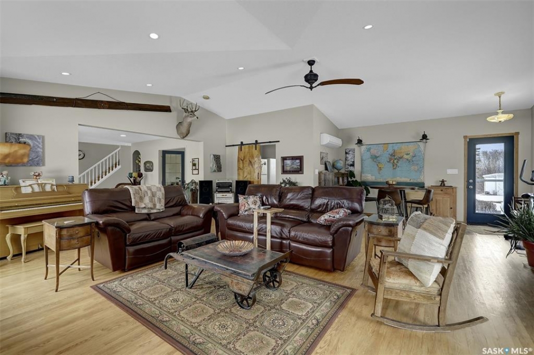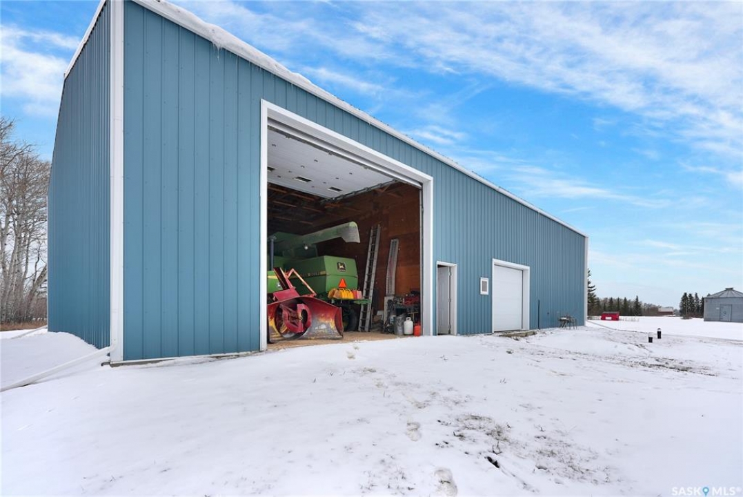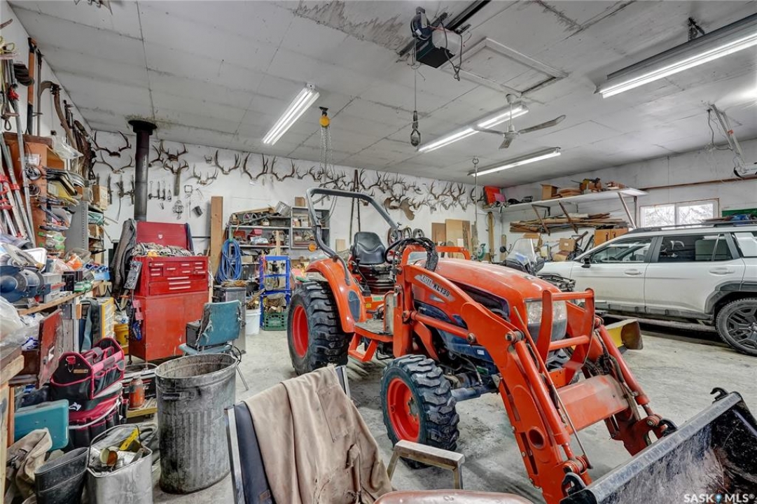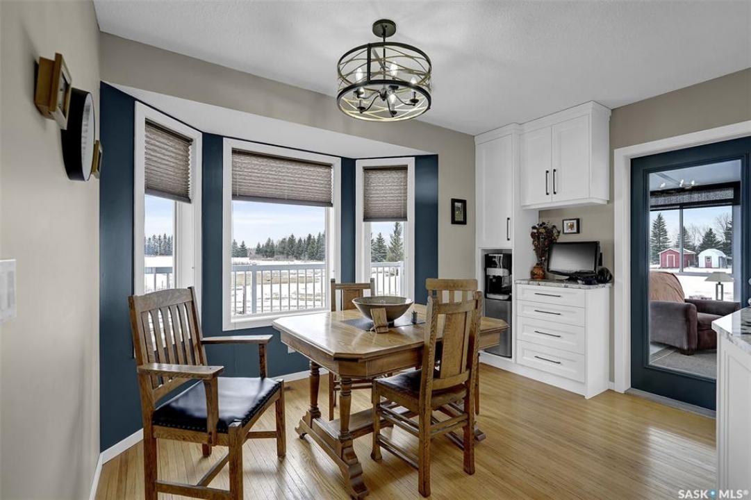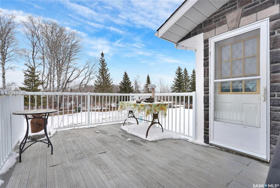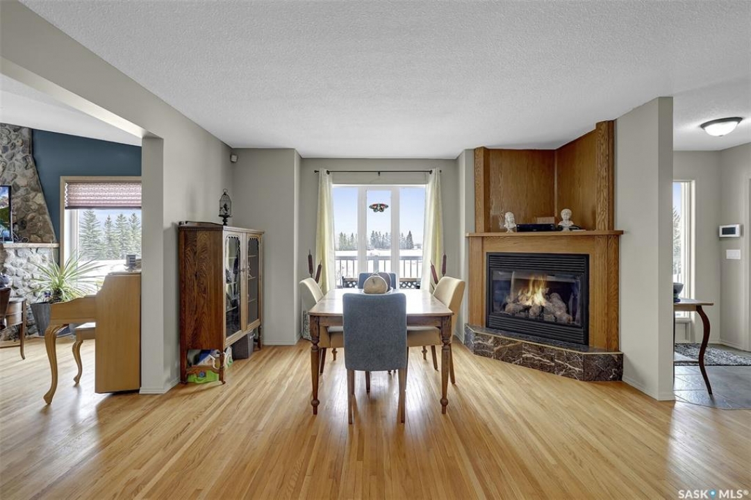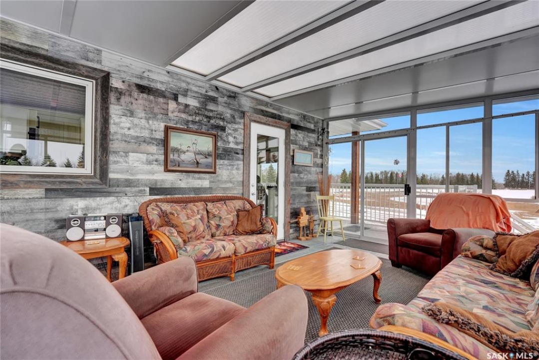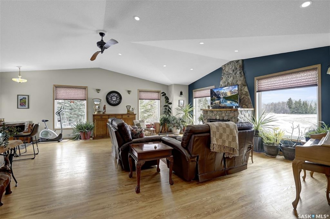 Dreaming of quiet country living just minutes from the city? This stunning Varsity home offers the perfect balance of privacy and convenience—located only 15 minutes north of Regina, 10.4 km from Pilot Butte, 22 km to Balgonie, and 18 km to East Regina amenities including Costco. Set on a beautifully treed acreage, this impressive 2,300 sq ft south-facing home is bright, spacious, and designed for comfortable living. The property features a 32' x 36' shop and a split 40' x 72' outbuilding (formerly a honey processing facility) complete with a 2-piece bath—ideal for hobbies, storage, or business use. Additional highlights include multiple sheds, raised garden beds, a large garden area, and a family-friendly play centre. Inside, the main floor showcases a gorgeous updated kitchen by J & C Cabinets, a dining nook with access to a 3-season sunroom built on piles, a formal dining room with gas fireplace, and a large living room with vaulted ceilings and a second gas fireplace. A pantry/storage area with stove, office/den, 2-piece bath, and laundry/mudroom complete the main level. (Addition is heated and cooled by heatpump.) Upstairs offers 3 generous bedrooms, including a primary suite with 3-piece ensuite and walk-in closet, plus a full 4-piece bath. The developed basement adds even more space with a rec room, 3piece bath and additional bedroom.(Window may not meet egress) Enjoy outdoor living with front and side decks and a hot tub (plug-and-play for six). Enjoy walking tails through trees surrounding the yard. Seller's grandchildren refer to them as "a walk through the forest". This is a property you'll never want to leave—ask your agent for the full list of upgrades and features.