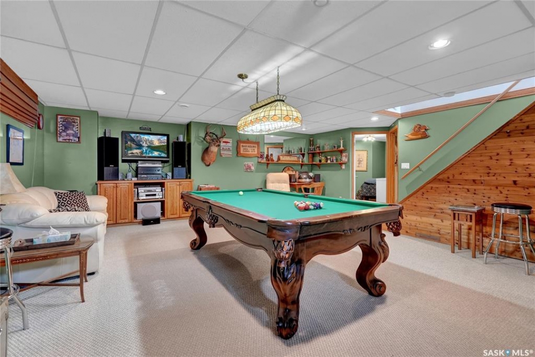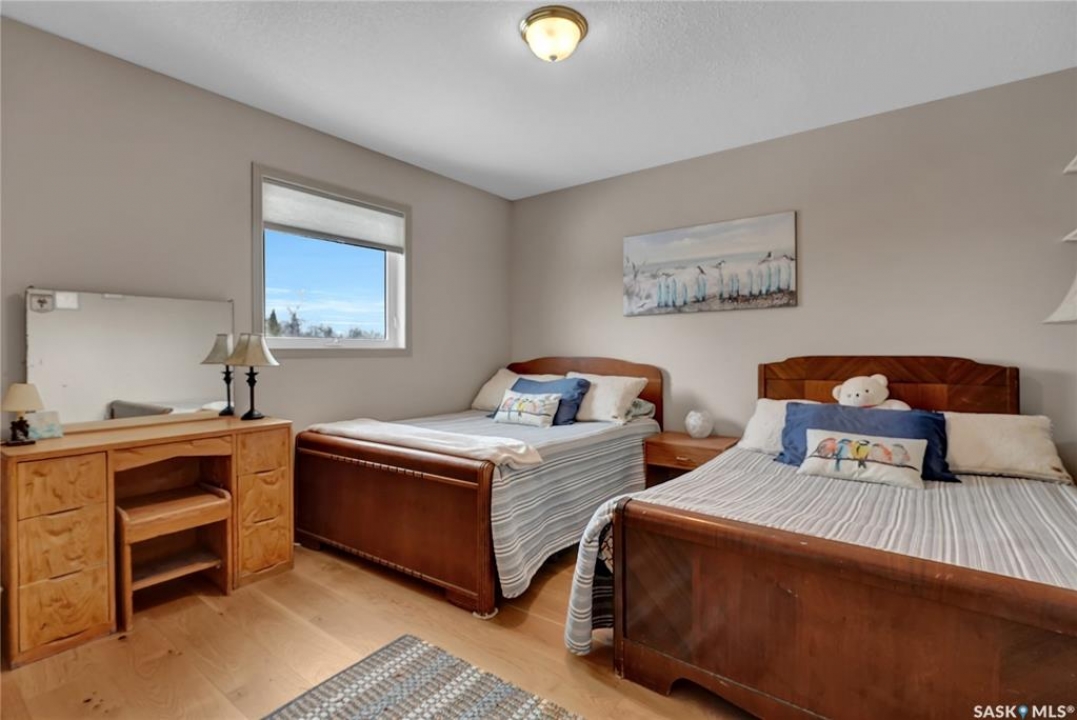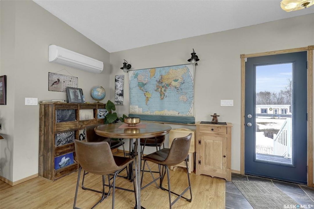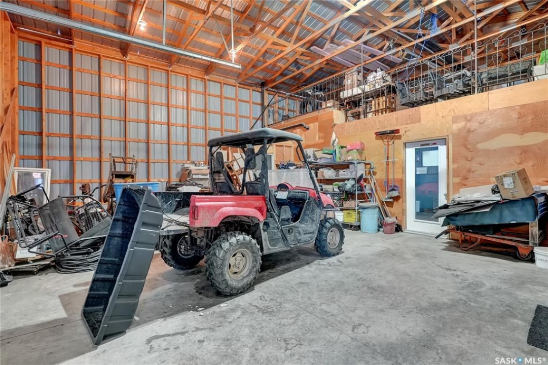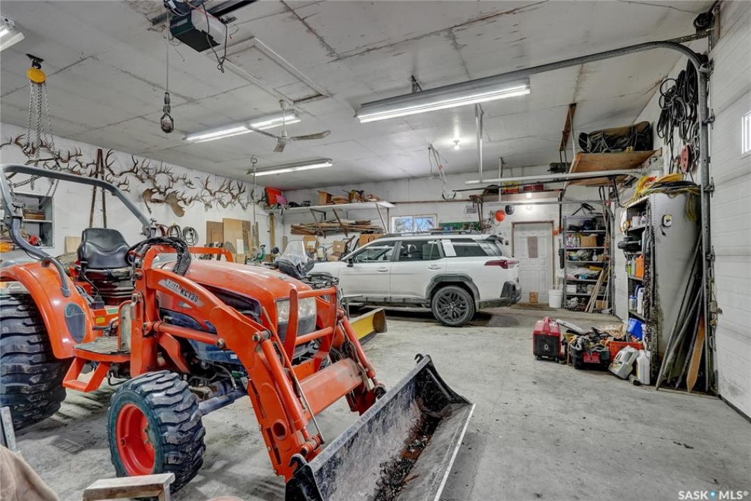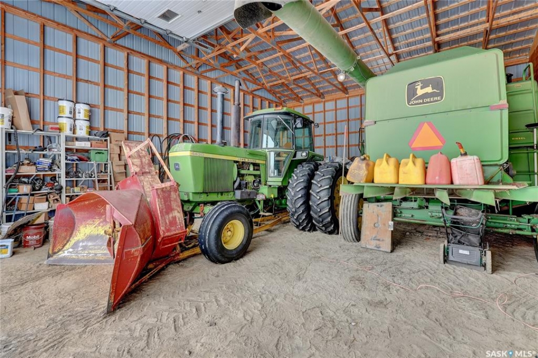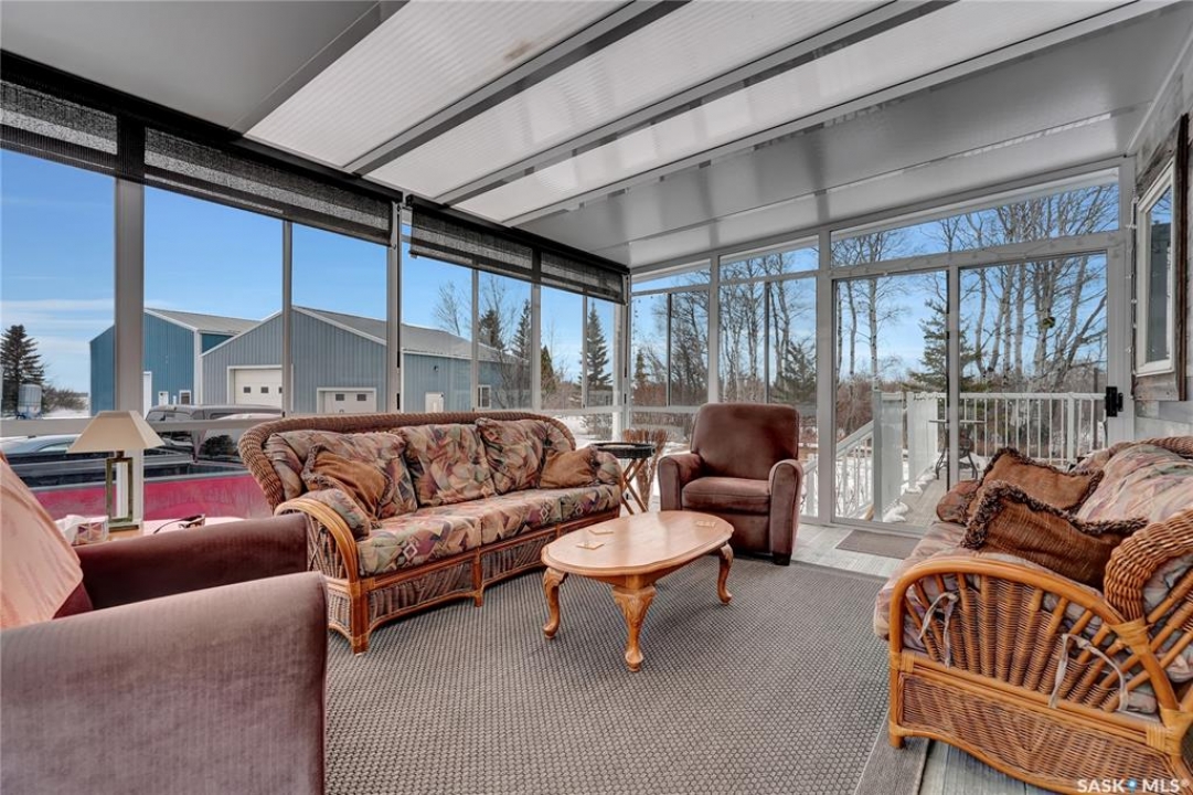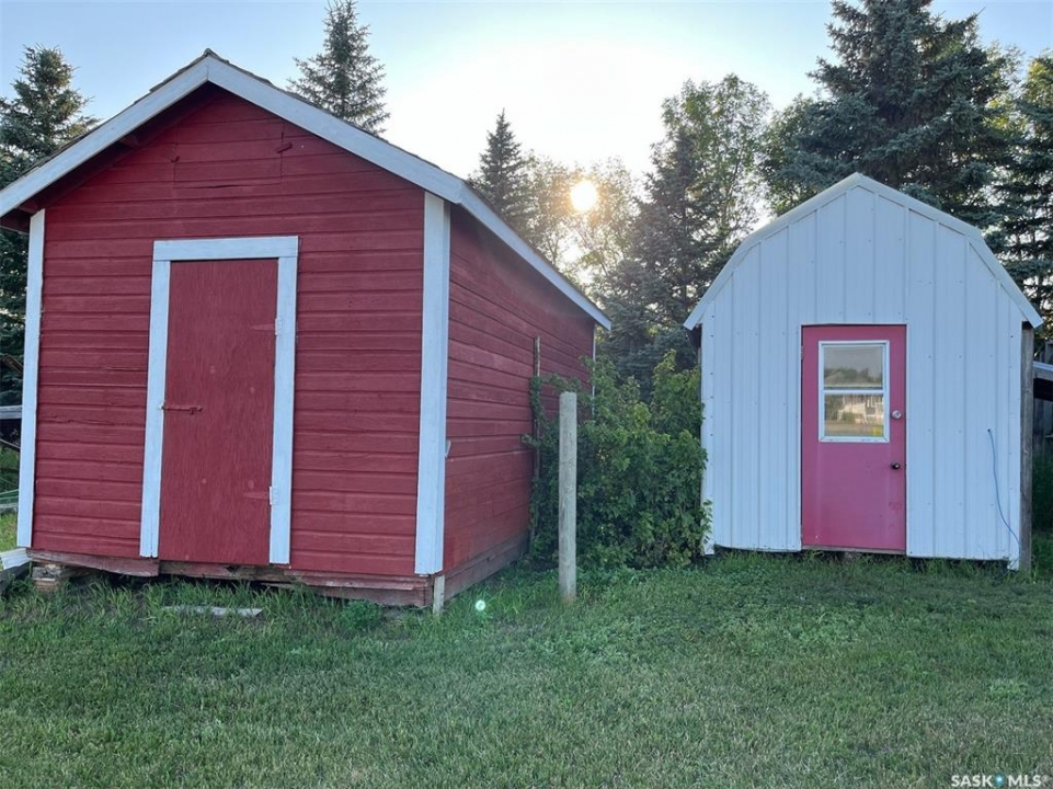 Dreaming of quiet country living just minutes from the city? This stunning Varsity home offers the perfect balance of privacy and convenience—located only 15 minutes north of Regina, 10.4 km from Pilot Butte, 22 km to Balgonie, and 18 km to East Regina amenities including Costco. Set on a beautifully treed acreage, this impressive 2,300 sq ft south-facing home is bright, spacious, and designed for comfortable living. The property features a 32' x 36' shop and a split 40' x 72' outbuilding (formerly a honey processing facility) complete with a 2-piece bath—ideal for hobbies, storage, or business use. Additional highlights include multiple sheds, raised garden beds, a large garden area, and a family-friendly play centre. Inside, the main floor showcases a gorgeous updated kitchen by J & C Cabinets, a dining nook with access to a 3-season sunroom built on piles, a formal dining room with gas fireplace, and a large living room with vaulted ceilings and a second gas fireplace. A pantry/storage area with stove, office/den, 2-piece bath, and laundry/mudroom complete the main level. (Addition is heated and cooled by heatpump.) Upstairs offers 3 generous bedrooms, including a primary suite with 3-piece ensuite and walk-in closet, plus a full 4-piece bath. The developed basement adds even more space with a rec room, 3piece bath and additional bedroom.(Window may not meet egress) Enjoy outdoor living with front and side decks and a hot tub (plug-and-play for six). Enjoy walking tails through trees surrounding the yard. Seller's grandchildren refer to them as "a walk through the forest". This is a property you'll never want to leave—ask your agent for the full list of upgrades and features.