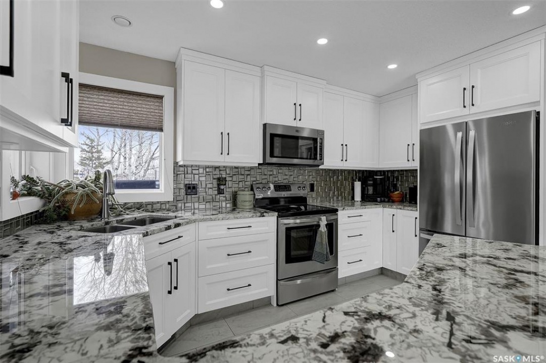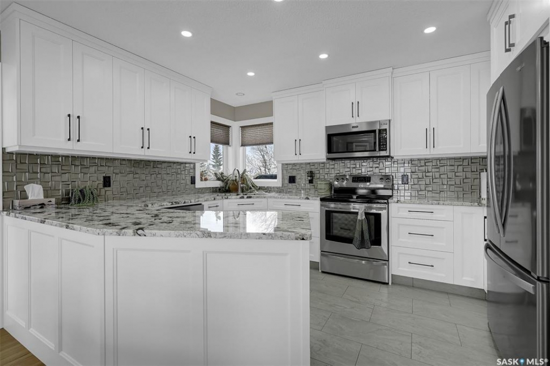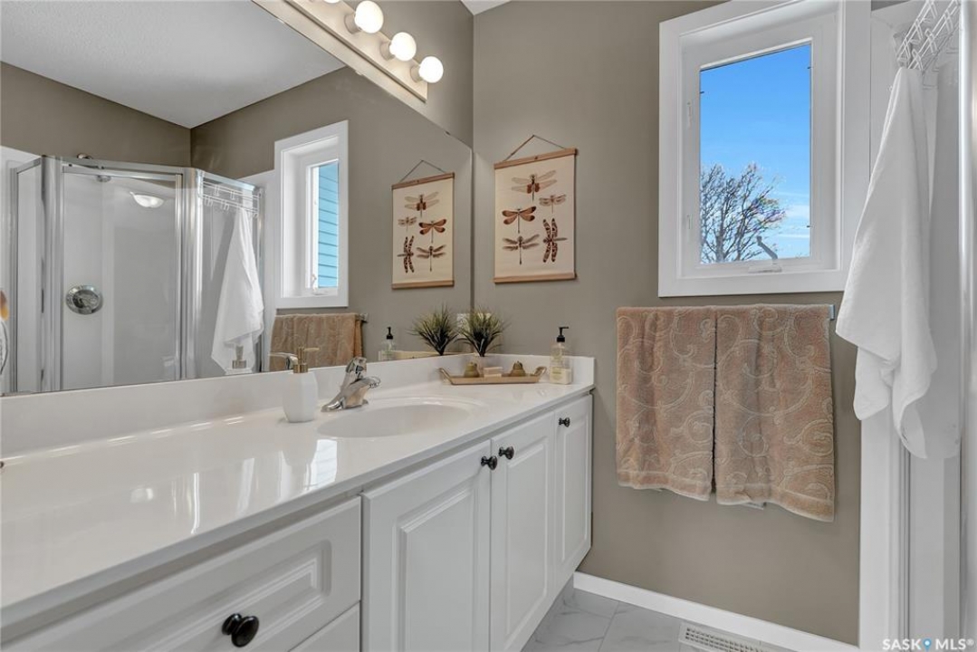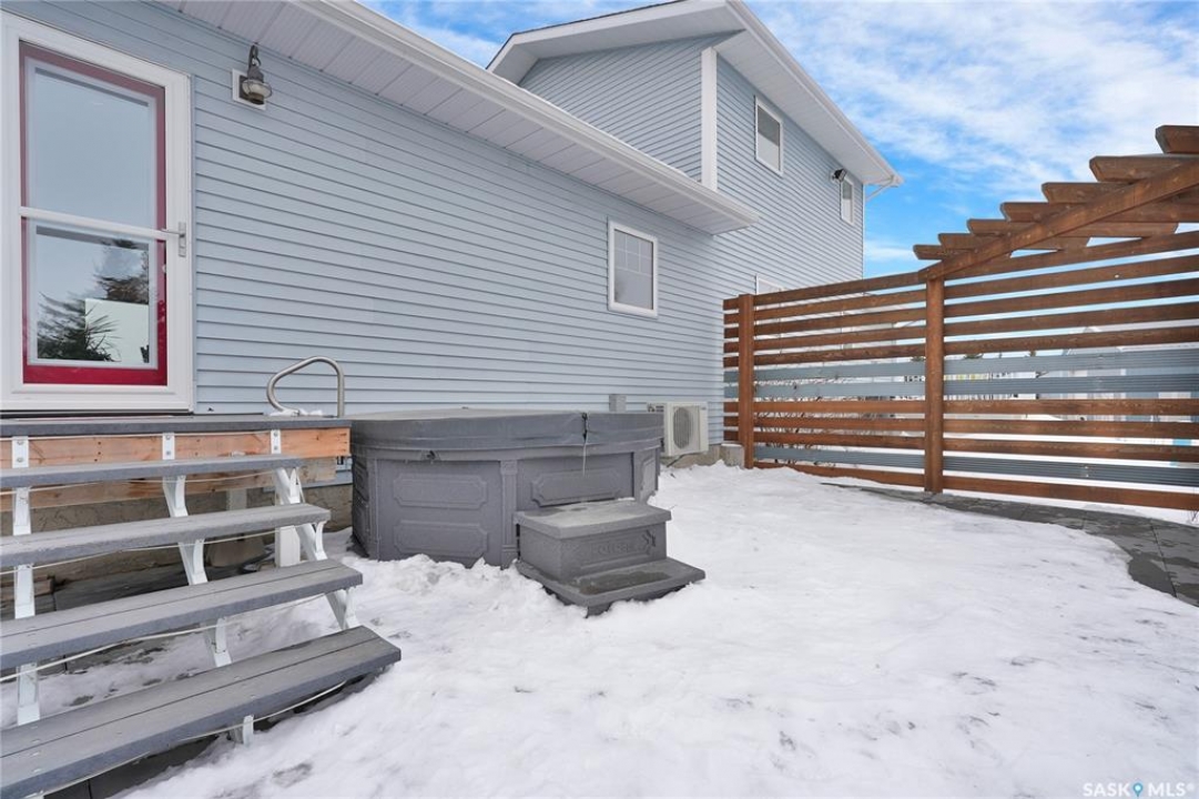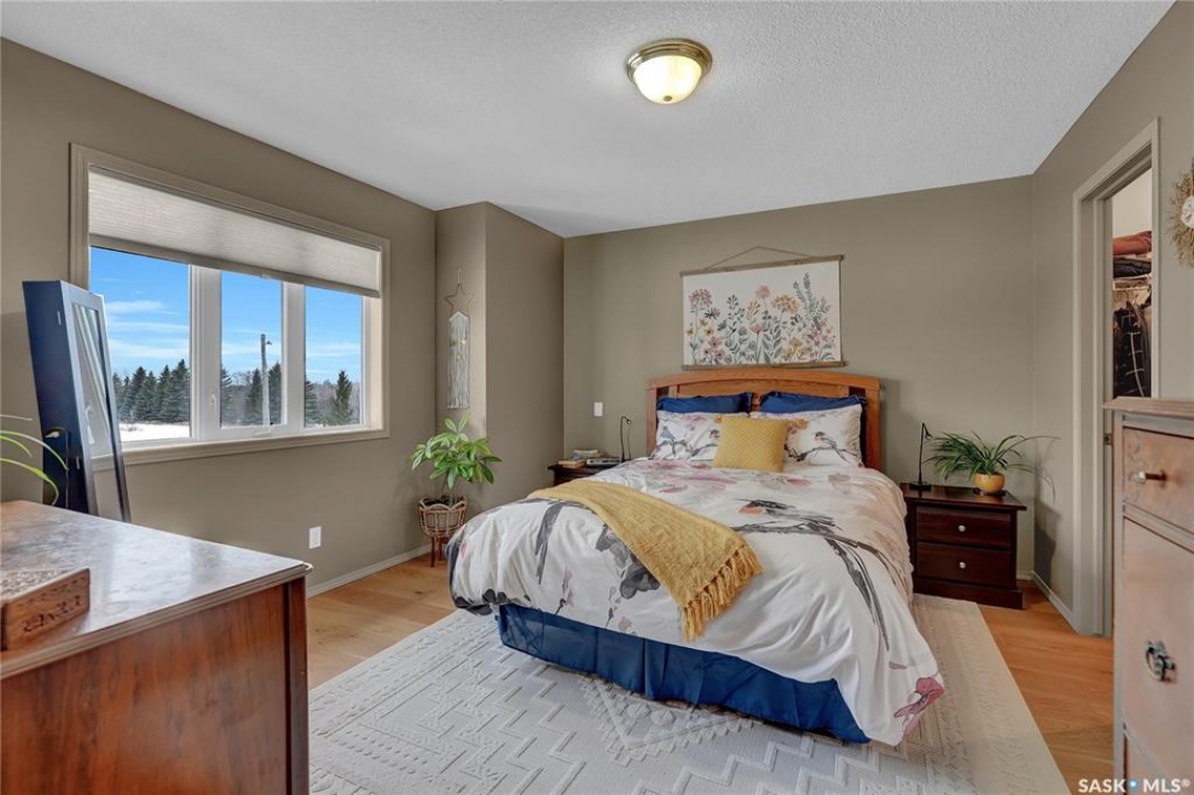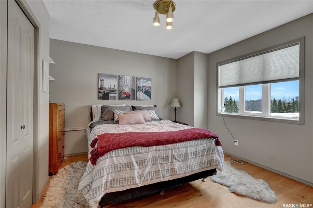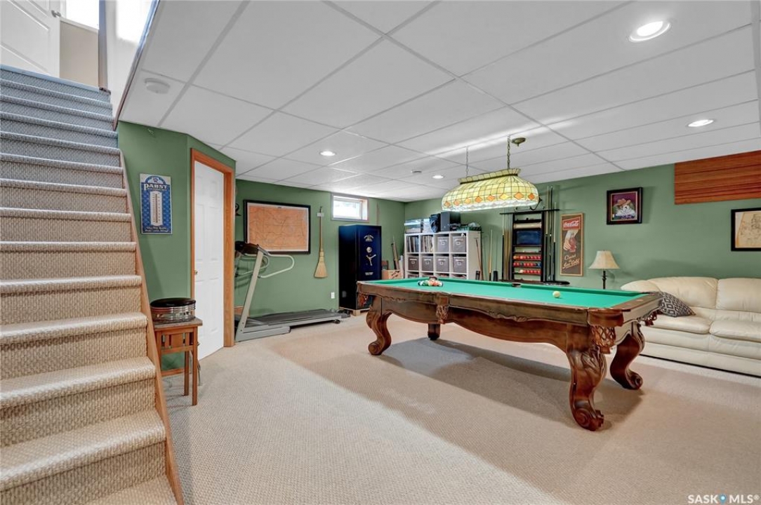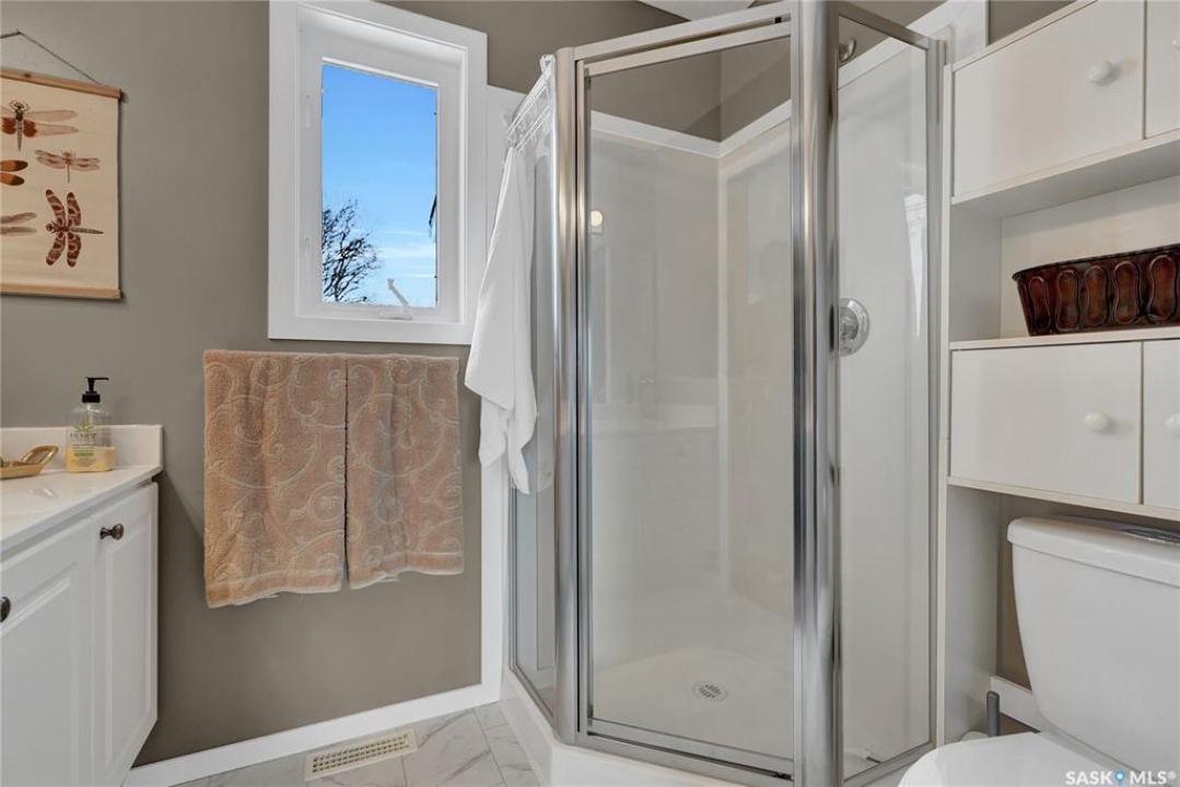 Dreaming of quiet country living just minutes from the city? This stunning Varsity home offers the perfect balance of privacy and convenience—located only 15 minutes north of Regina, 10.4 km from Pilot Butte, 22 km to Balgonie, and 18 km to East Regina amenities including Costco. Set on a beautifully treed acreage, this impressive 2,300 sq ft south-facing home is bright, spacious, and designed for comfortable living. The property features a 32' x 36' shop and a split 40' x 72' outbuilding (formerly a honey processing facility) complete with a 2-piece bath—ideal for hobbies, storage, or business use. Additional highlights include multiple sheds, raised garden beds, a large garden area, and a family-friendly play centre. Inside, the main floor showcases a gorgeous updated kitchen by J & C Cabinets, a dining nook with access to a 3-season sunroom built on piles, a formal dining room with gas fireplace, and a large living room with vaulted ceilings and a second gas fireplace. A pantry/storage area with stove, office/den, 2-piece bath, and laundry/mudroom complete the main level. (Addition is heated and cooled by heatpump.) Upstairs offers 3 generous bedrooms, including a primary suite with 3-piece ensuite and walk-in closet, plus a full 4-piece bath. The developed basement adds even more space with a rec room, 3piece bath and additional bedroom.(Window may not meet egress) Enjoy outdoor living with front and side decks and a hot tub (plug-and-play for six). Enjoy walking tails through trees surrounding the yard. Seller's grandchildren refer to them as "a walk through the forest". This is a property you'll never want to leave—ask your agent for the full list of upgrades and features.