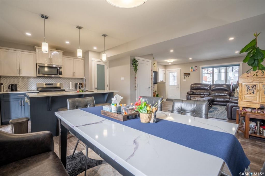 This move-in ready 3-bedroom, 3-bathroom home in the desirable community of The Towns offers the perfect blend of modern style and convenience, all with the benefit of being a non-condo property with no monthly fees. Built by Rohit, the main floor features an inviting open-concept layout with premium luxury vinyl plank flooring, quartz countertops throughout, and sleek two-tone soft-close cabinetry in a kitchen complete with a large pantry. Upstairs, you'll find a functional layout featuring a convenient laundry area, a versatile flex room—perfect for a home office or play area—and a spacious primary suite boasting walk-in closets and a private ensuite. Ideally situated for families and commuters alike, this home is just a 2-minute drive from local schools and half a block from a park and dog run, while also providing quick access to Costco and the East end's best shopping and dining. One of the standout features of this property is the upgraded, extended front and rear decks, offering ample outdoor space for entertaining or relaxing. The home is rounded out by a concrete parking pad ready for a future garage and a basement with a large window and roughed-in plumbing, ready for your finishing touches. With quick possession available, you can settle in immediately—contact your REALTOR � today to book your private showing!