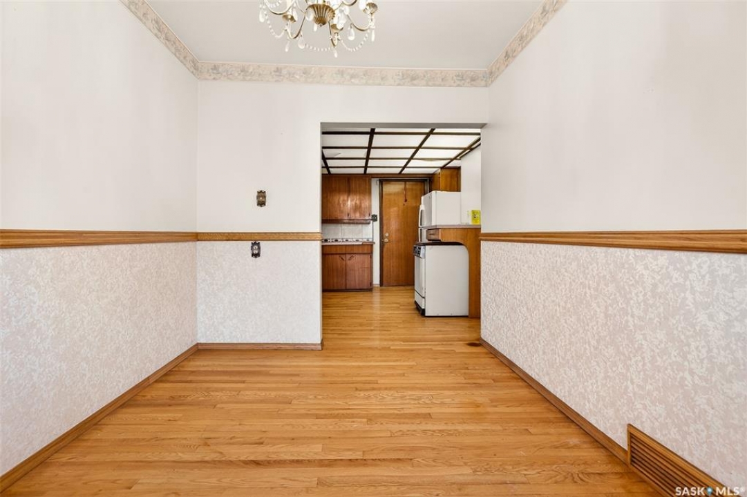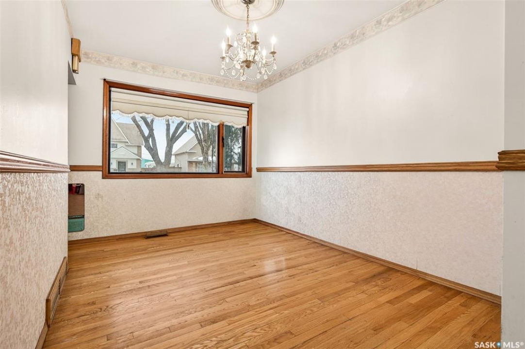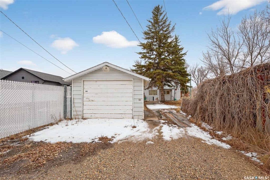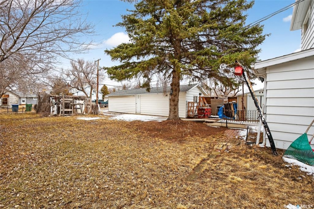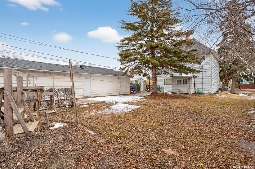 PURE POTENTIAL!!! Welcome to this well-located 1,175 sq. ft. two-storey home situated on the east side of Moose Jaw, just minutes from downtown amenities and nearby schools—making it an ideal option for families, first-time buyers or a home to add to a revenue portfolio . The main level offers a bright and spacious layout, featuring a large living room perfect for relaxing or entertaining, along with a generous dining area that flows seamlessly into the kitchen. The kitchen is functional and well-appointed, complete with a portable dishwasher for added convenience. Upstairs, you'll find four comfortable bedrooms, providing plenty of space for a growing family, home office, or guest accommodations. A three-piece bathroom with a claw tub and handheld shower completes the second level (one bedroom does not have a closet). Outside, the partially fenced yard offers room to enjoy outdoor living, along with a 13 x 38 detached garage—ideal for parking, storage, or workshop space. This home presents a fantastic opportunity to own a solid property in a convenient location with plenty of potential to make it your own.