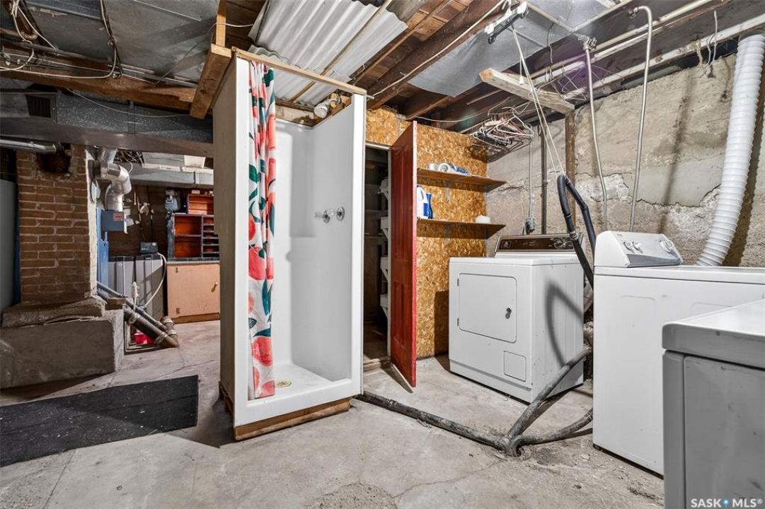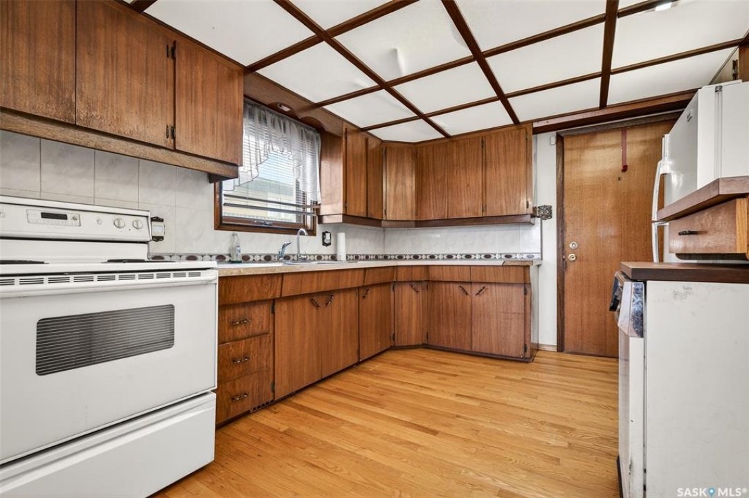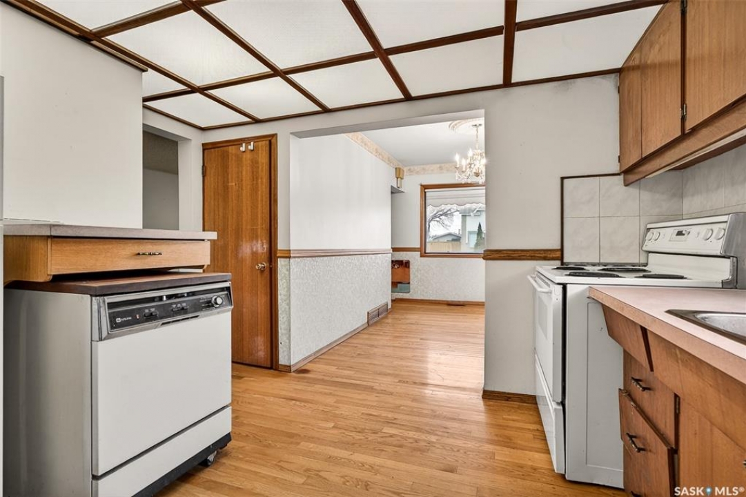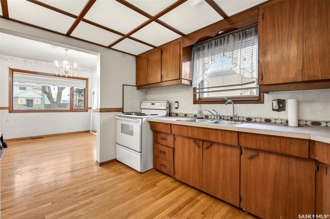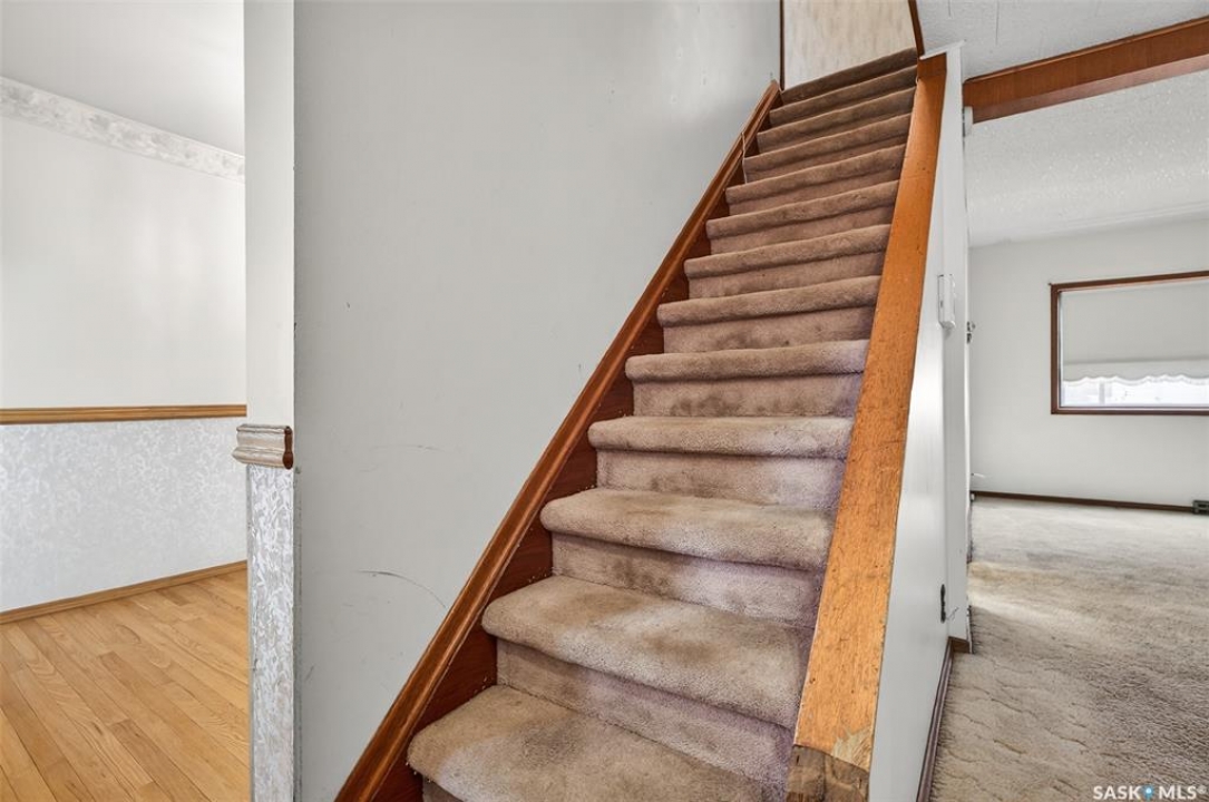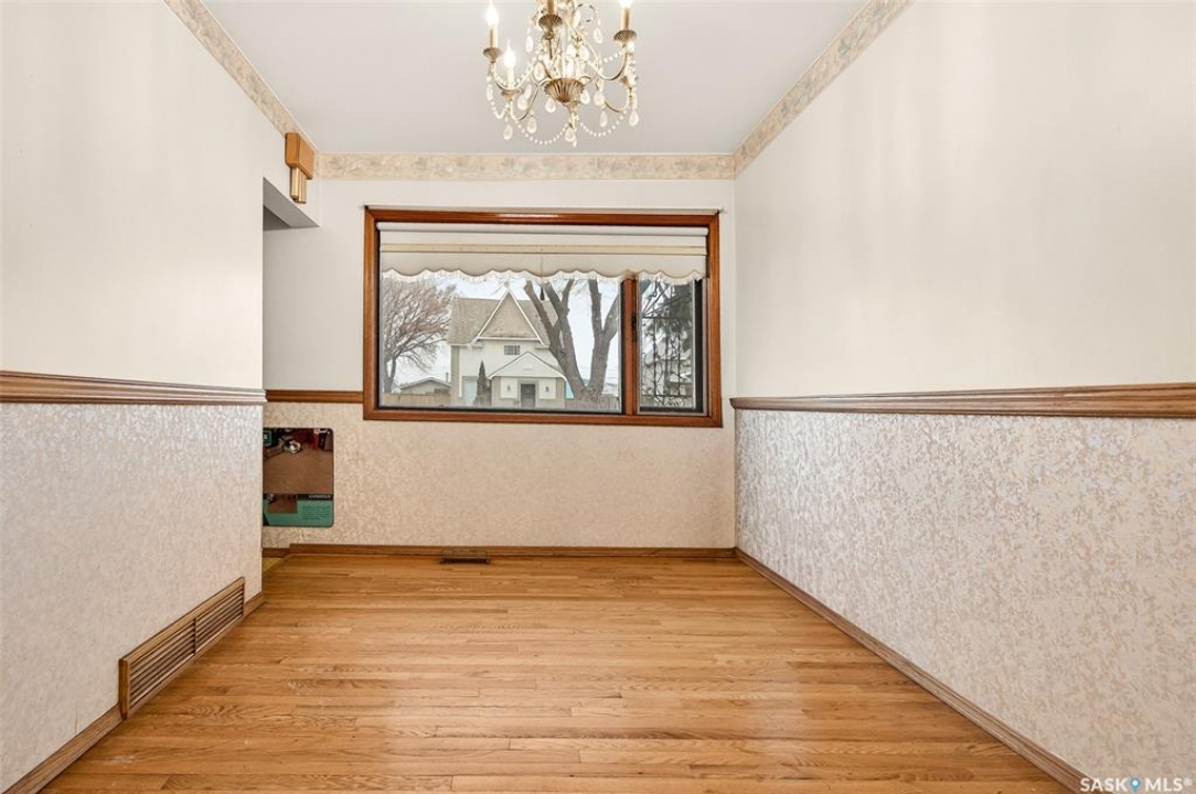 PURE POTENTIAL!!! Welcome to this well-located 1,175 sq. ft. two-storey home situated on the east side of Moose Jaw, just minutes from downtown amenities and nearby schools—making it an ideal option for families, first-time buyers or a home to add to a revenue portfolio . The main level offers a bright and spacious layout, featuring a large living room perfect for relaxing or entertaining, along with a generous dining area that flows seamlessly into the kitchen. The kitchen is functional and well-appointed, complete with a portable dishwasher for added convenience. Upstairs, you'll find four comfortable bedrooms, providing plenty of space for a growing family, home office, or guest accommodations. A three-piece bathroom with a claw tub and handheld shower completes the second level (one bedroom does not have a closet). Outside, the partially fenced yard offers room to enjoy outdoor living, along with a 13 x 38 detached garage—ideal for parking, storage, or workshop space. This home presents a fantastic opportunity to own a solid property in a convenient location with plenty of potential to make it your own.