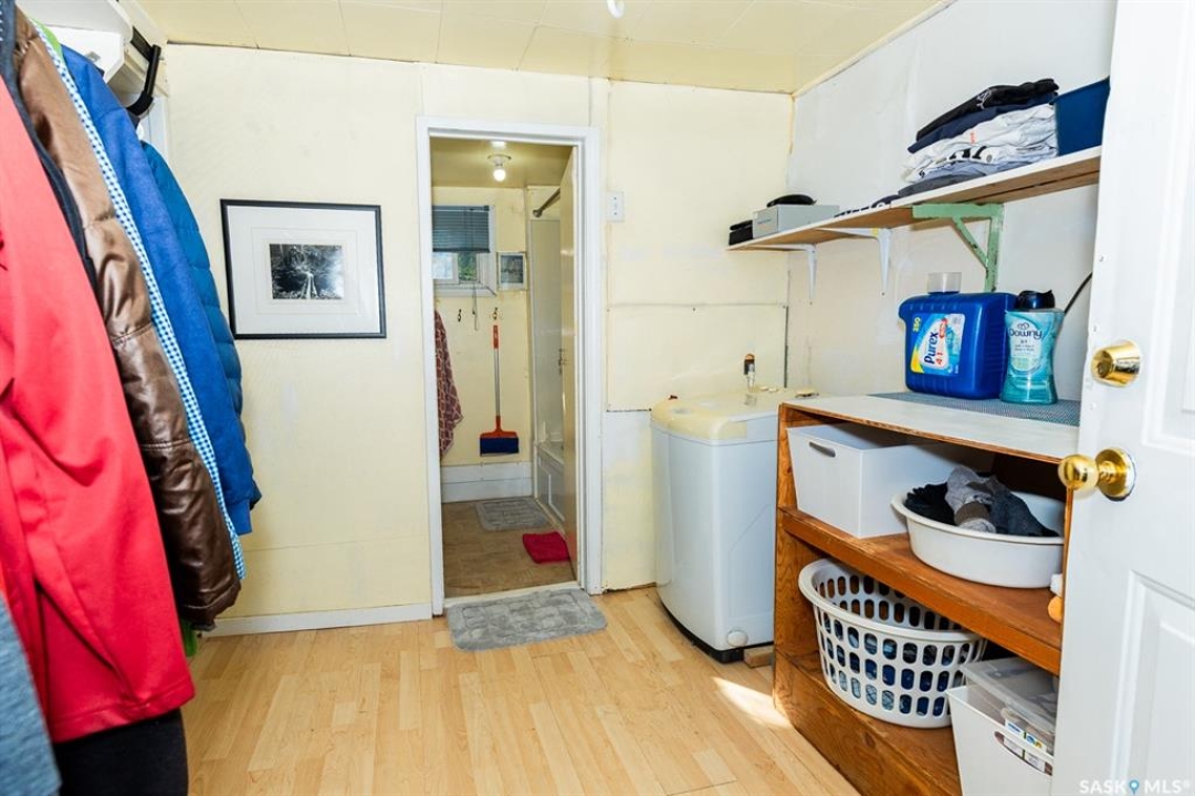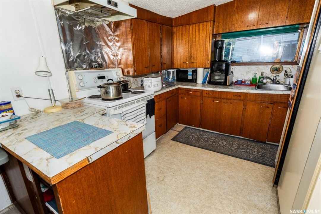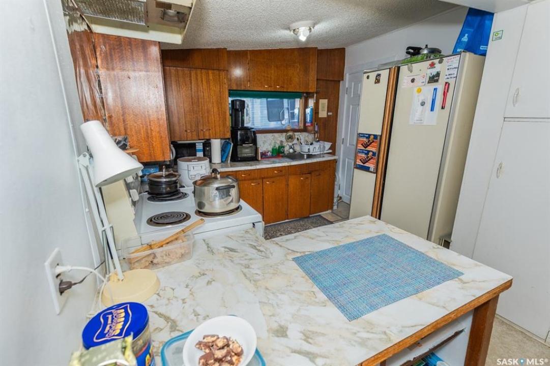 Tiny house.. approx. 560 sq. ft. Large lot: 112.5 x 120. with a 10 x 20 outbuilding. The owner is selling as is, some furniture, dishes, if the buyer wants these items, they will be included. 2 beds, 2 baths. 560 sq. ft. bungalow. Basement has a separate entrance, owner has rented this out in the past. Ceiling height is lower than 8 ft. in this home, does not show in the photos. Potentially there is a pavement levy of $20,000+. Buyer should consult with the Town of Kerrobert admin. regarding the pavement levy and how it may affect this property If you are unable to view this property in person, you will require a different realtor than the listing realtor to offer on this property.