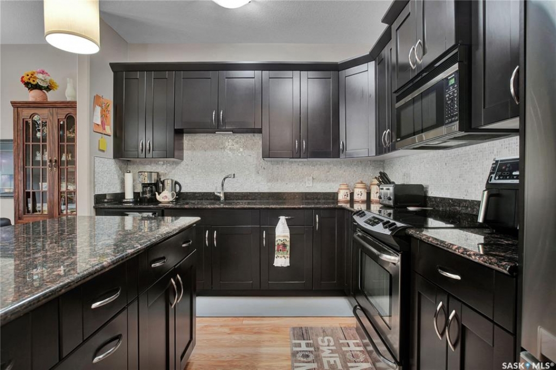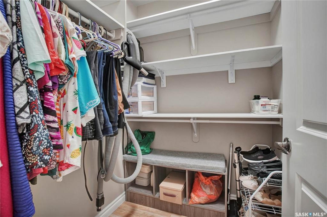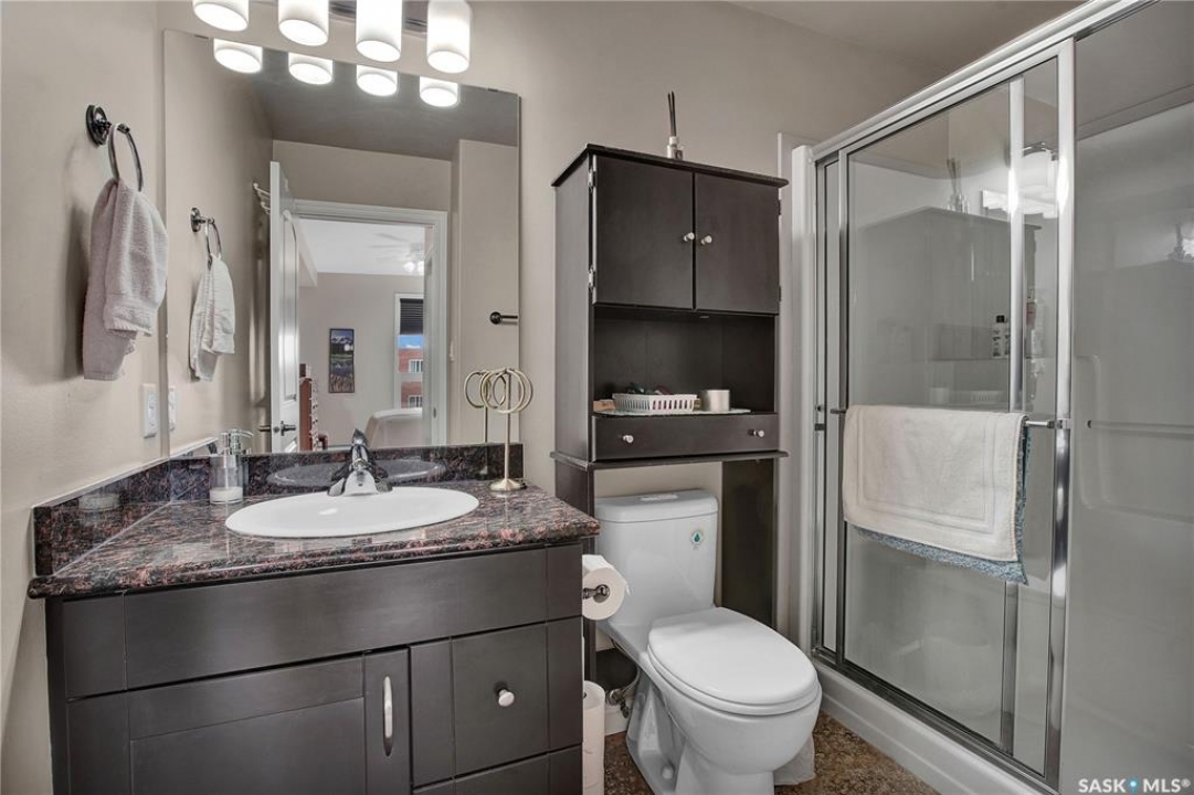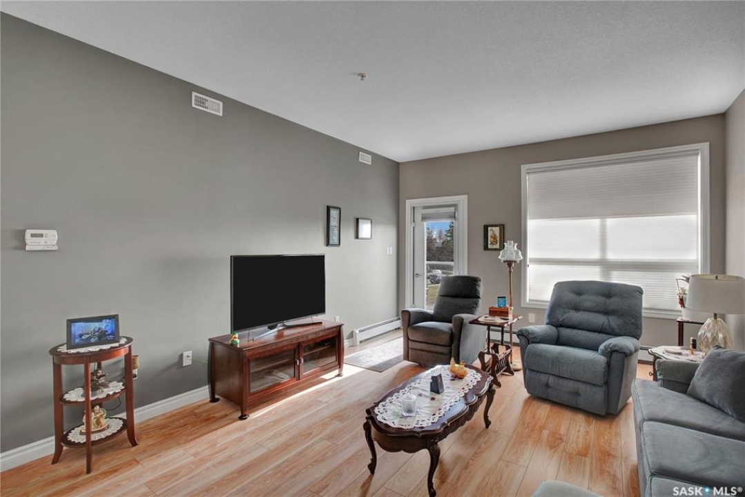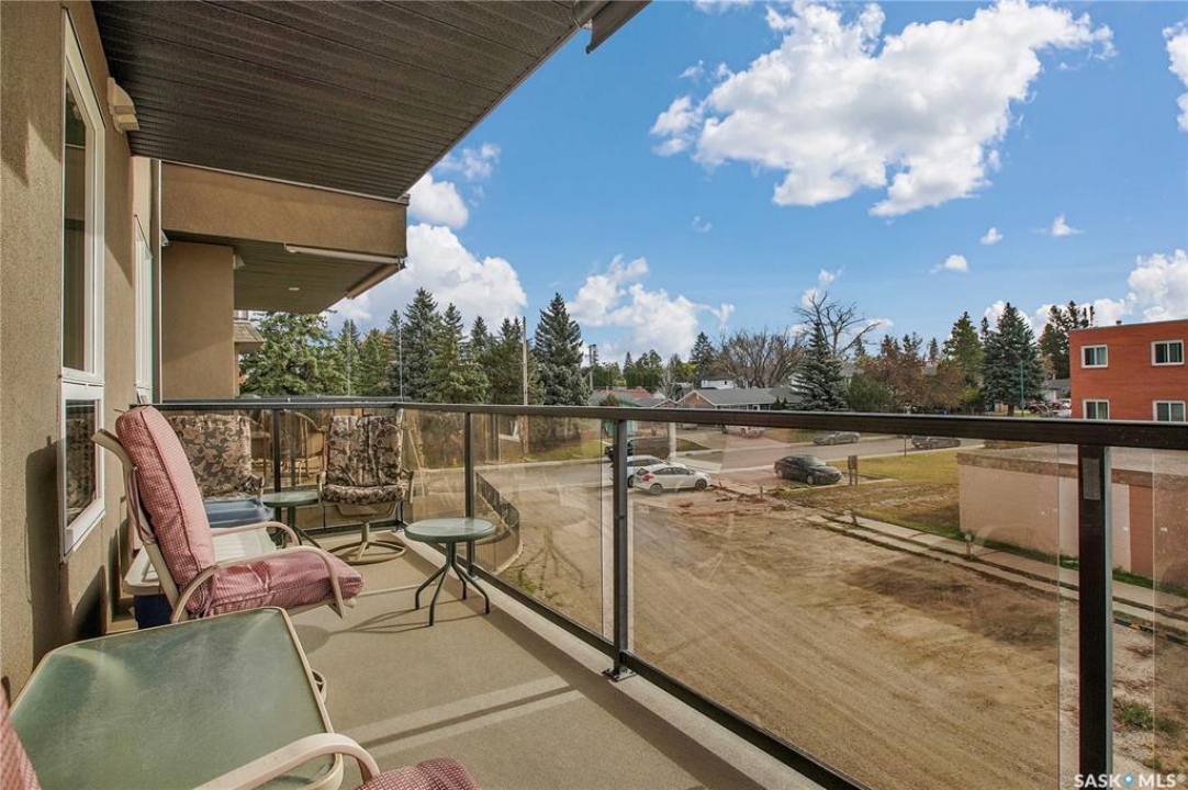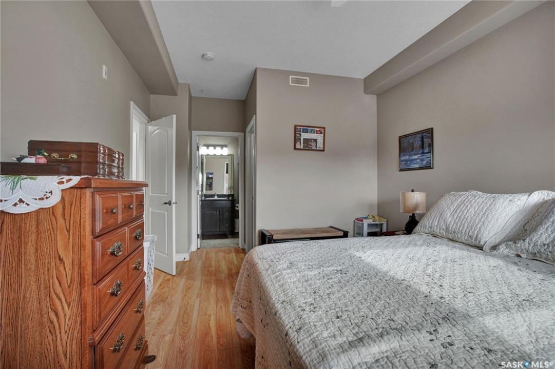 Pristine condo at Silverleaf Suites on Main Street in the popular Greystone Heights. The unit boasts 9-foot ceilings, an open layout, a full laundry room, with a master ensuite bathroom and walk-in closet. Luxurious features include granite countertops, in-suite laundry, in-suite central vacuum, in-suite central air, stainless steel appliances, blackout shades, and a remote-controlled deck roller shade. In recent upgrades over the years include new flooring throughout, kitchen backsplash, and a Centennial non-clogging toilet. The reasonable condo fees are $486 which covers common area maintenance, external building maintenance, heat, reserve fund, snow removal, water, and access to the amenities room. The condo also comes with one parking spot and one storage unit. Unbeatable location with steps to an elementary school, Superstore, the University of Saskatchewan, and every amenity needed in the commercial district on 8th Street.