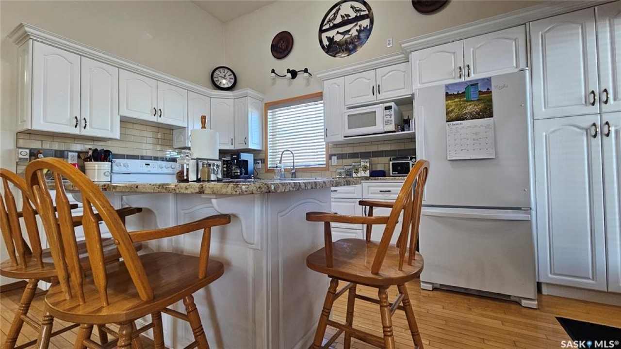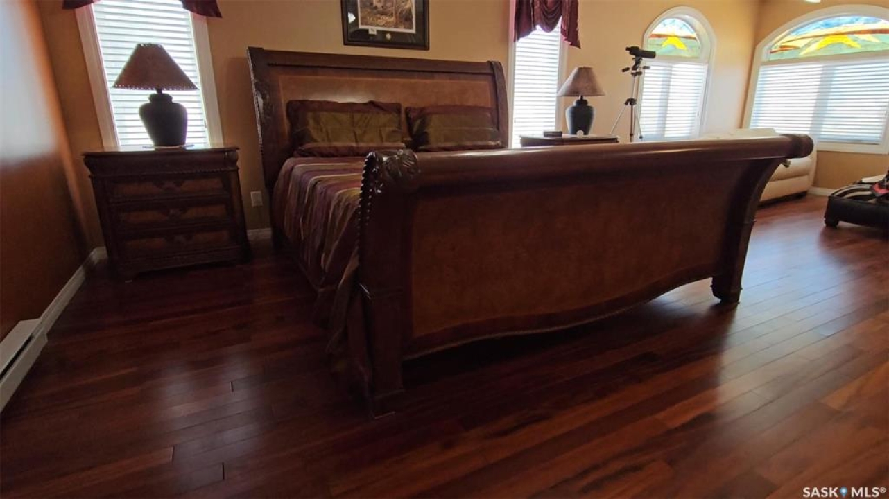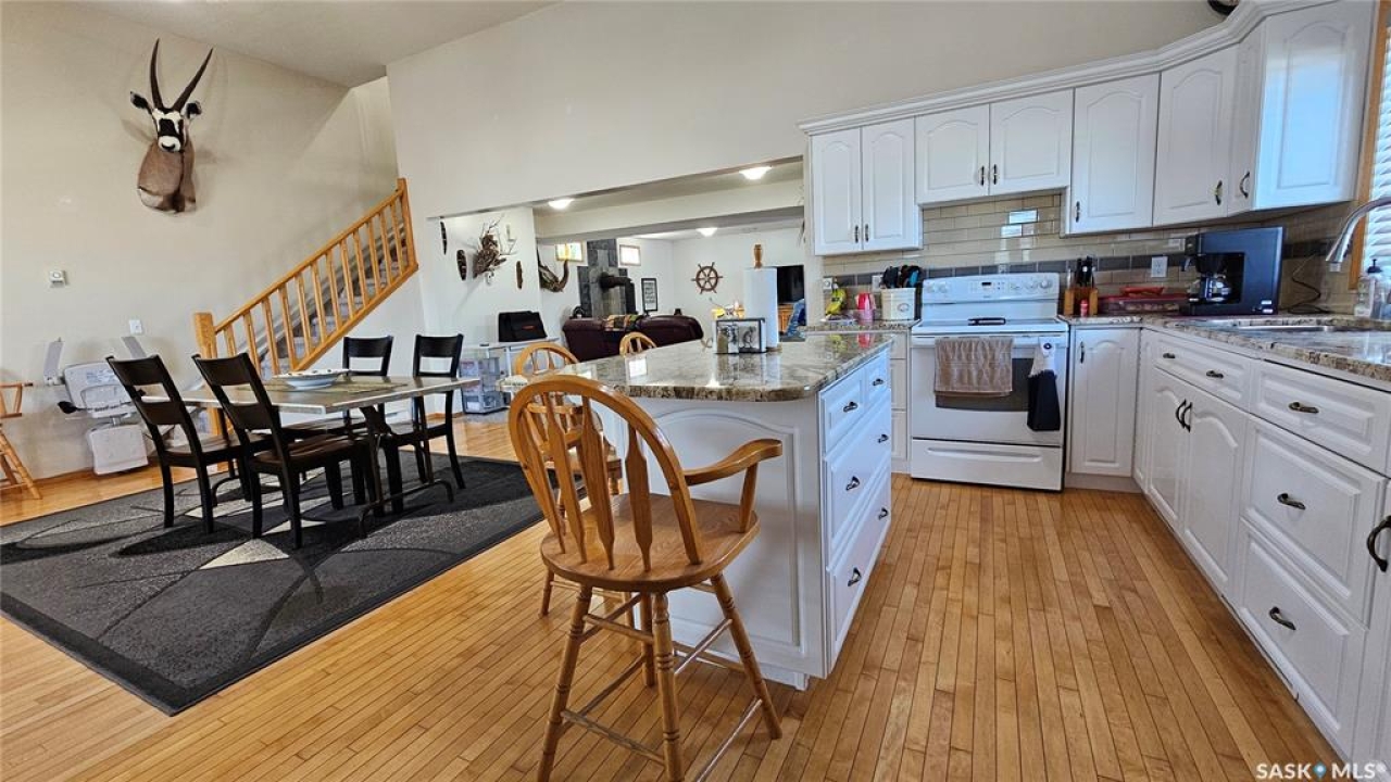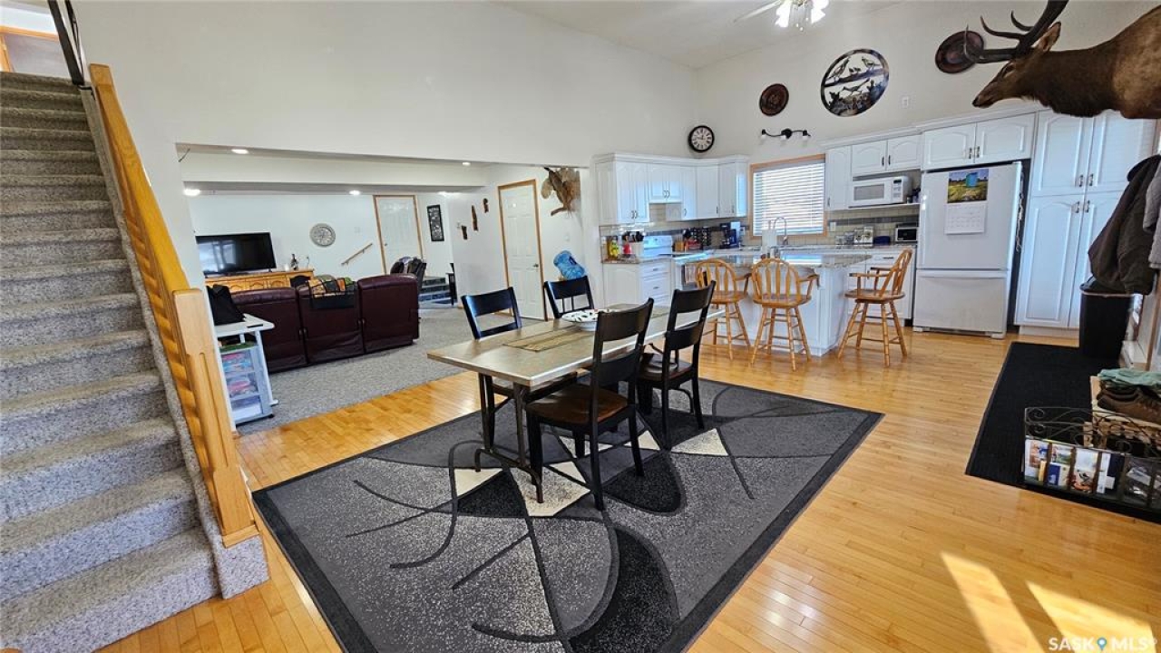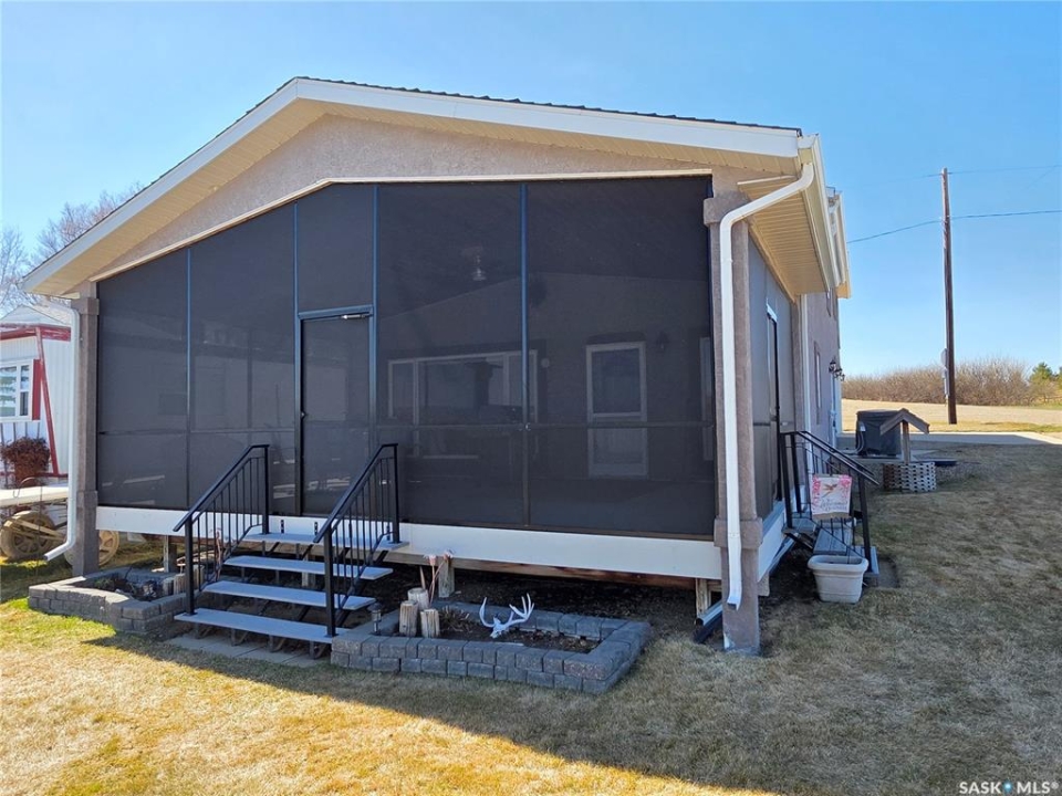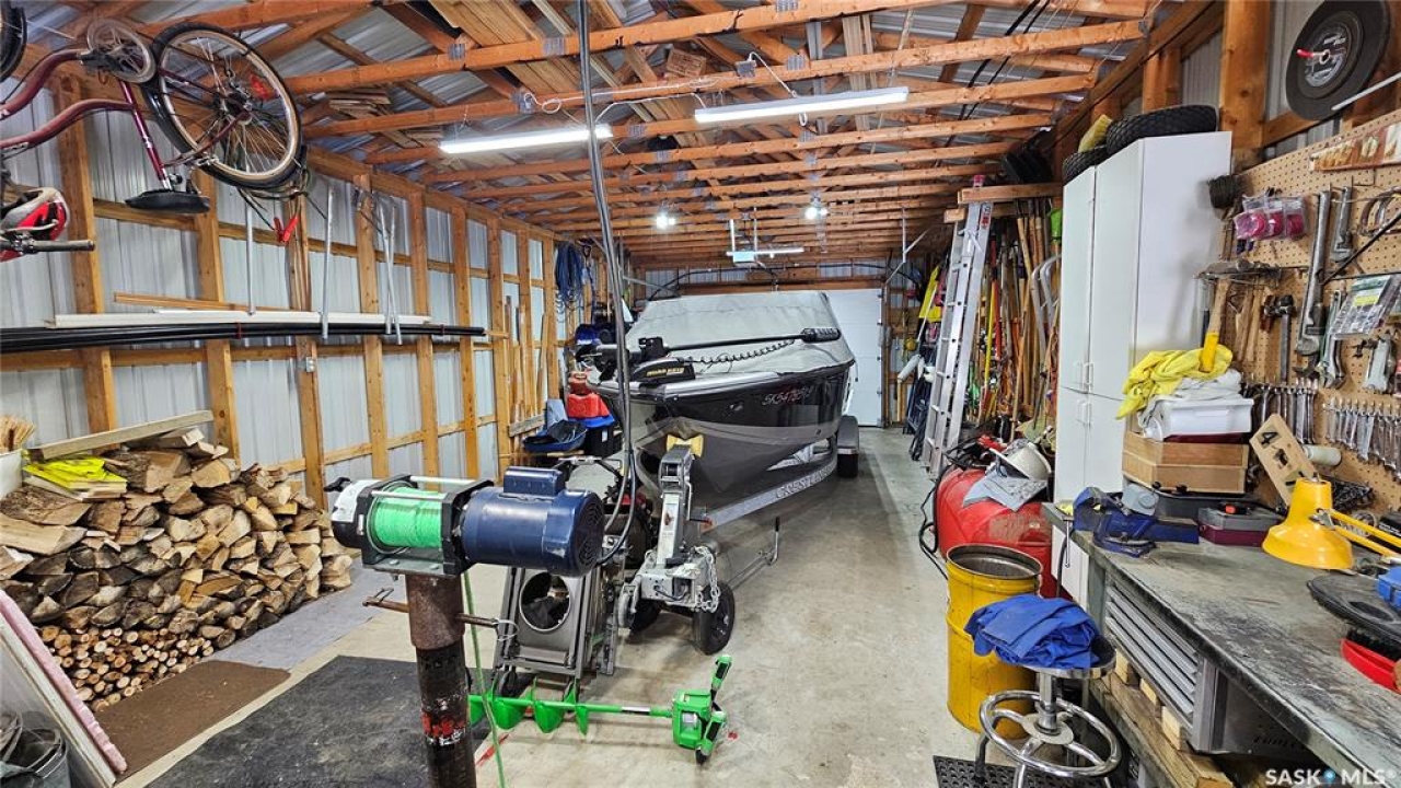 Nestled on the serene shores of pristine Reid Lake, just northwest of Simmie, SK, this stunning year-round waterfront home at 47 Ferguson Bay Resort offers comfort, style, and outdoor adventure. Boasting breathtaking views and direct lake access, this property is a dream for nature lovers and boaters alike. The beautifully updated kitchen features sleek granite countertops, an island with seating, and ample cabinetry for storage. Adjacent, the dining area provides a scenic spot to enjoy meals with a view. The expansive living room is a true showstopper, featuring a cozy wood-burning stove that creates the perfect ambiance for chilly evenings. Large windows let in an abundance of natural light while offering stunning lakefront views. A convenient 2-piece bathroom completes the main floor layout. Upstairs, the two spacious bedrooms offer plenty of comfort and privacy. The impressive main bedroom includes a separate seating area, tiger hardwood floors, a walk-in closet, and a stunning 4-piece ensuite that was once featured in a magazine. The second bedroom is bright and spacious, ideal for guests or family. A combination laundry/3-piece bathroom on this level adds extra convenience with same-floor laundry facilities. Aside from the attached 24x26 heated garage, the 18x48 boat house provides ample storage, keeping watercraft and gear secure and ready for adventure. A private dock extends into the water, offering easy access for boating, swimming, and fishing. The screened-in deck is perfect for relaxing, providing a bug-free, wind-protected retreat to soak in the sights and sounds of lake life. Designed for year-round enjoyment, this home includes all-season utilities, efficient heating for winter comfort, and central air conditioning for hot summer days. With an unbeatable waterfront location, a thoughtfully designed interior, and exceptional outdoor features, this home is the ultimate lakeside escape. Don't miss your chance to own this incredible piece of paradise!
