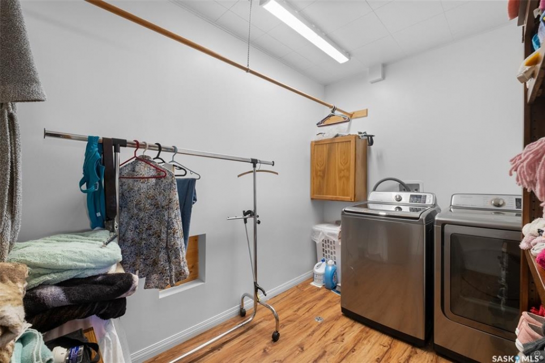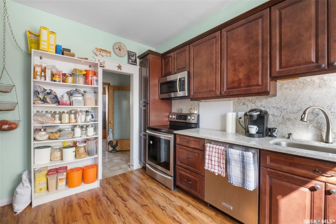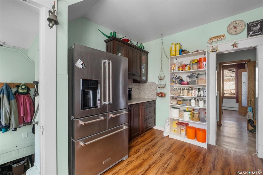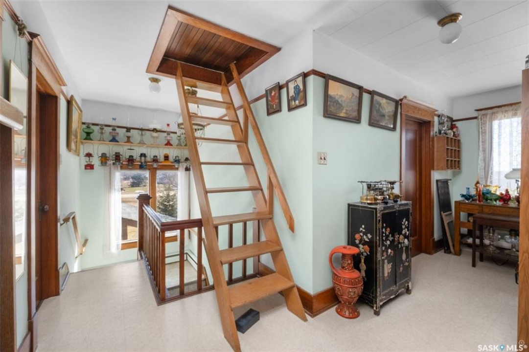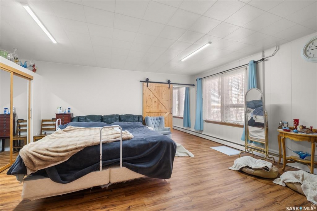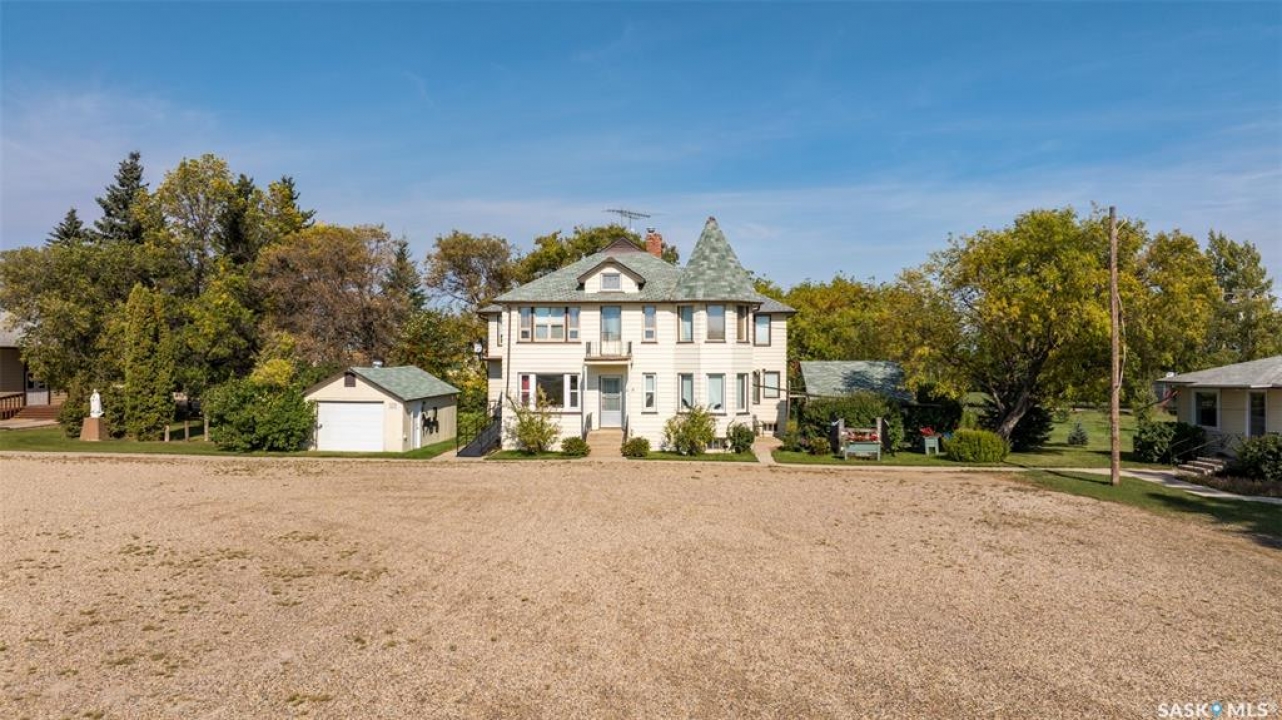 Extraordinary 2 storey residence situated on a beautifully landscaped lot in the heart of St. Isidore de Bellevue! Currently used as a private residence, the property presents a rare opportunity for those seeking space, flexibility and future potential. The main floor showcases a newly renovated kitchen that has quartz countertops, stainless steel appliances and ample cabinetry. A large dining and sitting area, plus a spacious living room provide plenty of room for hosting. The main level also includes a large primary bedroom with a new luxurious 5 pc ensuite featuring double sinks, a modern vanity, stand-up shower and a separate soaker tub. There is also a 2 pc bathroom, den and a laundry room that complete the main floor. The second level offers nine more bedrooms, a sunroom, 2 pc bathroom and a 3 pc bathroom with a stand-up shower providing tremendous potential for a variety of living arrangements. The unfinished basement offers plenty of storage or opportunity for development. Other notable features include some new flooring and windows throughout, a new electric panel box and new PEX plumbing lines in the basement. Outside, the fully landscaped yard includes a garden area for those with a green thumb and 2 single detached garages (one insulated). The yard showcases a variety of fruit trees and berry bushes including 2 Haskap bushes, 2 apple trees, 2 grapevines, a raspberry patch, a strawberry patch and 3 asparagus patches. The property is serviced by the Wakaw rural water line and a septic tank with a lagoon system for sewer. Located beside École St. Isidore School, the property has a peaceful setting and a welcoming small town community feel. This property would make a great family home, revenue generating rental or a space suited for assisted living, foster care, a group home or even a bed and breakfast. Act now and explore the possibilities with this one of a kind property!