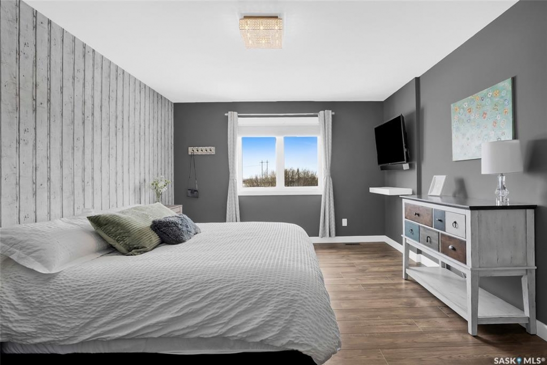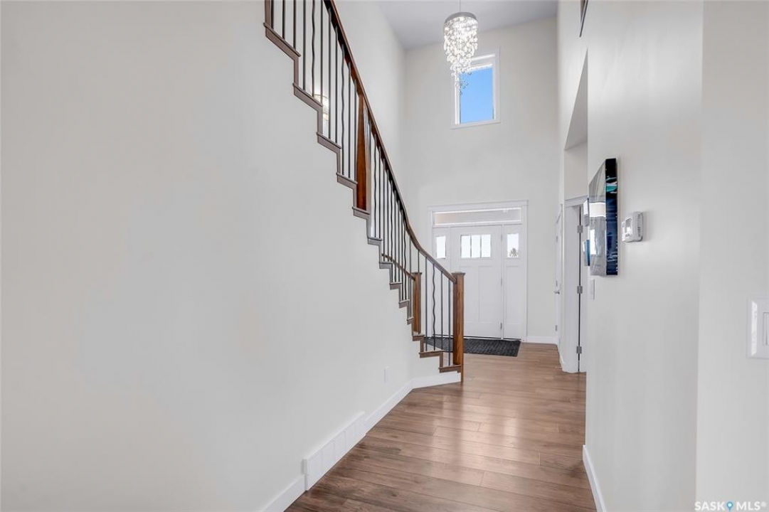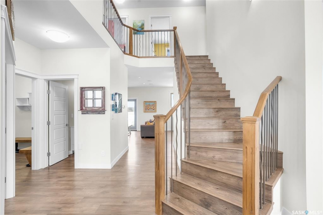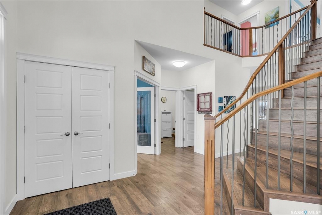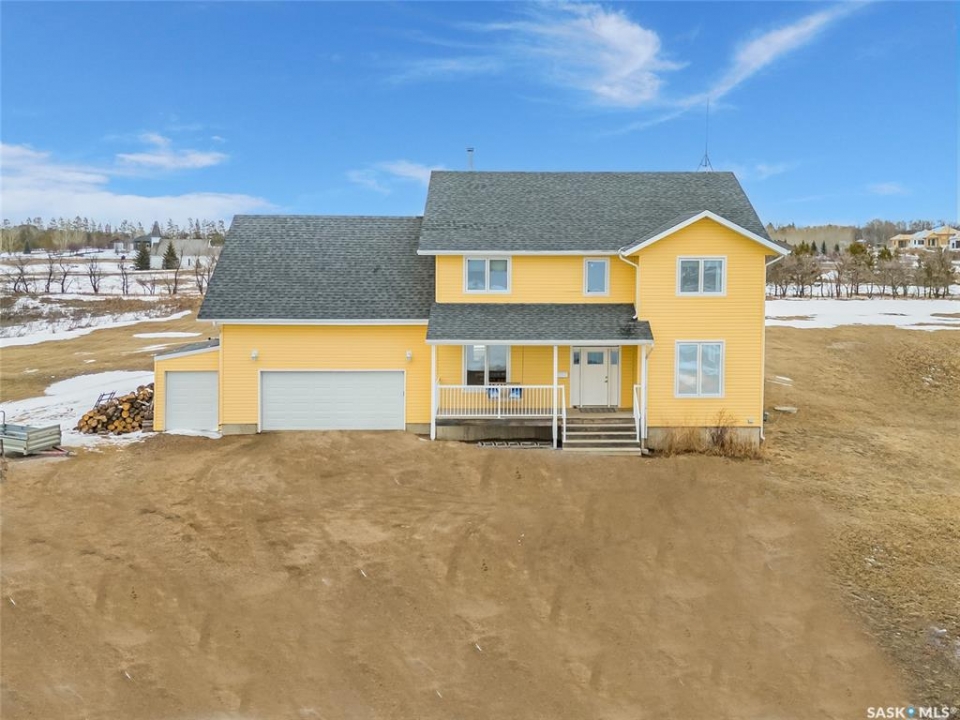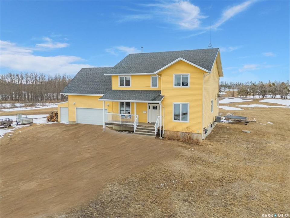 Experience the perfect blend of country serenity and city convenience on this stunning 4 acre property, surrounded by endless breathtaking prairie skies. Designed with your large family in mind, this expansive home offers 2,800 sq. ft. above grade plus a fully developed basement—providing exceptional space and flexibility. Step into the grand foyer with soaring 20' ceilings and a striking central staircase. The main floor is thoughtfully laid out for busy family living, featuring a private office, powder room, and a functional mudroom off the attached double garage. The bright, timeless kitchen showcases white cabinetry, granite countertops, stainless steel appliances, double ovens, and an oversized island—perfect for gathering. The corner sink offers peaceful views of the outdoor sports court, making it easy to keep an eye on the kids while preparing meals. The kitchen flows seamlessly into the inviting family room, where a cozy wood-burning fireplace anchors the space and patio doors lead to a generous two-tiered deck. A formal dining room and elegant living room complete the main floor, providing the perfect setting for celebrations, and large family gatherings. The 2nd level offers 4 spacious bedrooms, a convenient laundry area, 4 pc bath, and a large bonus room ideal for family time. The primary suite features a walk-in closet and a spa-inspired ensuite—the perfect space to unwind. The fully developed basement adds 2 more bedrooms, a full bathroom, ample storage, and a wet bar—ideal for entertaining or movie nights already set up for your projector. Outdoors, enjoy an 40' x 60' sports court, expansive 2-tiered deck, and peaceful front porch views. The acreage offers privacy, space, and future potential. Additional highlights include solar panels and an EV charger adding efficiency and convenience to your daily commute. The sellers will be reviewing submitted offers on April 17th at 2:00 PM.