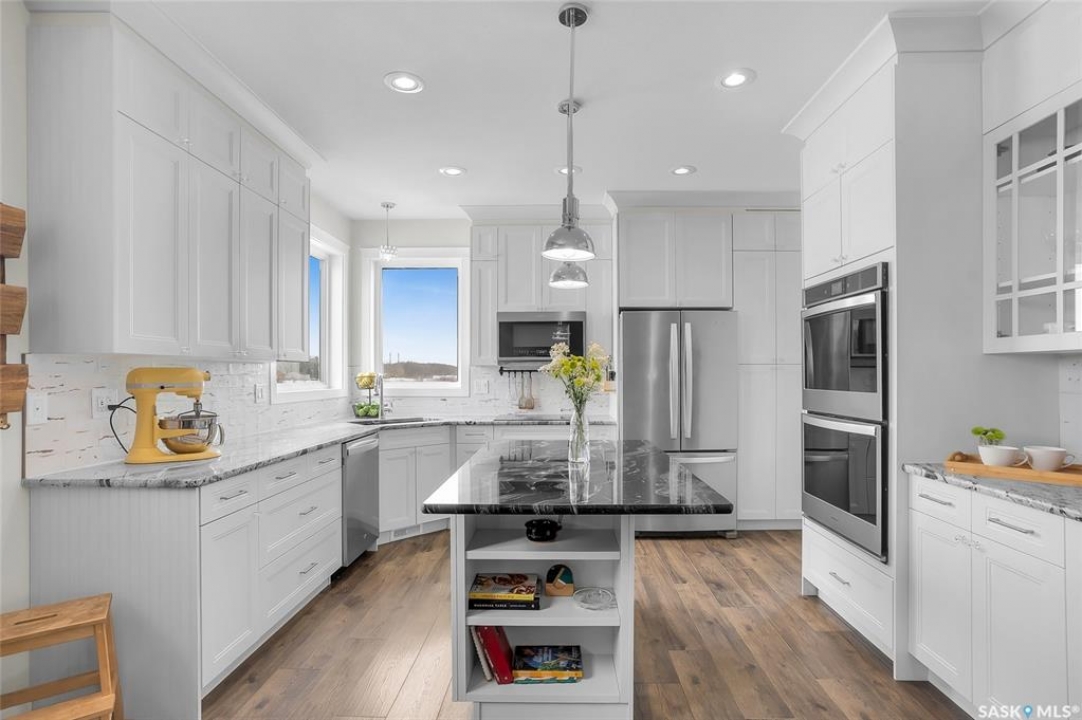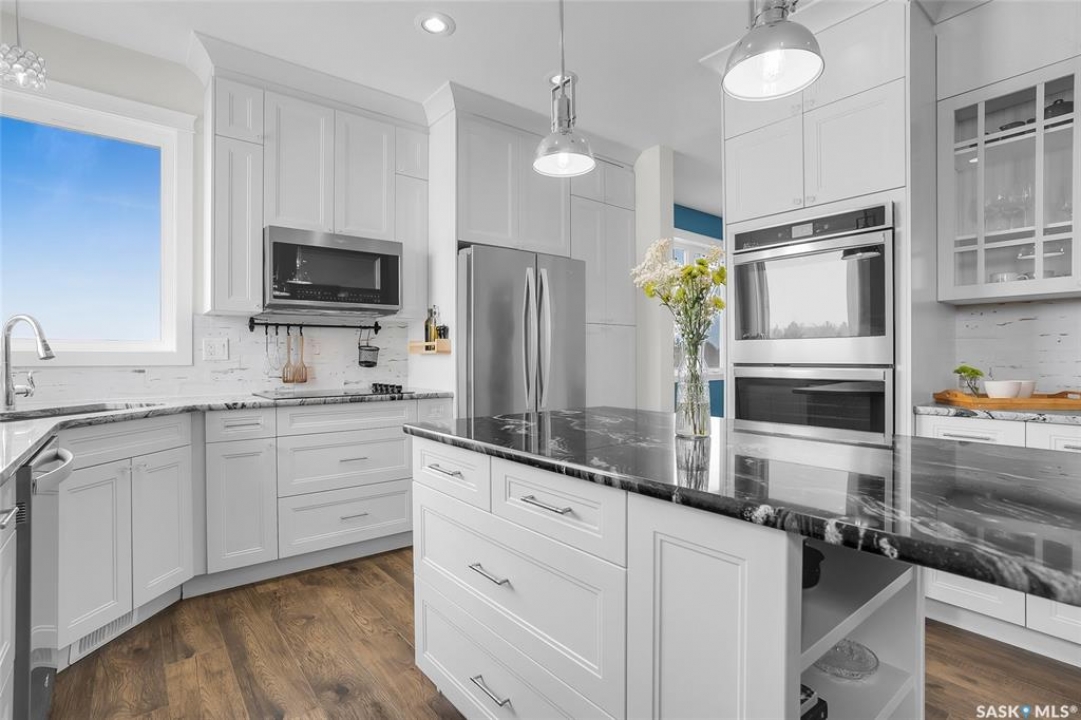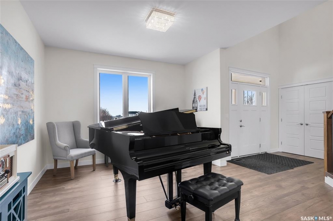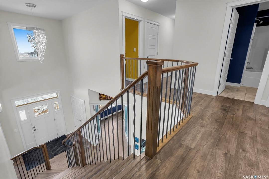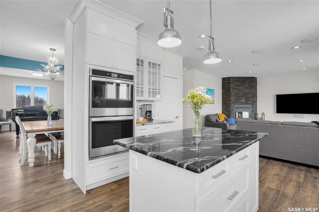 Experience the perfect blend of country serenity and city convenience on this stunning 4 acre property, surrounded by endless breathtaking prairie skies. Designed with your large family in mind, this expansive home offers 2,800 sq. ft. above grade plus a fully developed basement—providing exceptional space and flexibility. Step into the grand foyer with soaring 20' ceilings and a striking central staircase. The main floor is thoughtfully laid out for busy family living, featuring a private office, powder room, and a functional mudroom off the attached double garage. The bright, timeless kitchen showcases white cabinetry, granite countertops, stainless steel appliances, double ovens, and an oversized island—perfect for gathering. The corner sink offers peaceful views of the outdoor sports court, making it easy to keep an eye on the kids while preparing meals. The kitchen flows seamlessly into the inviting family room, where a cozy wood-burning fireplace anchors the space and patio doors lead to a generous two-tiered deck. A formal dining room and elegant living room complete the main floor, providing the perfect setting for celebrations, and large family gatherings. The 2nd level offers 4 spacious bedrooms, a convenient laundry area, 4 pc bath, and a large bonus room ideal for family time. The primary suite features a walk-in closet and a spa-inspired ensuite—the perfect space to unwind. The fully developed basement adds 2 more bedrooms, a full bathroom, ample storage, and a wet bar—ideal for entertaining or movie nights already set up for your projector. Outdoors, enjoy an 40' x 60' sports court, expansive 2-tiered deck, and peaceful front porch views. The acreage offers privacy, space, and future potential. Additional highlights include solar panels and an EV charger adding efficiency and convenience to your daily commute. The sellers will be reviewing submitted offers on April 17th at 2:00 PM.