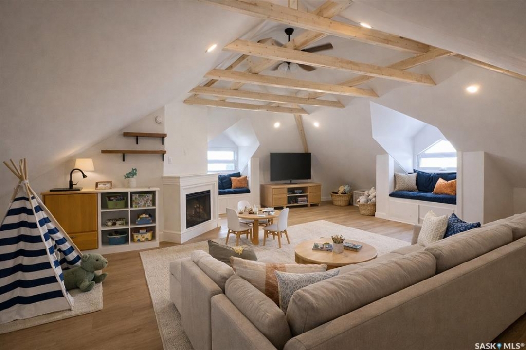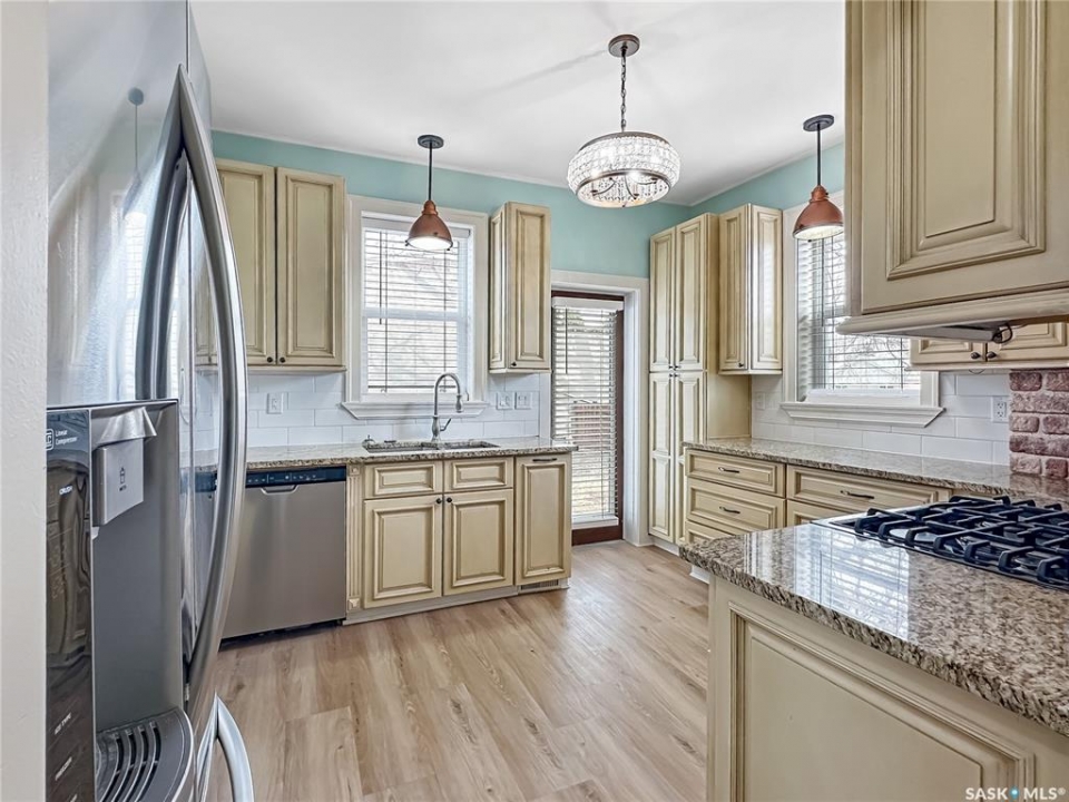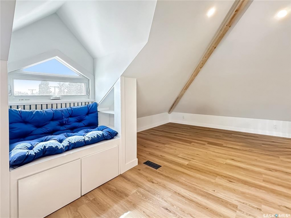 Welcome to this stunning, fully updated century home in the heart of Indian Head, offering 2,248 sq. ft. of thoughtfully designed living space across 2.5 levels, where timeless character and modern luxury come together seamlessly. The main floor is a true showpiece, featuring a beautifully renovated kitchen with granite countertops, updated appliances, and a charming butler's pantry complete with its own sink, perfect for entertaining and everyday convenience. The dining area flows effortlessly into an inviting front sitting room, where classic pocket doors add warmth and distinction. A versatile space near the entrance offers the perfect setting for a home office or reading nook, while a convenient 2-piece bath completes the level. Upstairs, the second floor has been refreshed with new flooring and paint and offers four bedrooms, including an impressive primary suite with a walk-in closet and a private 3-piece ensuite. A well-appointed 4-piece bathroom with in-suite laundry adds both style and function. The third floor is a standout feature, an inspiring loft-style retreat of approximately 325 sq. ft., showcasing vaulted ceilings, exposed beams, and a beautifully finished 3-piece tiled bathroom. Whether used as a guest suite, studio, or personal escape, this space is truly one of a kind. Outside, the home continues to impress with a beautifully landscaped yard, a brick patio perfect for relaxing or entertaining, a double detached garage, and an expansive 100-foot wide lot. Ideally situated just off Grand Avenue, you're only a short walk to schools, the pool, and local rinks, offering the perfect balance of small-town charm and everyday convenience. A rare opportunity to own a turn-key character home with exceptional space, style, and presence. Call you favorite local agents today!