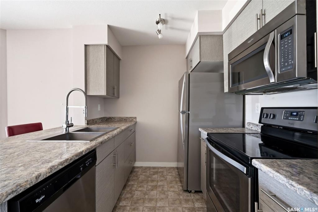Welcome to this bright and super functional 2 bed + den, 2 bath condo with 775 sq ft of well-used space; perfect for a first-time buyer or anyone looking for something low maintenance. The open-concept layout gives you a smooth flow from the kitchen into the living room, making the space feel bigger than it is and perfect for everyday living or having people over. The primary bedroom has its own ensuite and walk-in closet, so it actually feels like a proper retreat, not just another bedroom. The second bedroom and full bath make it great for guests, roommates, or a little extra space. You've also got a den that can flex however you need; home office, playroom, storage, you name it. There's tons of natural light throughout, which makes the whole place feel open and inviting. And one of the underrated features—the parking stall is right outside the back door, so hauling groceries in is quick and painless. Overall, it's a really solid, functional space that makes sense; whether you're getting into the market or looking for something simple and comfortable to call home.