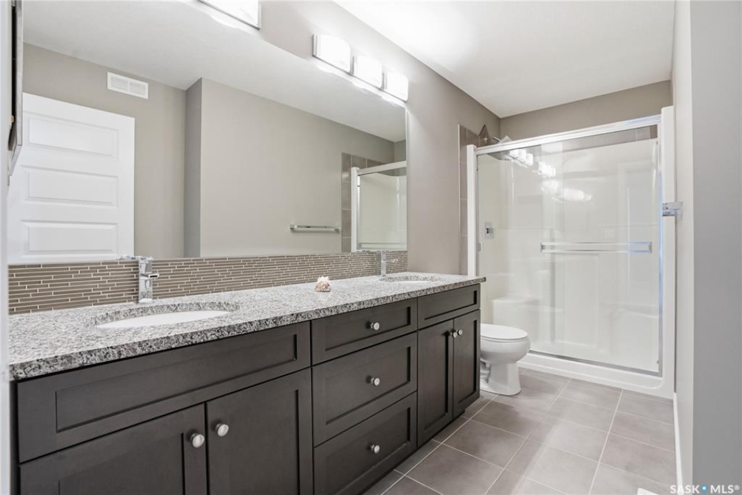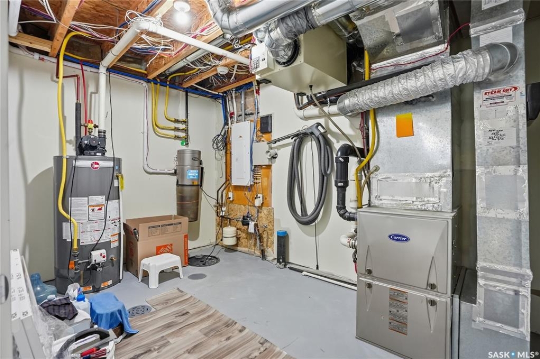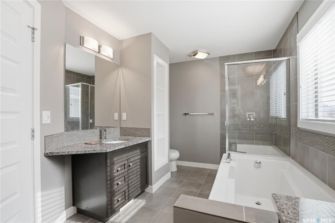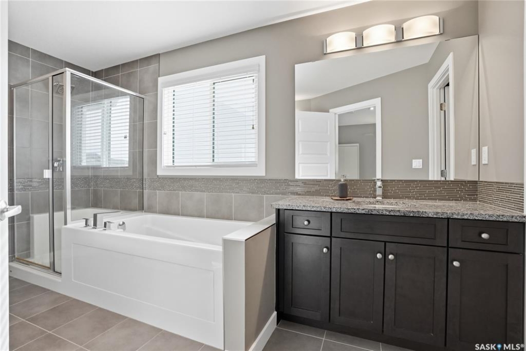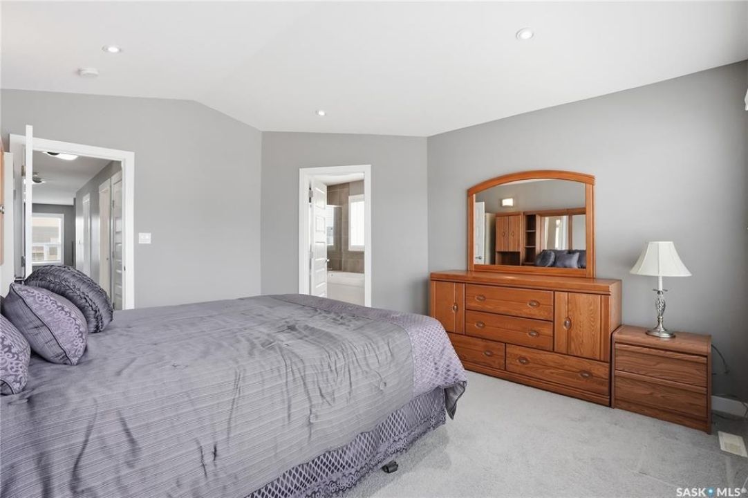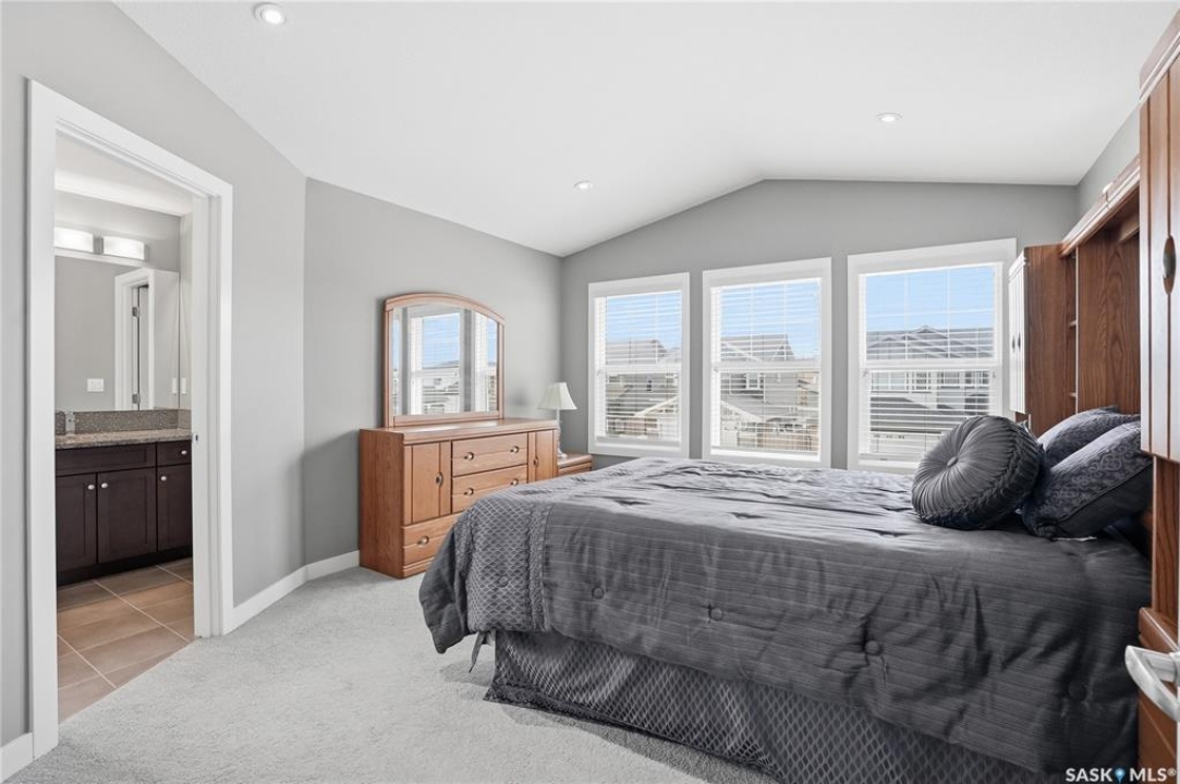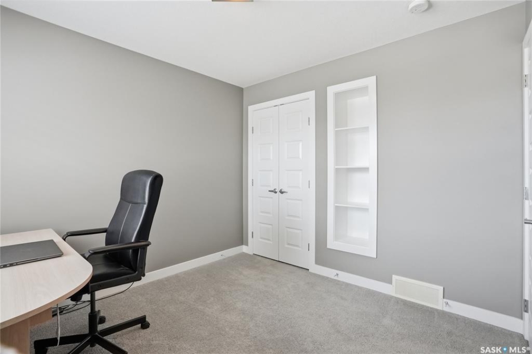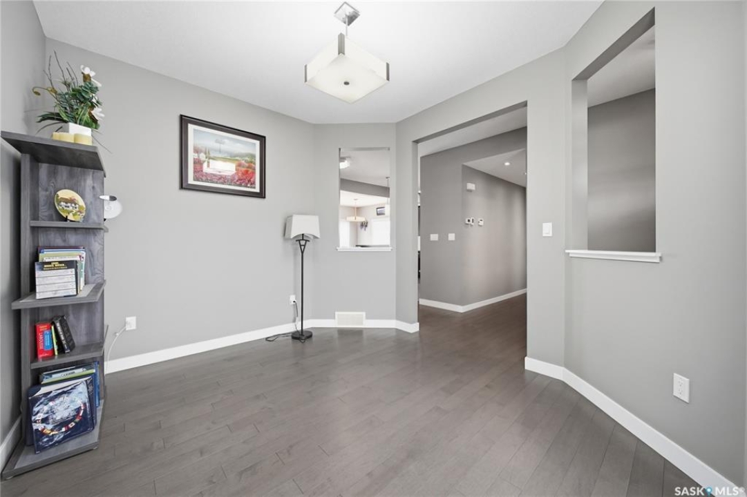 Welcome to 411 Flynn Lane, where thoughtful design and elevated finishes come together in one of Rosewood's most sought after locations, just steps from both public and Catholic schools. Offering over 2,200 sq ft, this home stands out with its curb appeal, low maintenance turf, and covered composite entry. Inside, you'll find engineered hardwood flooring, 9 foot ceilings, and a bright, functional layout with a private main floor den and a beautifully finished kitchen featuring granite countertops, soft close cabinetry, a walk-in pantry, and a large island that anchors the space. The living room is centered around a gas fireplace, creating a warm and inviting focal point, while the dining area opens seamlessly to the backyard and professionally landscaped yard backing the schools. Upstairs, the primary suite offers a vaulted ceiling, a spacious walk in closet, and a well appointed five piece ensuite. Three additional bedrooms, a full bathroom with double vanity, a bonus room, and a convenient second floor laundry room provide the ideal family layout. The professionally developed basement adds even more living space with a sound insulated theatre room wired for projector and surround sound, a bedroom, a full bathroom, gym or flex space, and generous storage. Additional features include central air conditioning, built-in speakers, central vac, triple pane windows, Hunter Douglas blinds, and custom MDF shelving throughout the home, along with a fully finished oversized garage. This is a move-in ready home that offers a rare combination of quality, function, and location.