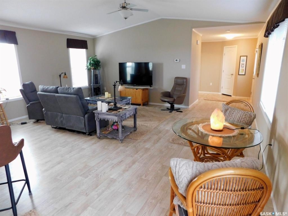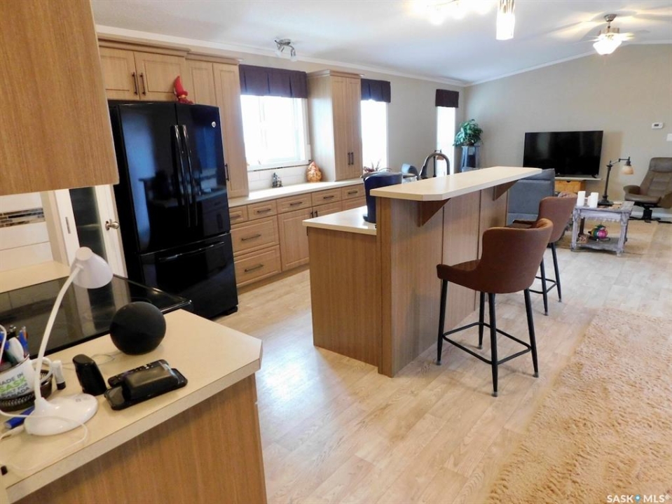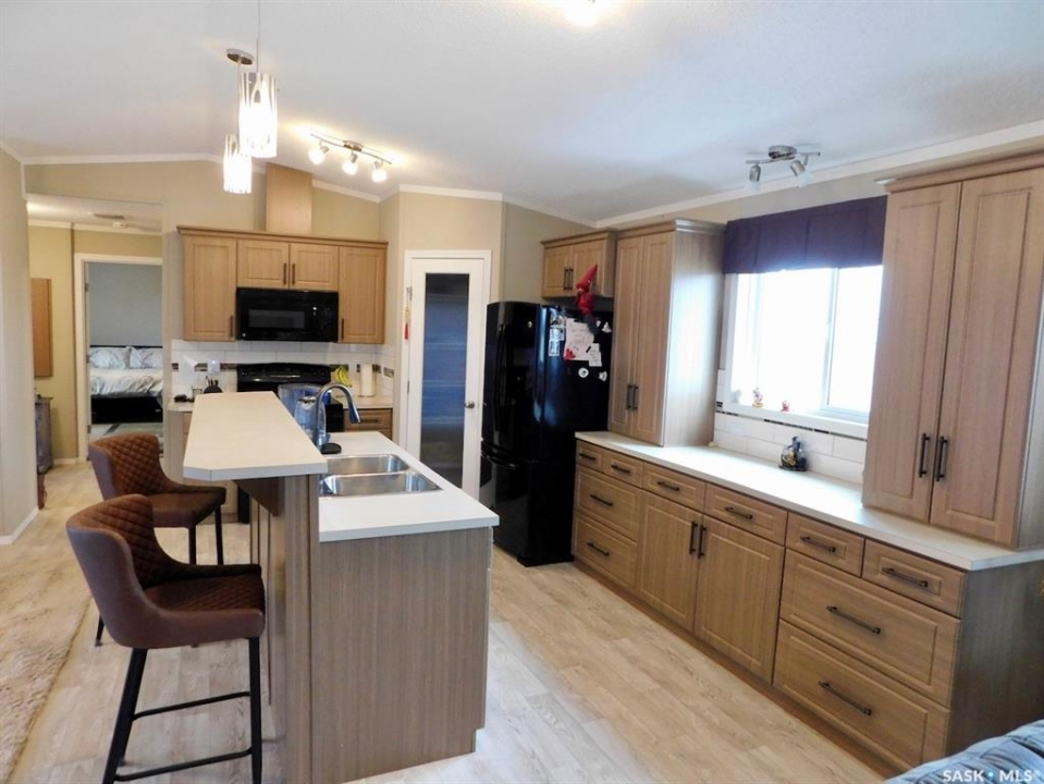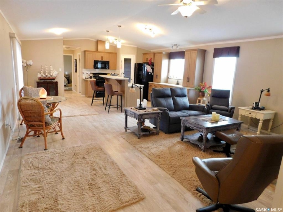 Are you looking for a little oasis? Mobile living at its best… meticulously updated, beautiful and move-in Ready. This is 76' X 20' manufactured home has huge living room, 3 bedrooms and 2 bathrooms, built in 2015, on three huge owned lots, in a cul-de sac, gravel-packed and well-anchored and up to standard. Also added at the 2/3 back side of the modular home is 16” X 1/16 mesh on all back and both sides. The fully insulated garage size is 20' X 36' with easy to heat inclosed rooms at the back of the garage, with an office room and storage. As you step out on the 12' X 20' deck through the sliding doors from the dining room, a place to enjoy your morning coffee and a BBQ place to entertain friends and family. The latest updates: when there is no more frost in the ground, a white PVC fence will be installed at the end of the neighbour's fence at the back, and a third of the chain link will be added to the back of the garage; the whole back will be closed. The front will have about 5 PVC-panel fences. The seller plans to put some gravel in the front yard. Other updates: the eavestrough on all the back sides with extra downspout, also downspout was added to the front of the house, eavestrough on the far side of the garage, painted the deck, deflective materials on the two big windows, and a new washer and dryer (less than a year). Trees were planted: 2 apples, 2 pears, 2 oriental trees, and 25 poplar trees on the north side. Equipment Included: fridge, stove, dishwasher built in, garage door opener/control (s), microwave hood fan & window treatment. Also included are 2 portable window air-conditioner. Negotiable items are a lawn mower, a big weed trimmer, a riding lawn mower, two beds and furniture. Look no further, this could be your dream home.
