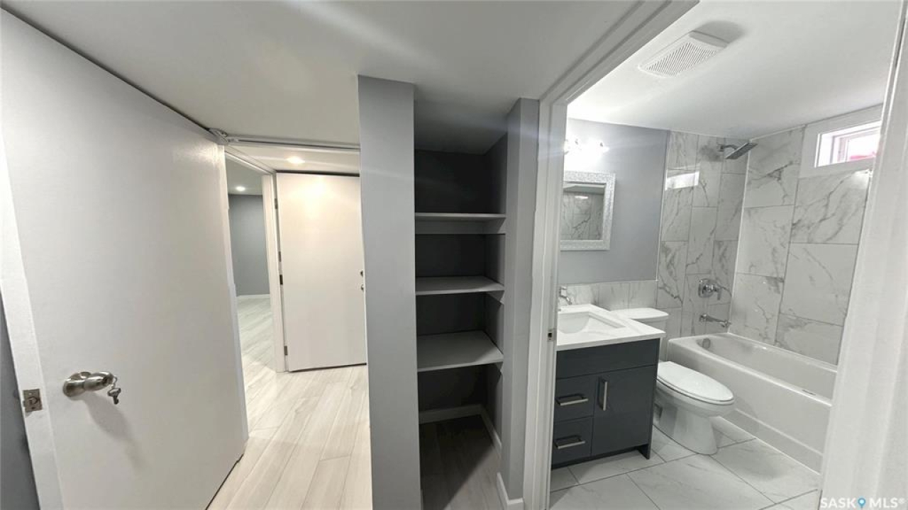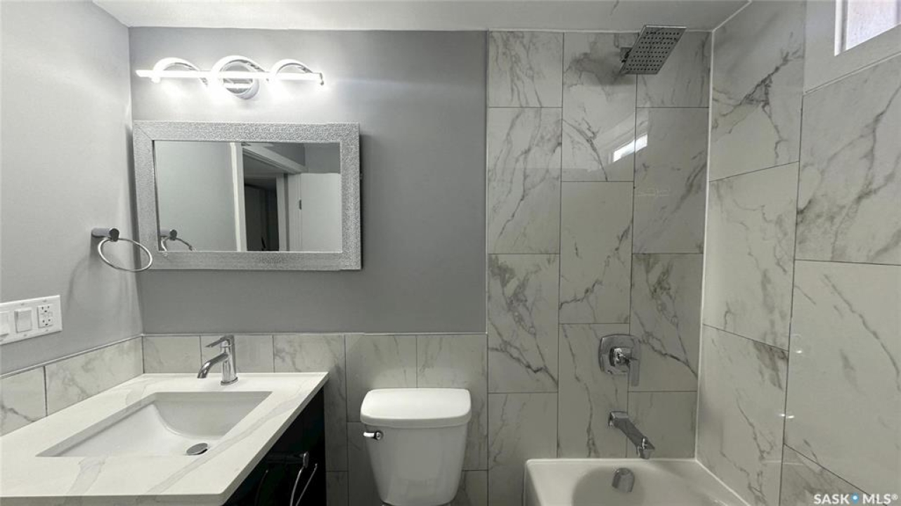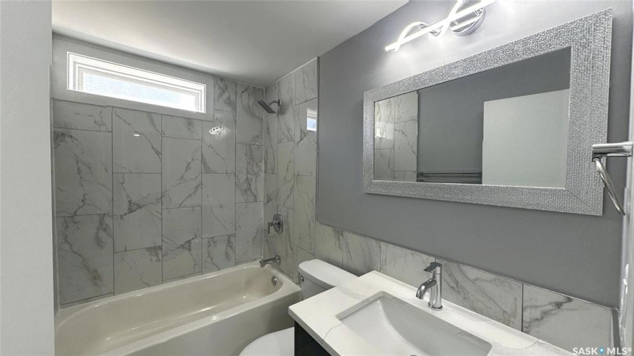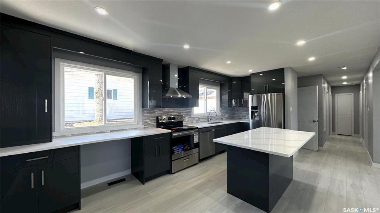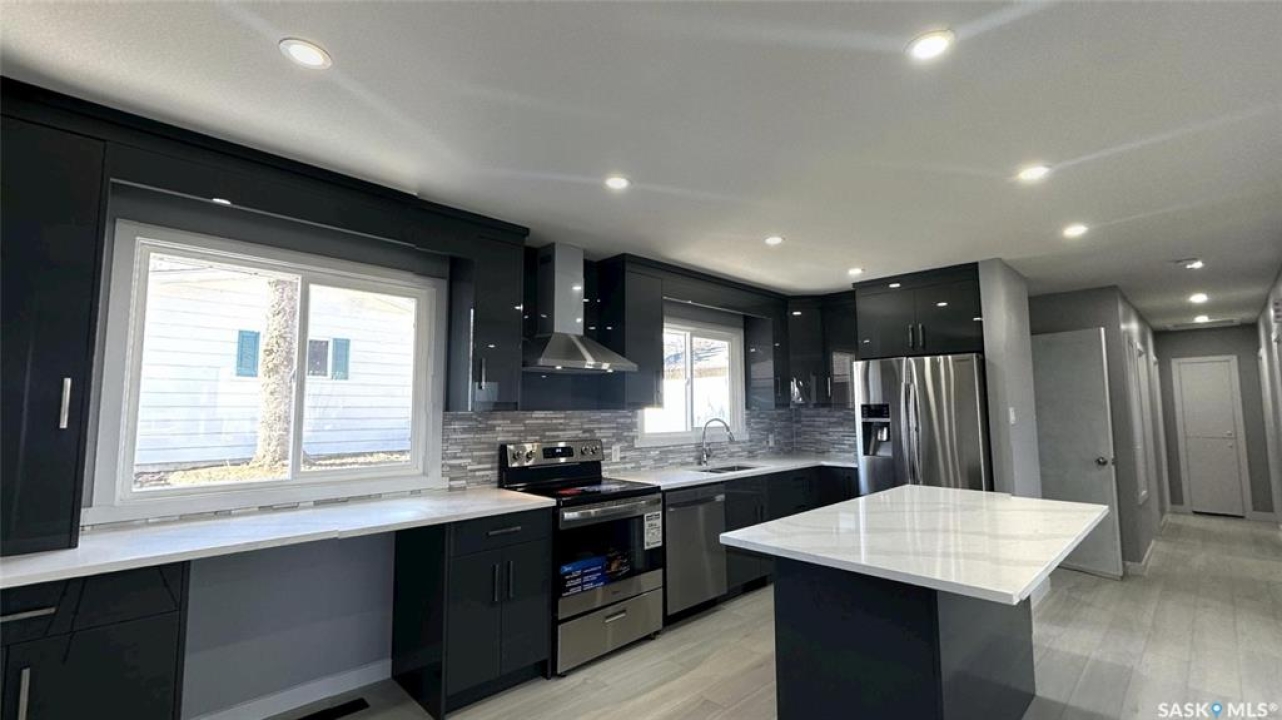 Welcome to 1607 9th Avenue North, a fully renovated bungalow that offers the perfect blend of modern style and income potential in the desirable North Park neighbourhood. Featuring a total of 5 bedrooms and 3 bathrooms, this property is ideal for homeowners looking to offset their mortgage or investors seeking a turn-key opportunity. The main floor is thoughtfully designed with 3 spacious bedrooms a full bathroom. You'll appreciate the quality finishes throughout, including new laminate flooring, quartz countertops, and beautifully finished bathrooms with tile surround up to the ceiling. The kitchen is both functional and stylish, complete with a hood fan vented to the exterior and a layout that flows seamlessly into the living space. Downstairs, a fully developed 2-bedroom, 1-bathroom basement suite provides excellent flexibility for rental income or extended family living. As an added bonus, the Saskatchewan Secondary Suite Incentive (SSI) is available to qualified buyers. Located right by North Park Wilson Primary School and minutes away from the river while still being just minutes from downtown and all key amenities. A perfect opportunity to own a move-in-ready home in a prime location with built-in income potential. Call your favourite agents today to make your dream home a reality.