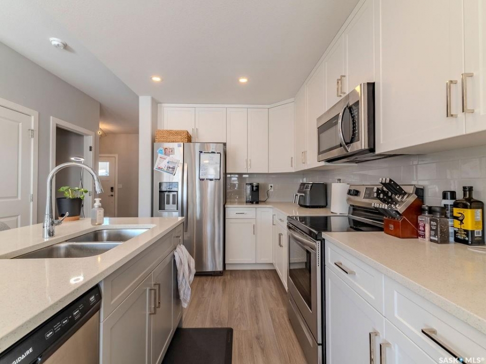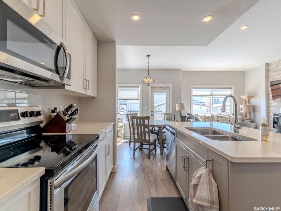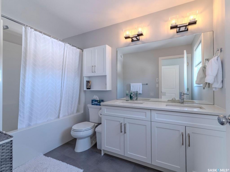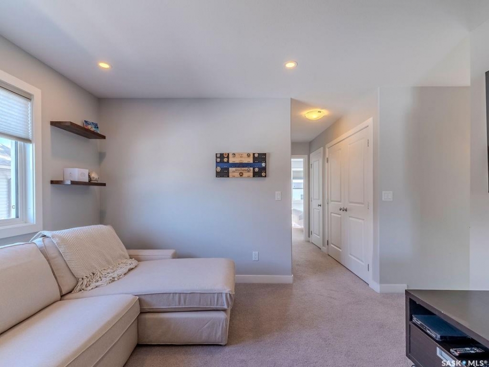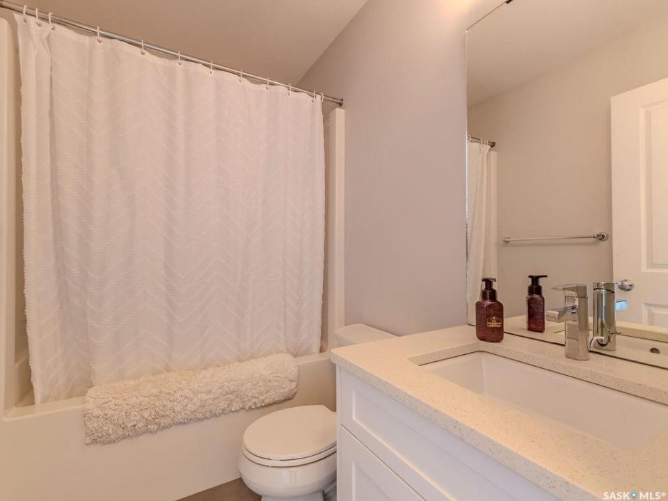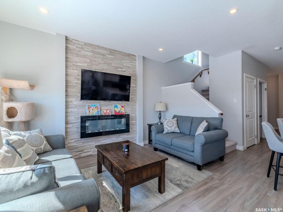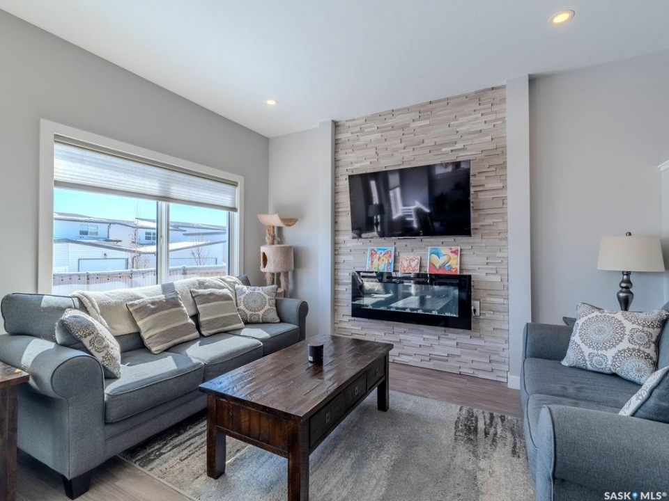 2 storey family home located in Saskatoon's Brighton area. This home features 4 bedrooms, 4 bathrooms and a bonus room making it a perfect home to grow in to. The main floor offers a bright, open concept layout with space to entertain. The kitchen is upgraded with quartz countertops and tile backsplash and closet pantry. The living room is warm and welcoming, featuring an electric fireplace with stone surround. Upstairs you'll find conveniently placed laundry room, bonus room, 2 primary bedrooms and 4 pc bathroom. The primary suite has a vaulted ceiling and 4pc ensuite. The basement has been fully developed with a family room, bathroom and additional bedroom. Schedule your private tour today.