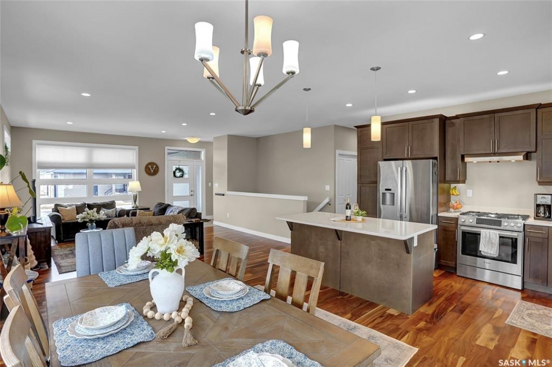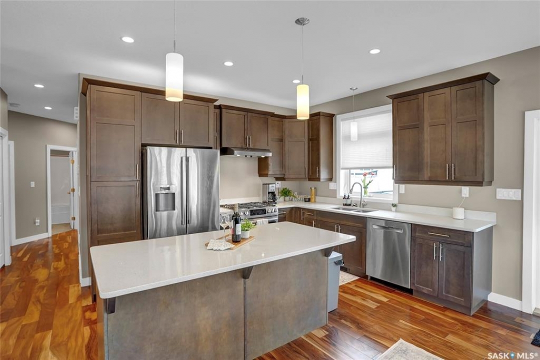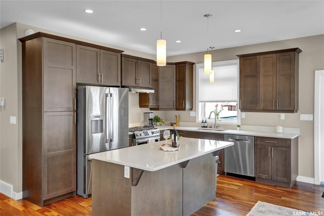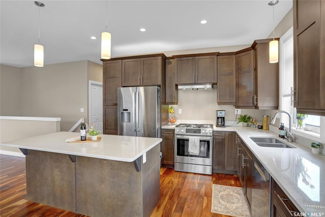 Welcome to your home in the sought-after West Park Village! This move-in-ready gem offers over 2,770 sq. ft. of fully finished living space with 9-foot ceilings on both the main & lower levels. Perfectly designed for families, it features 6 spacious bedrooms and 3 modern bathrooms. Location is everything, and this home is just steps away from picturesque parks and walking paths. Step inside to an open-concept layout where elegant hardwood floors and large windows fill the space with natural light. The dining area is perfect for hosting family gatherings & entertaining friends, especially with the patio door that opens onto the large deck. The kitchen is a standout with its center island, a gas stove, and plenty of maple cabinetry topped with sleek quartz countertops. The main floor features 3 bedrooms, including a primary suite that comfortably fits a king-size bed. Enjoy the organized walk-in closet and the ensuite with a beautifully tiled shower wglass divider. Convenience is key with a main 4pc. bath and a main floor laundry room equipped with additional cabinetry and not to mention central vac. The lower level impresses with its own large windows and high ceilings. It offers versatile family and game areas, plus 3 additional bedrooms—one with a walk-in closet. These rooms are perfect for guests, a home office, workouts, or crafting, you have space to suite your lifestyle. A 4pc. bath with a linen closet and a utility area complete this level. Outdoor living is a delight with a deck that includes a natural gas BBQ hookup, a landscaped yard, PVC fencing, and underground sprinklers in both the front and back. The dbl. att. heated garage adds the final touch of convenience. This home is move-in ready, providing ample space and comfort for your family. Don't miss out and call today for your personal tour! CLICK ON THE MULTI MEDIA LINK FOR A FULL VISUAL TOUR.