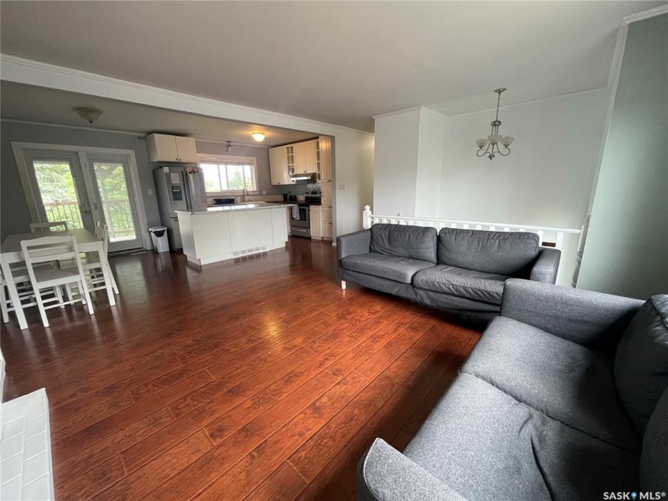 Welcome to 31 O'Connor Crescent in the desirable Rosedale subdivision of Kindersley, Saskatchewan! This charming five-bedroom, two-bathroom home is move-in ready and awaiting its new owners. As you step through the front door of this bi-level home, you'll find yourself on the main floor, which boasts an updated kitchen featuring beautiful white cabinets, new countertops, and a spacious island with seating for your family, alongside ample space for a dining table. This open-concept area flows seamlessly into the living room, illuminated by large windows that invite abundant natural light. Garden doors lead out to a lovely covered deck, perfect for outdoor enjoyment. Down the hall, you'll discover three comfortable bedrooms, including a generously sized master bedroom that offers a convenient cheater door to the main bathroom. This four-piece bath has been updated with a new toilet, tub, cabinets, and fresh paint. The lower level provides additional living space with two good-sized bedrooms and a renovated three-piece bath, complete with a new shower, flooring, vanity, and toilet. You'll also find a large living room and a bonus room situated directly off one of the bedrooms. A spacious utility room houses the washer/dryer, furnace, water heater, sump pump, and a water softener (currently not in use). The expansive 6400 sq. ft. yard offers plenty of grassy area for children to play, along with a shed tucked behind a shrub line. This home has received numerous updates over the years, ensuring comfort and peace of mind: * **Furnace and Central Air:** 2016 * **Shingles:** 2013 * **Living Room/Dining Space Insulation:** Updated * **Water Tank:** 2019 * **Deck Railing:** 2019 * **Deck Stairs:** 2023 * **Windows:** Almost all windows have been updated between 2017 and 2023. Call your realtor to view today!