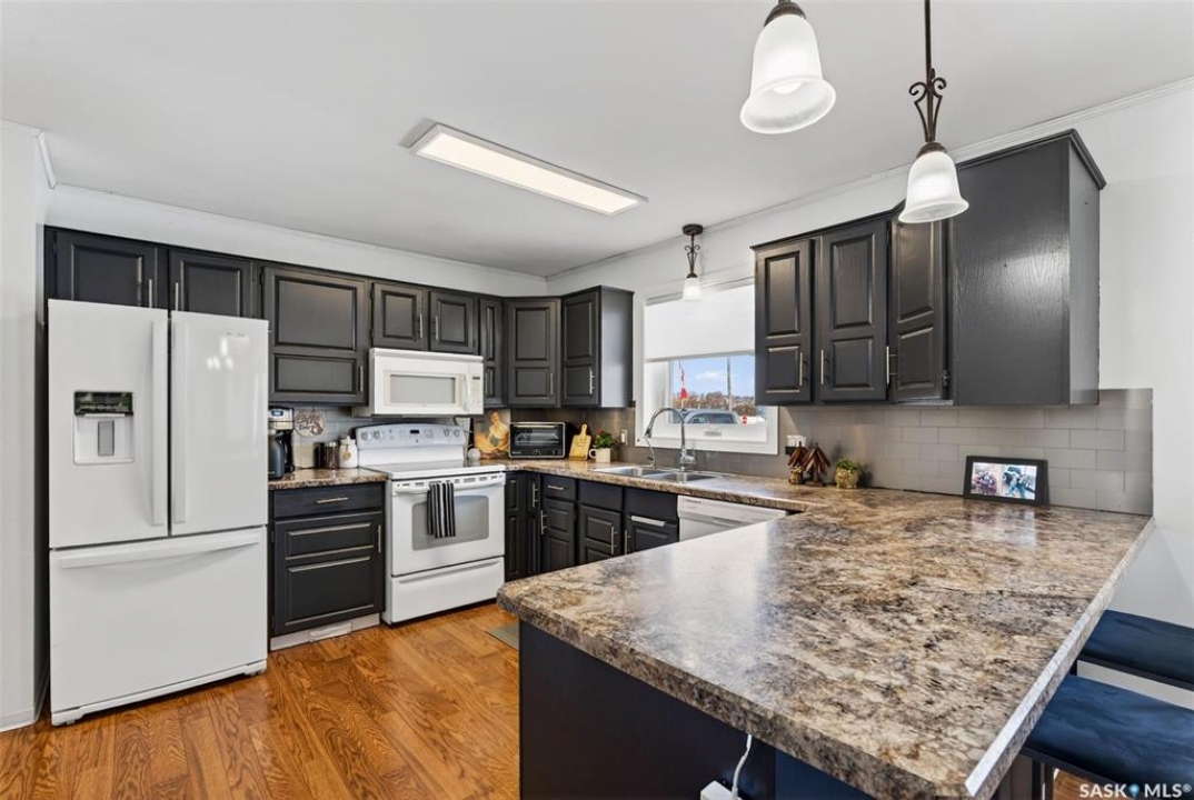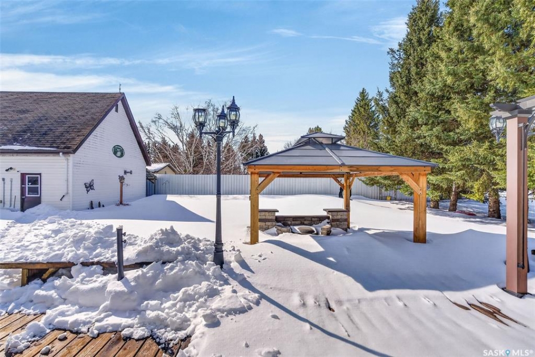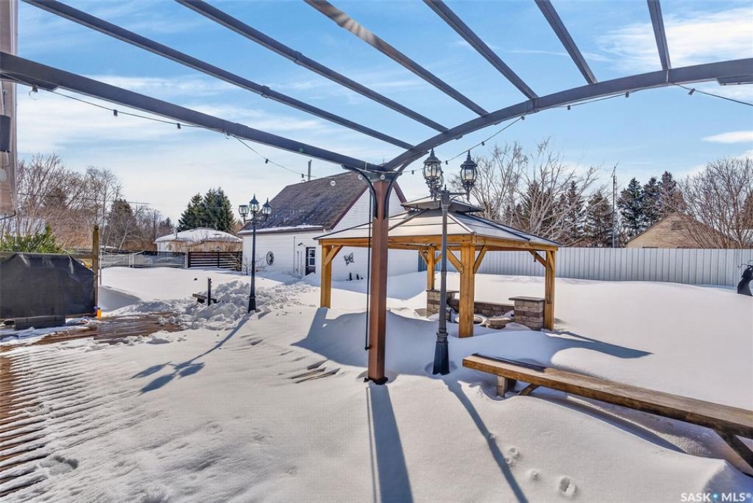 Have you been waiting for a move in ready home in a quiet yet thriving community with convenient access to local employment opportunities? If so, 321 2nd St S in Spalding, SK may be exactly what you've been looking for. Situated on an oversized 100x135 double corner lot, this 1465 sq ft bungalow was built in 1985 and is ideally located centrally close to excellent employment options, including nearby Doepker Industries and Schulte Industries, and is only about 40 minutes from the BHP Jansen Potash Mine. Outside, the backyard is a mini oasis featuring a partially fenced yard with a mature garden area and a large back deck showcasing two gazebo spaces perfect for entertaining. For those in need of ample garage space, the property includes a 24x32 detached garage and a 24x32 double attached garage with direct entry to a covered four season breezeway complete with a cozy sitting area. Upon entering the home, it's immediately clear that it has been lovingly maintained and remains in immaculate condition. You are welcomed by a spacious porch area that includes main floor laundry, an additional stand up fridge/freezer, plenty of storage, and a convenient two-piece bathroom. Moving further inside, the open-concept layout features a beautifully maintained kitchen, a dining area and large living room complete with a gas fireplace. Brand new vinyl windows installed in 2025 allow for an abundance of natural light, creating a bright and inviting atmosphere throughout the space. The main floor also offers 3 generously sized bedrooms and an updated 4pc bathroom with a relaxing jet tub. Downstairs, the fully finished basement provides a spacious family room, a large den, an additional bedroom, 3pc bath and a utility room. Additional updates include shingles (2020), exterior painting (2021), updated wiring/box and Glowstone permanent lighting. Homes that have been this well cared for do not come on the market often schedule your viewing today.