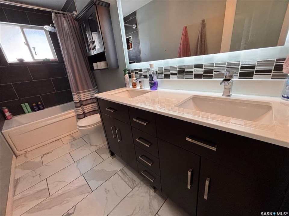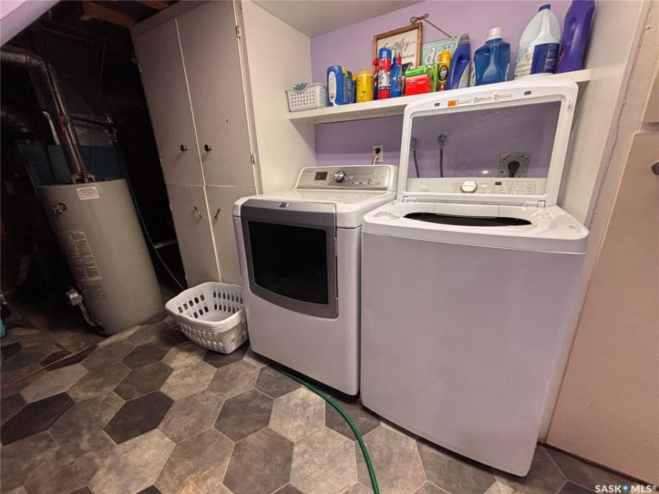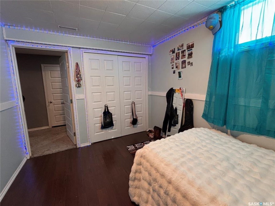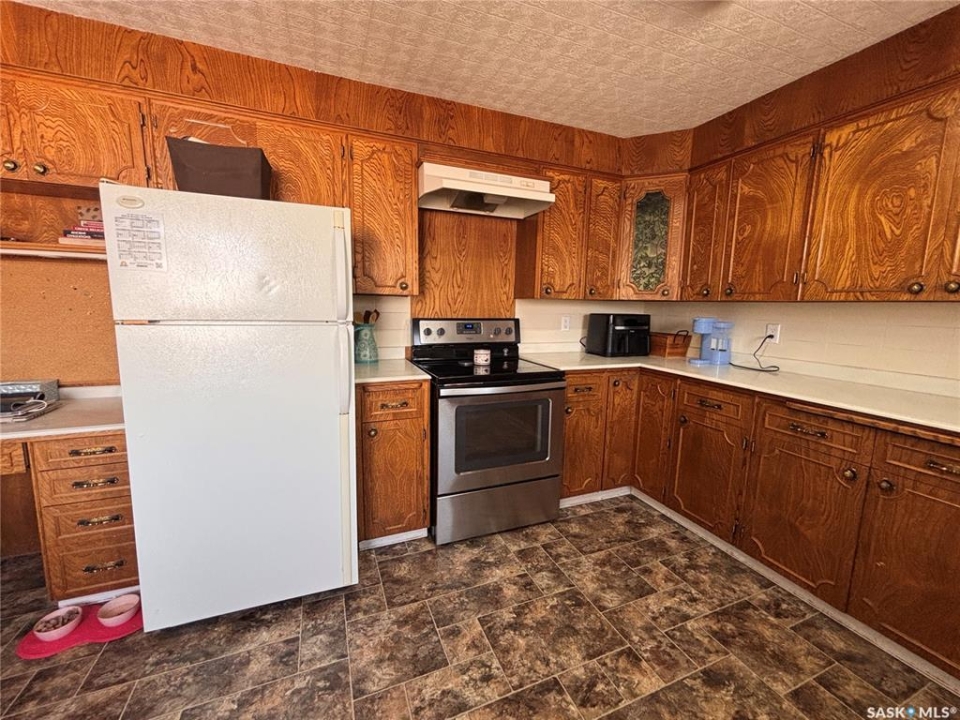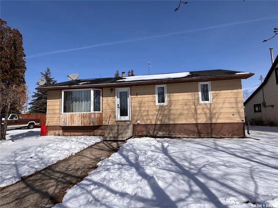 Welcome to this spacious and well-maintained home located on a double lot in the quiet community of Alsask! Offering over 1,100 sq ft of living space, this property provides plenty of room for families both inside and out. The main floor features a bright and expansive living room alongside a large, functional kitchen with fridge and hood fan included —perfect for everyday living and entertaining. You'll find two bedrooms on the main level, including an oversized primary bedroom, as well as a beautifully appointed bathroom complete with heated tile floors, a large tub with shower, and double sinks. At the back of the home, a convenient porch area offers ample storage and garden doors that lead directly to a spacious deck—ideal for enjoying the fully fenced yard. The property also includes access to a double detached garage, providing plenty of room for parking and storage. The updated basement adds even more living space, featuring new drywall, trim, doors, and carpet. A generous family room creates the perfect gathering area, with access to the utility room just off this space. Down the hall, you'll find a full 4-piece bathroom and two additional well-sized bedrooms. Situated on a large double lot, this property offers excellent outdoor space and privacy. Don't miss your chance to own this versatile and move-in ready home—call today to book your private viewing!