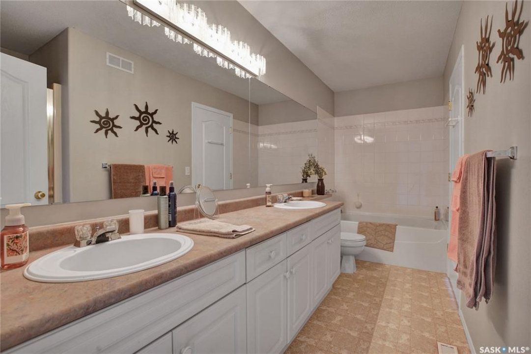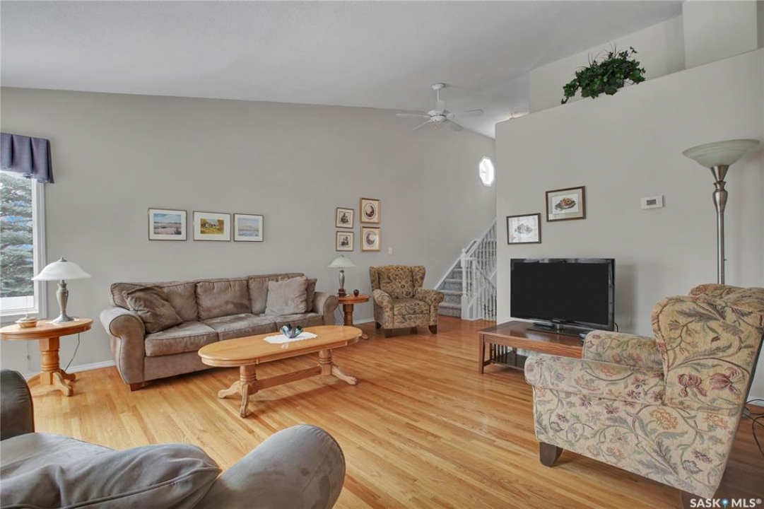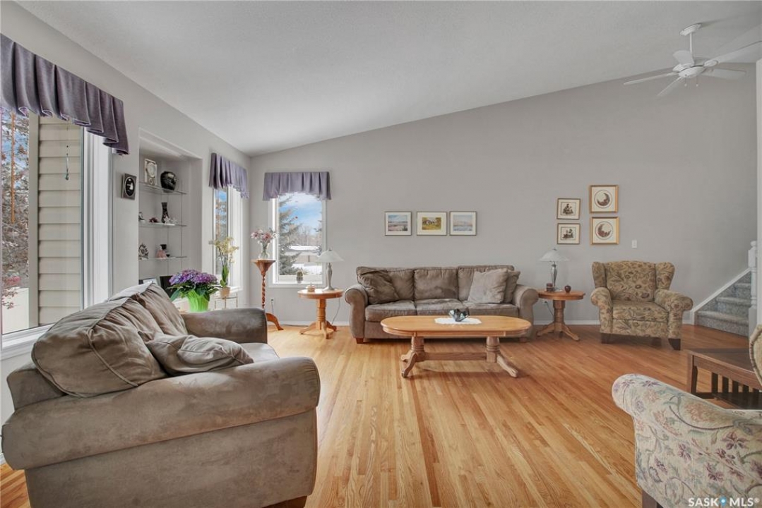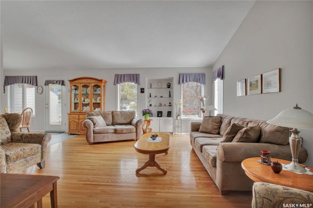 Thinking of Condo life ? The location is fabulous and has a great 55 + atmosphere, handy to the Willows for golfing, Stonebridge shopping and dining, easy access to 8th street and the downtown business district! Features of this tastefully appointed townhome: large size foyer, vaulted ceilings, spacious living room, well planned kitchen walk in pantry, extended eating bar, dinning nook, doors to deck, and a 2 piece bathroom complete this level. The upper level boasts 2 bedrooms (large primary with a 5 piece Jack n' Jill bath). The lower level is fully developed with a spacious family room, den, 3 pc bathroom and a laundry room. Direct access to the double attached garage. Other key highlights: updated furnace & water heater, hardwood flooring, ceramic tile flooring, linoleum, carpet in bedrooms, fridge, stove, dishwasher, range hood fan, central air, built in vac and garage door openers. The yard is well treed end unit, no neighbours behind. Don't miss this chance for easy living!